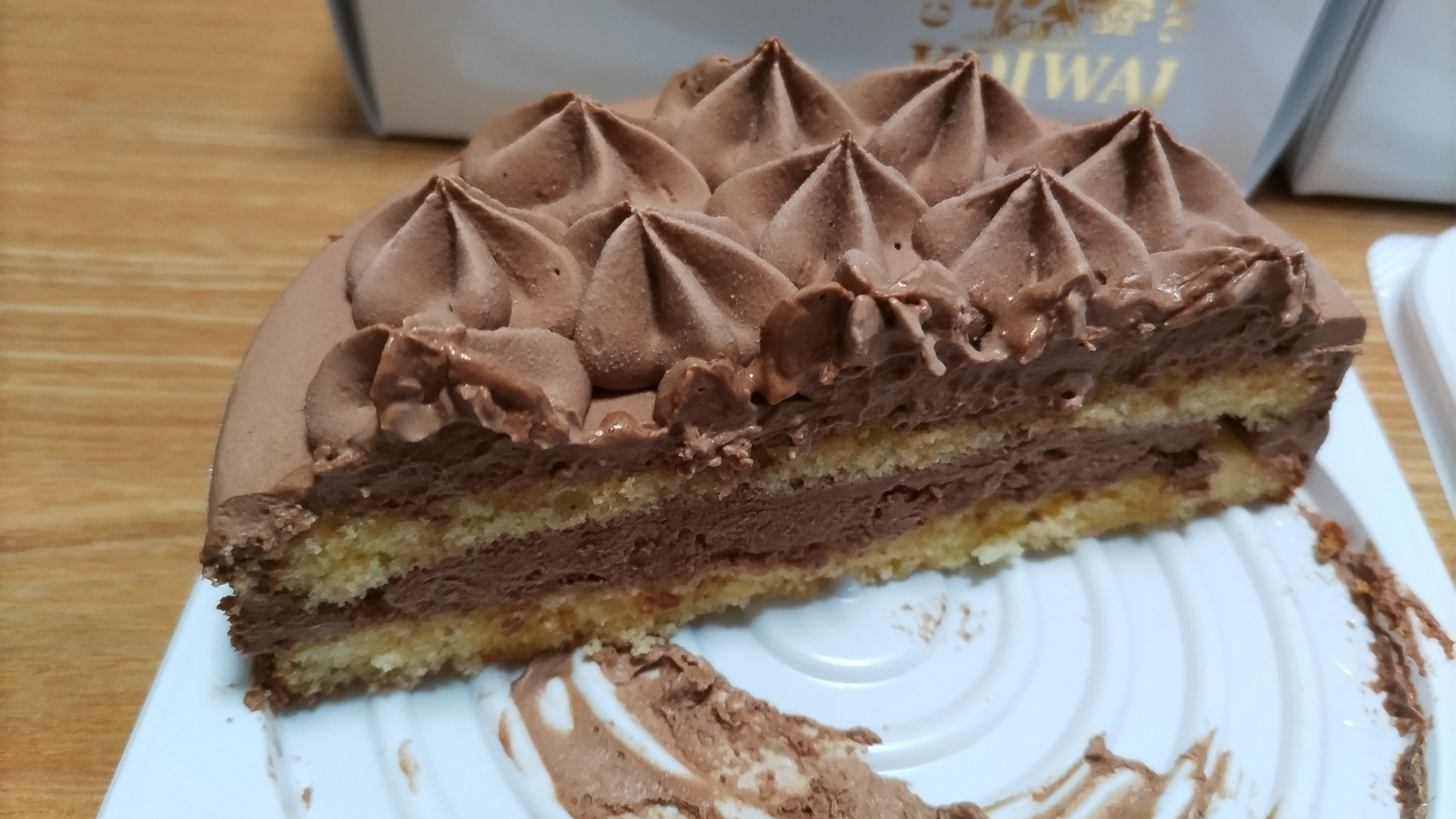 クリームショコラケーキ、こちらもまろやかな、優しい口当たりとお味のチョコのクリームです。クリーム感を感じるチョコ。チョコ好き、生クリームやミルク好きの方、お子様には特に喜ばれそう、お勧めしたいです。スポンジとの間にもショコラクリームが挟んであり、こちらも丁度良い絶妙な量で、ふわっと口の中でスポンジと一緒にとろけます。