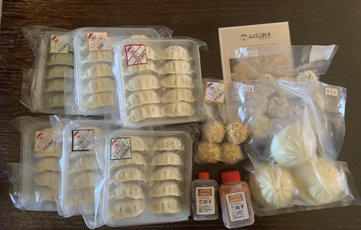 ・餃子は冷凍のまま焼いて、香ばしい味噌だれと定番でいてさっぱりめな醤油ベースの2種のたれがついているので、好きなタレを付けて食べられます!