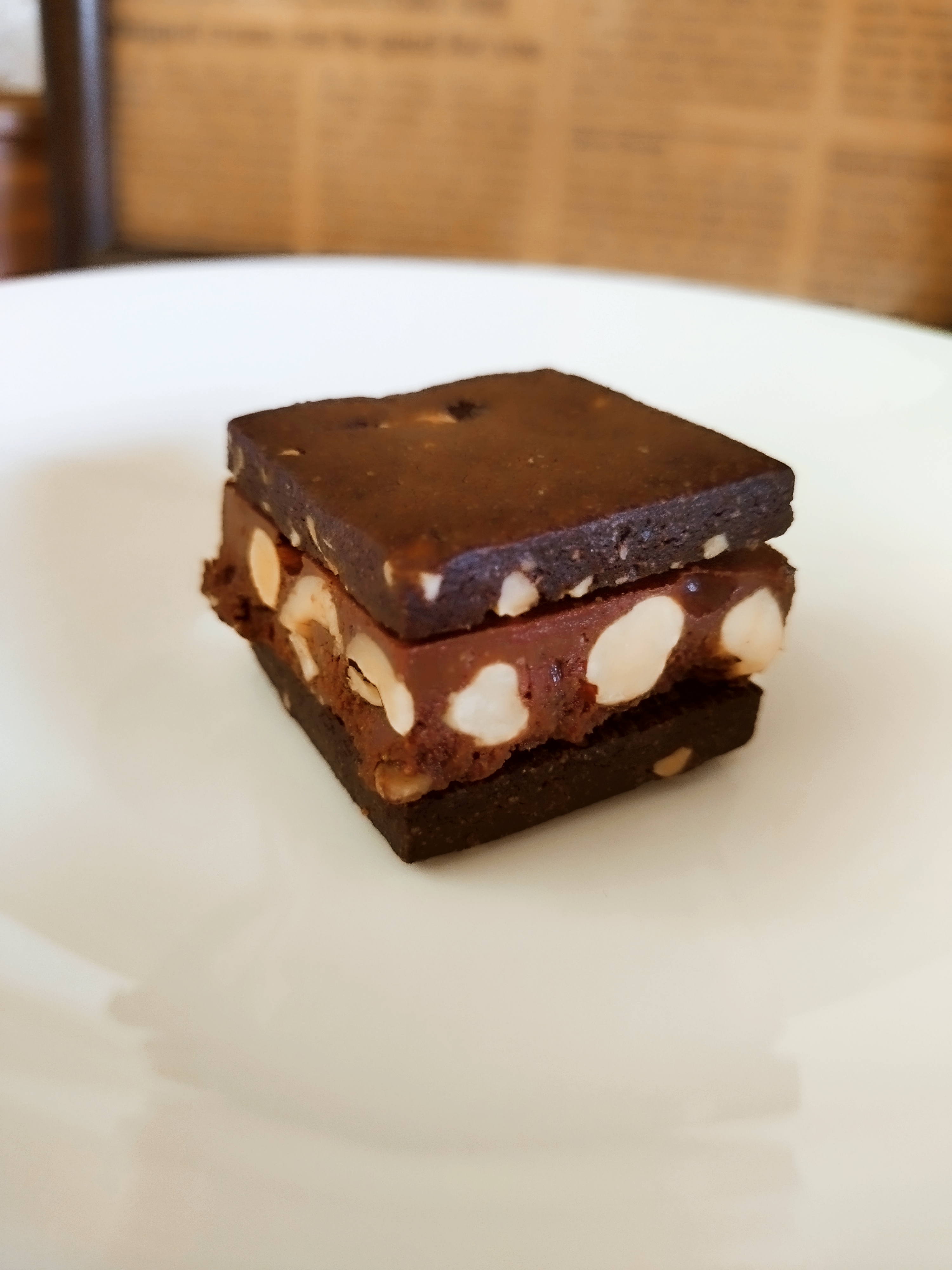 カカオの香り豊か、上質さが垣間見えるそのカカオの華やかな香りとほのかな苦みにクッキー生地と香ばしいヘーゼルナッツの取り合わせ、もうしみじみとたまらない美味しさでした。