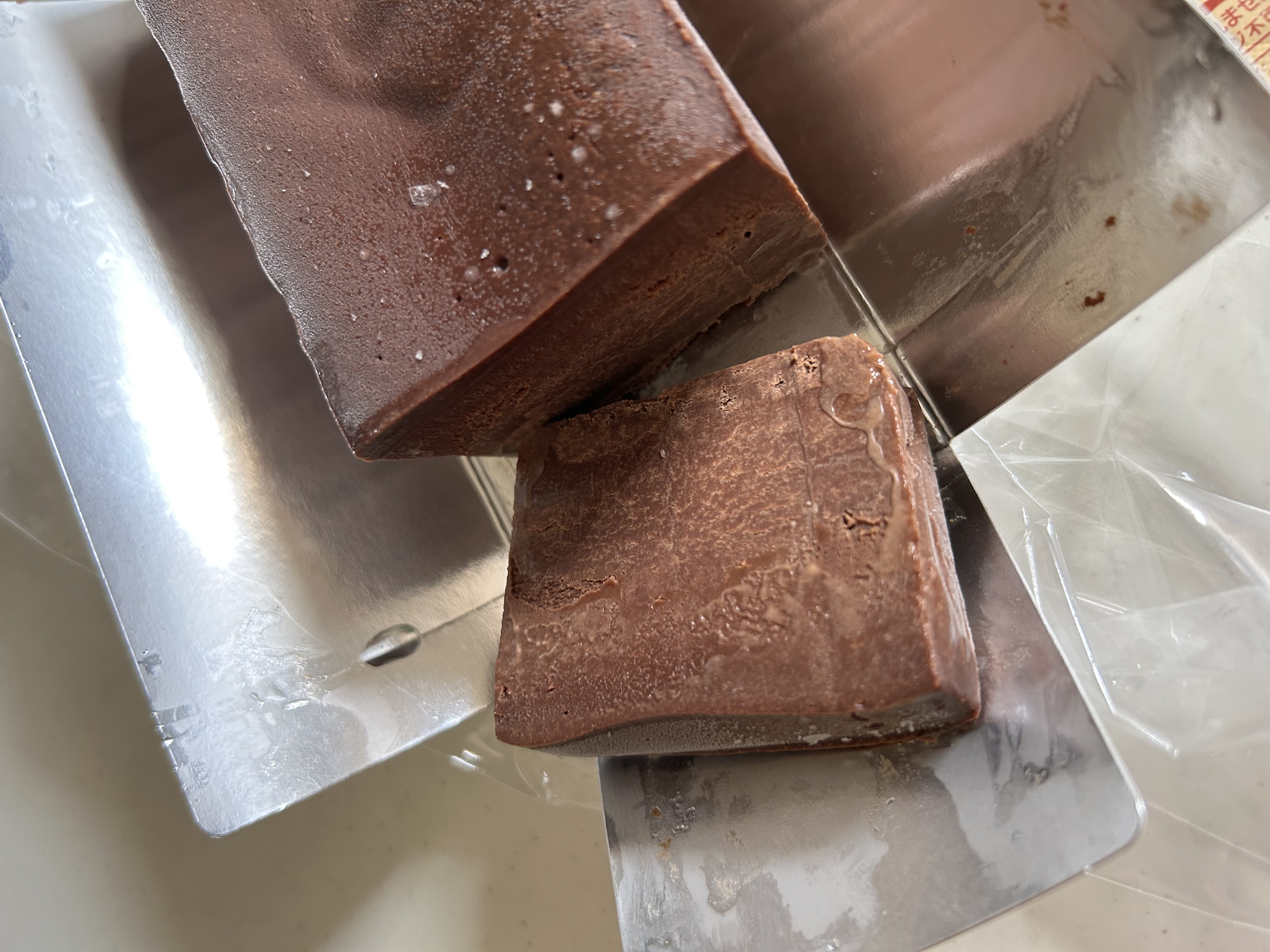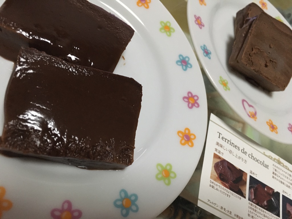 「テリーヌ」とはフランス語で「容器」を意味するとか。毎日少量のチョコを食べる家族は「テリーヌって何だっけ? あ!披露宴とかフレンチの最初に出てくる冷たい四角いゼリーと肉?みたいな柔らかいアレね。何これ、なめらか、おいしすぎじゃない?