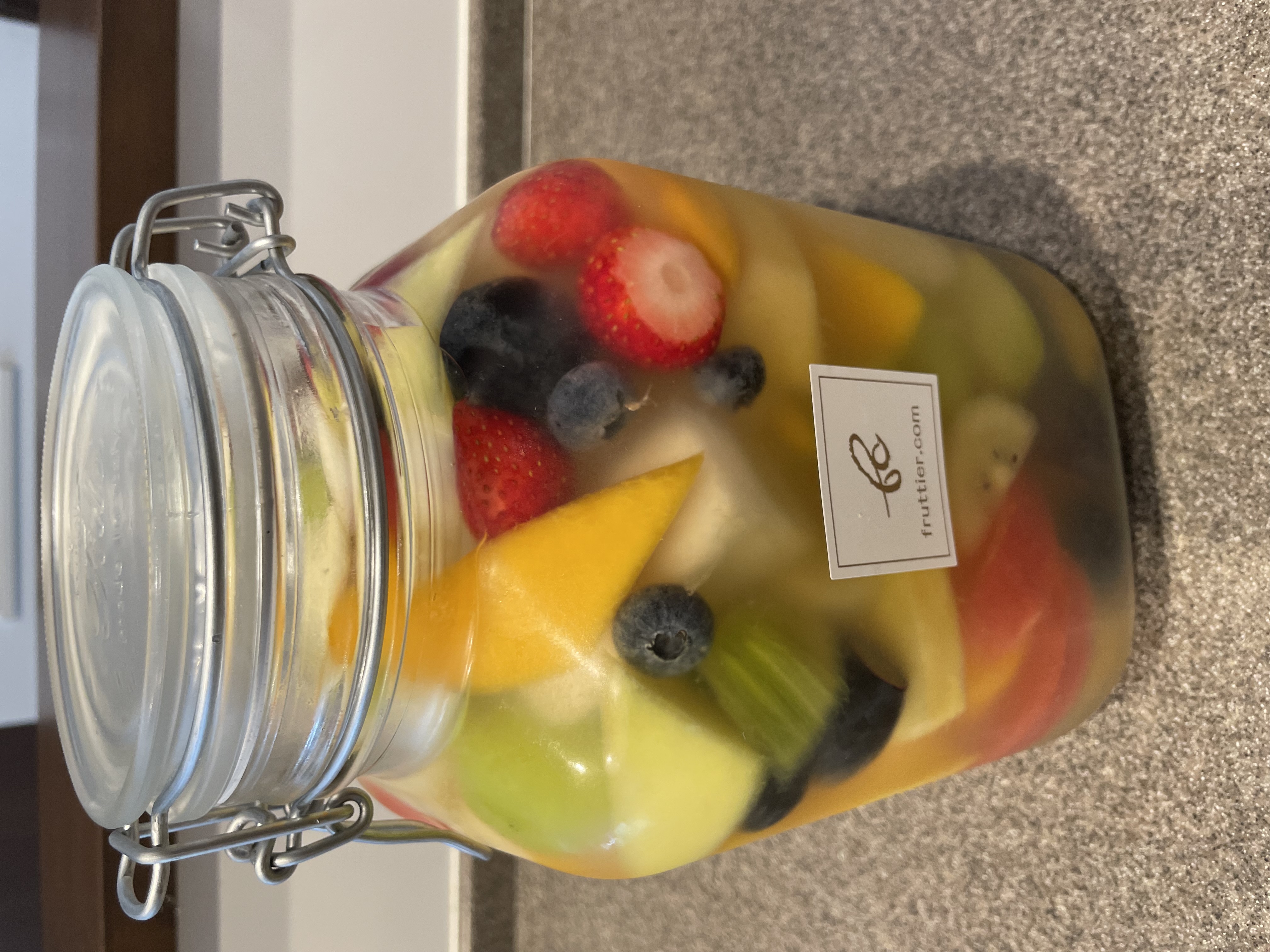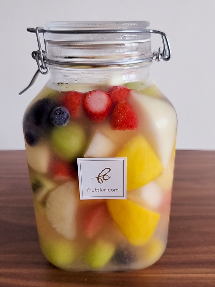 特製シロップに漬けた新鮮なフルーツ20種類が詰まった「フルーツポンチ」です。添加物を使用せず、新鮮果物、砂糖、レモン汁だけで作っています。その時の旬の果物が入っているので、季節によってラインアップが変わり、リピートしたくなる商品。ひとつひとつ丁寧に手作業でカットされた、季節の果物は瑞々しく、シロップも甘すぎないので、果物そのものの味わいを楽しめます。カラフルで華やか、香り豊かな商品なので、パーティーシーンを盛り上げますイタリア製のジャーに入って届くので、自宅用だけでなくギフトにもおすすめです。