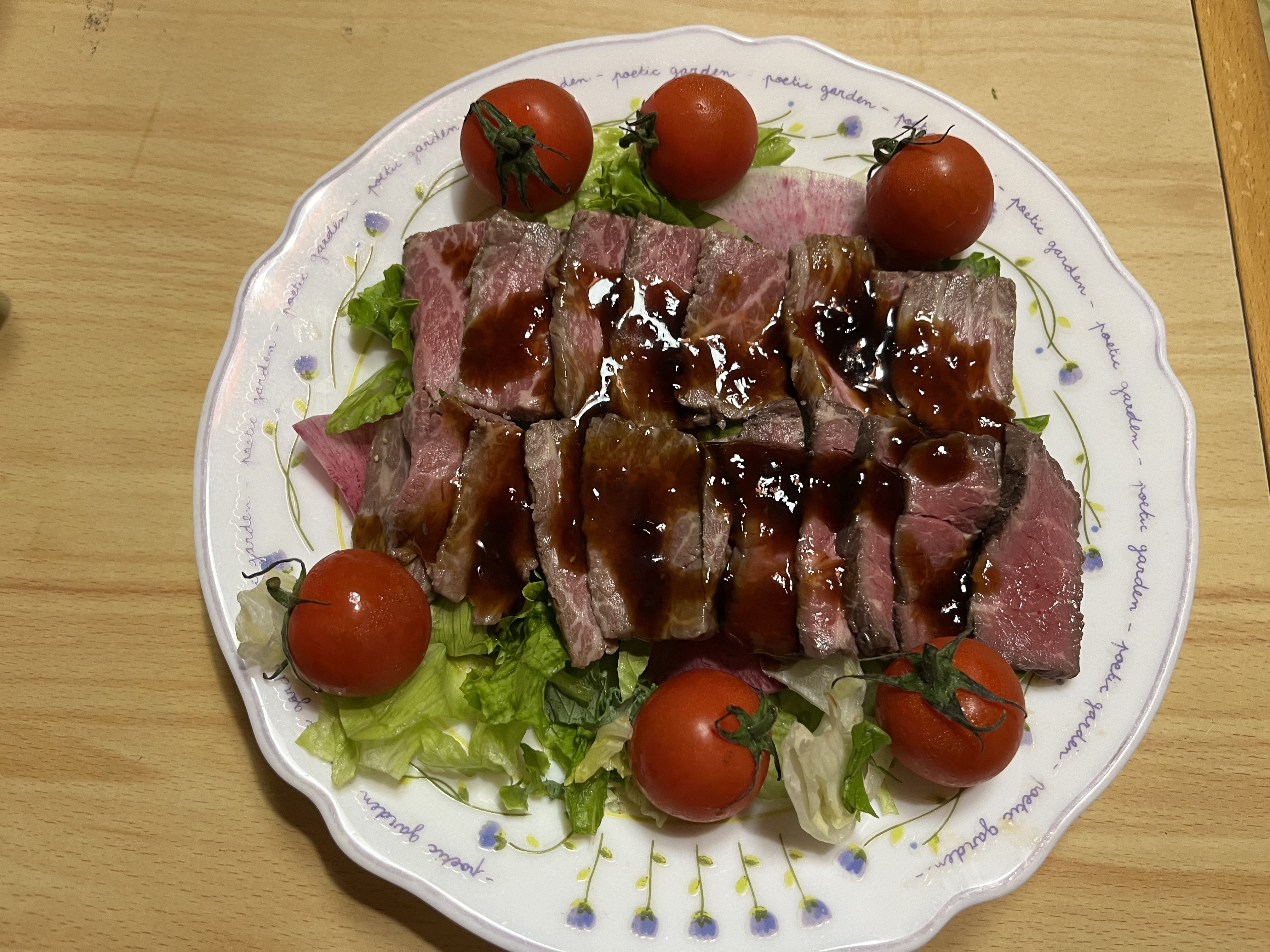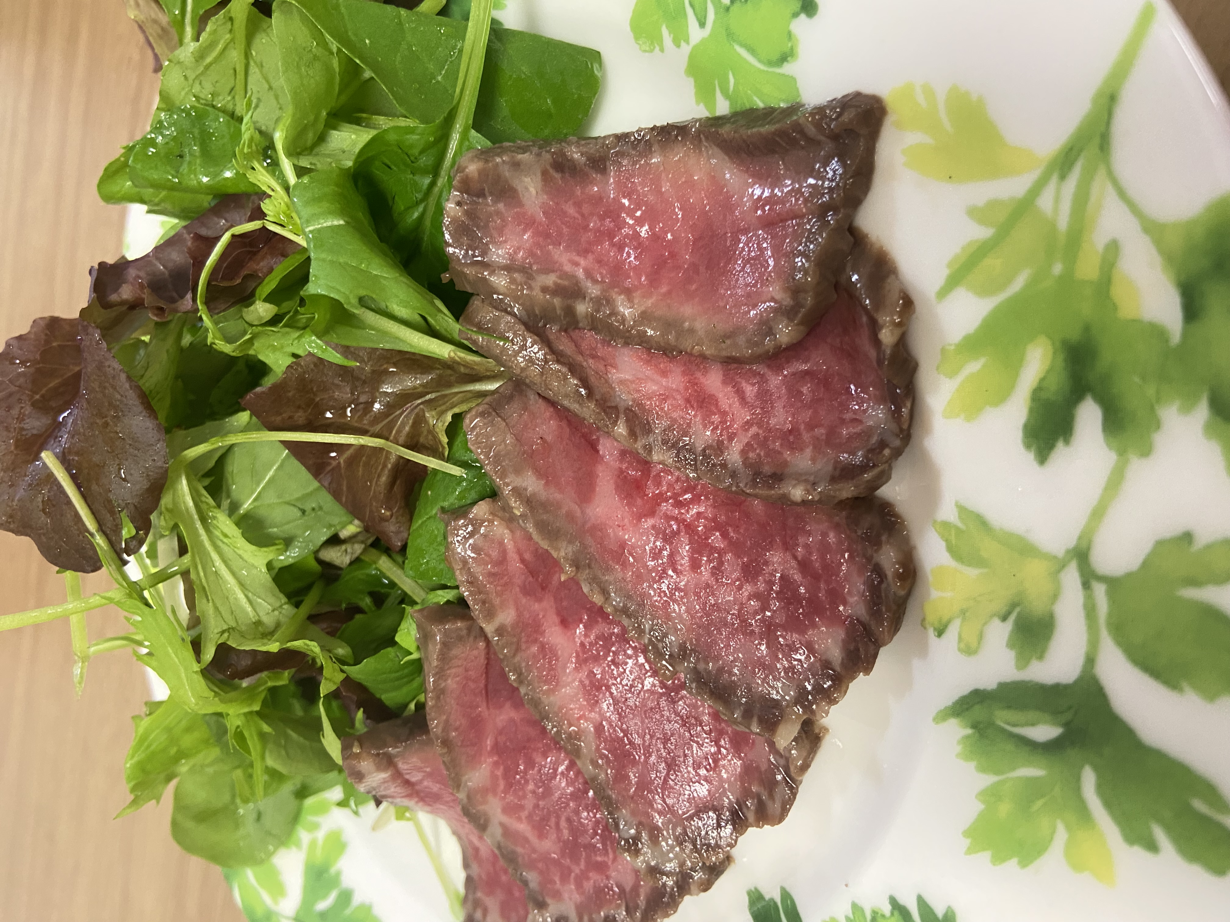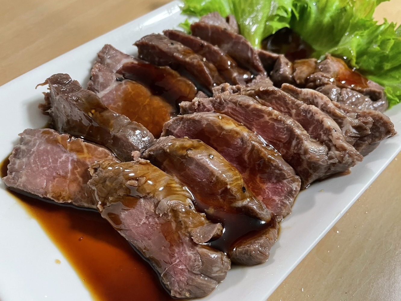 リーフレット通りに冷蔵庫で解凍し、繊維を断ち切るカットで切り、いざ実食!