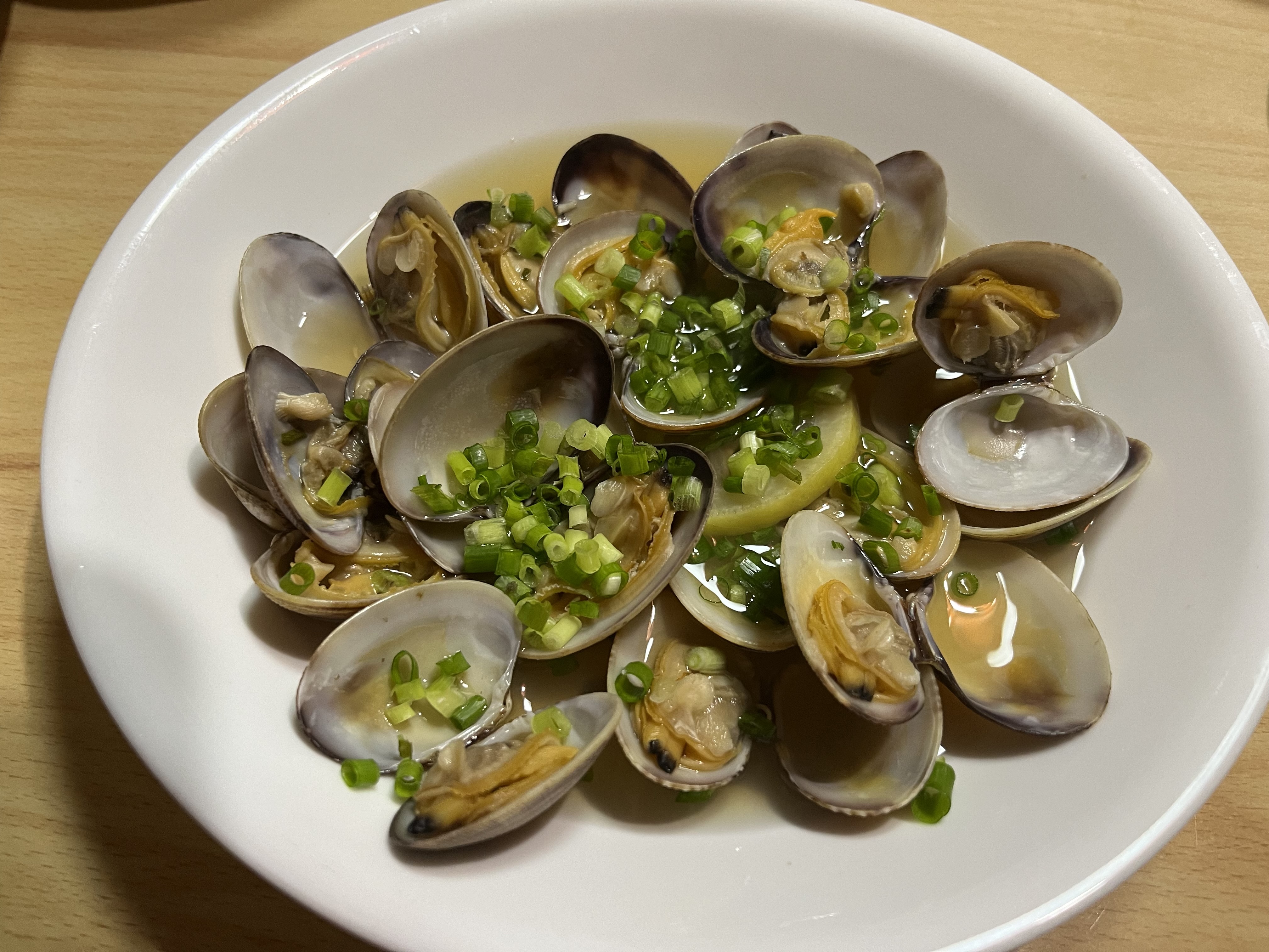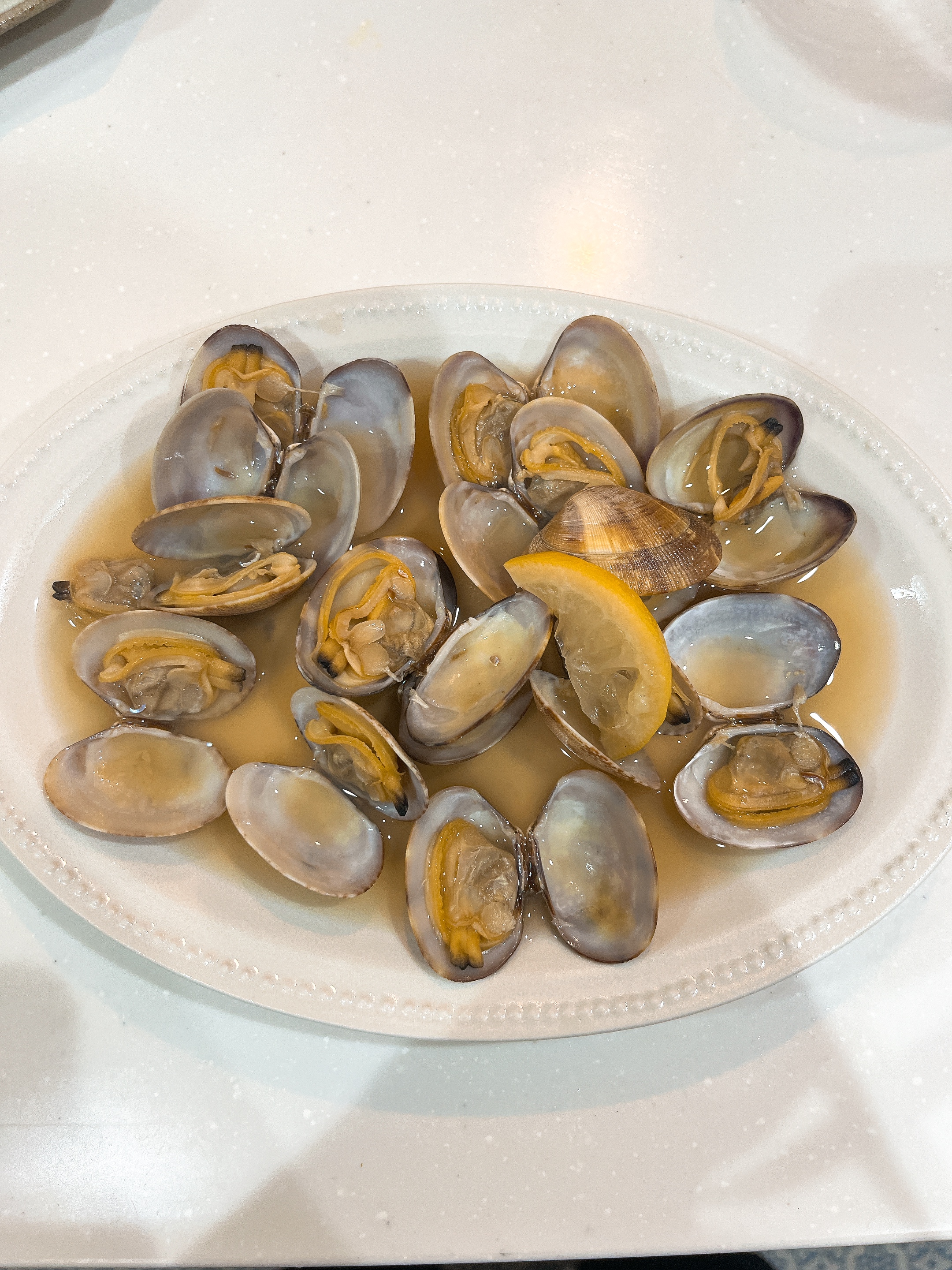 中にレモンが入っているためとてもサッパリしていて、アサリの旨みが溢れ出すお汁が美味しくてワインと共にいただきました。