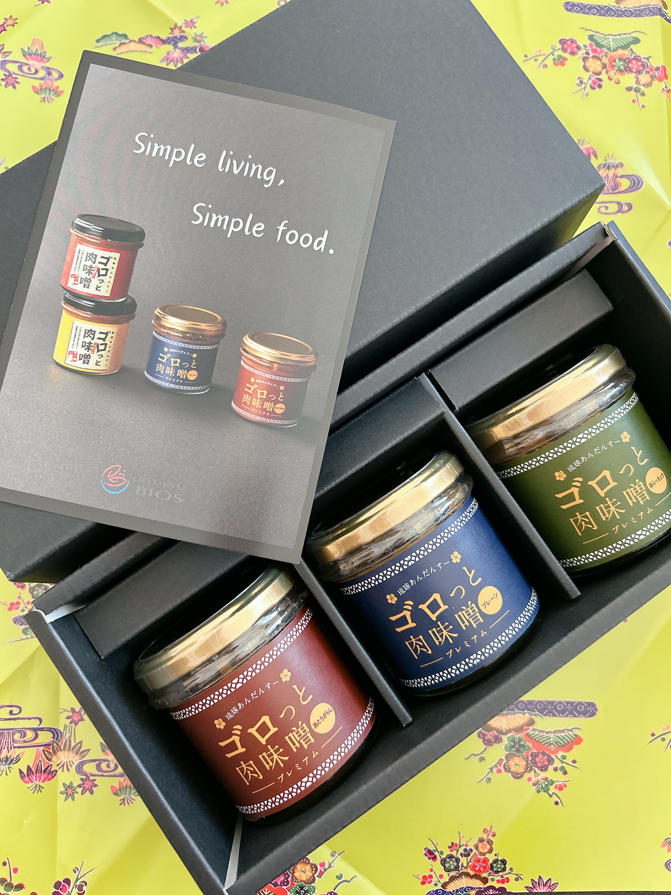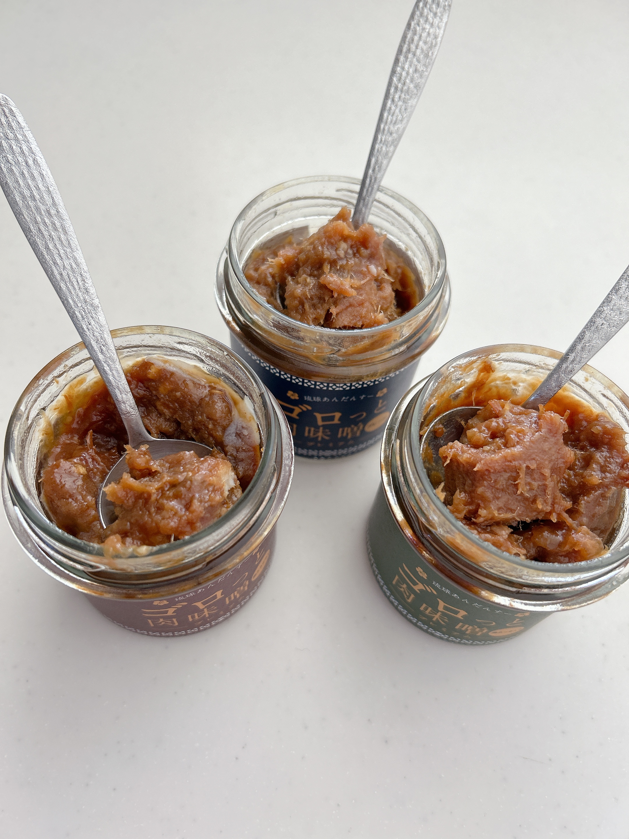 沖縄県産の豚肉、味噌、黒糖など沖縄素材にこだわった「肉味噌」です。ゴロっとした肉が入っているので食べ応え抜群です。沖縄県産豚肉、みそ、純黒糖をベースにしています。比較的甘口でベースの味をより感じられる「プレーン」、島唐辛子の種も含めて丸ごと使用しているので、後から来るピリッとした辛みと香りでごはんが進む「島とうがらし」、やんばる(国頭村)で栽培時農薬不使用の有機栽培された島らっきょうを使い、サッパリとした味わいに仕上げた「島らっきょう」の3種。異なる味わいのセットなので食べ比べが楽しめます。専用ボックスに入って届くので、贈り物におすすめです。