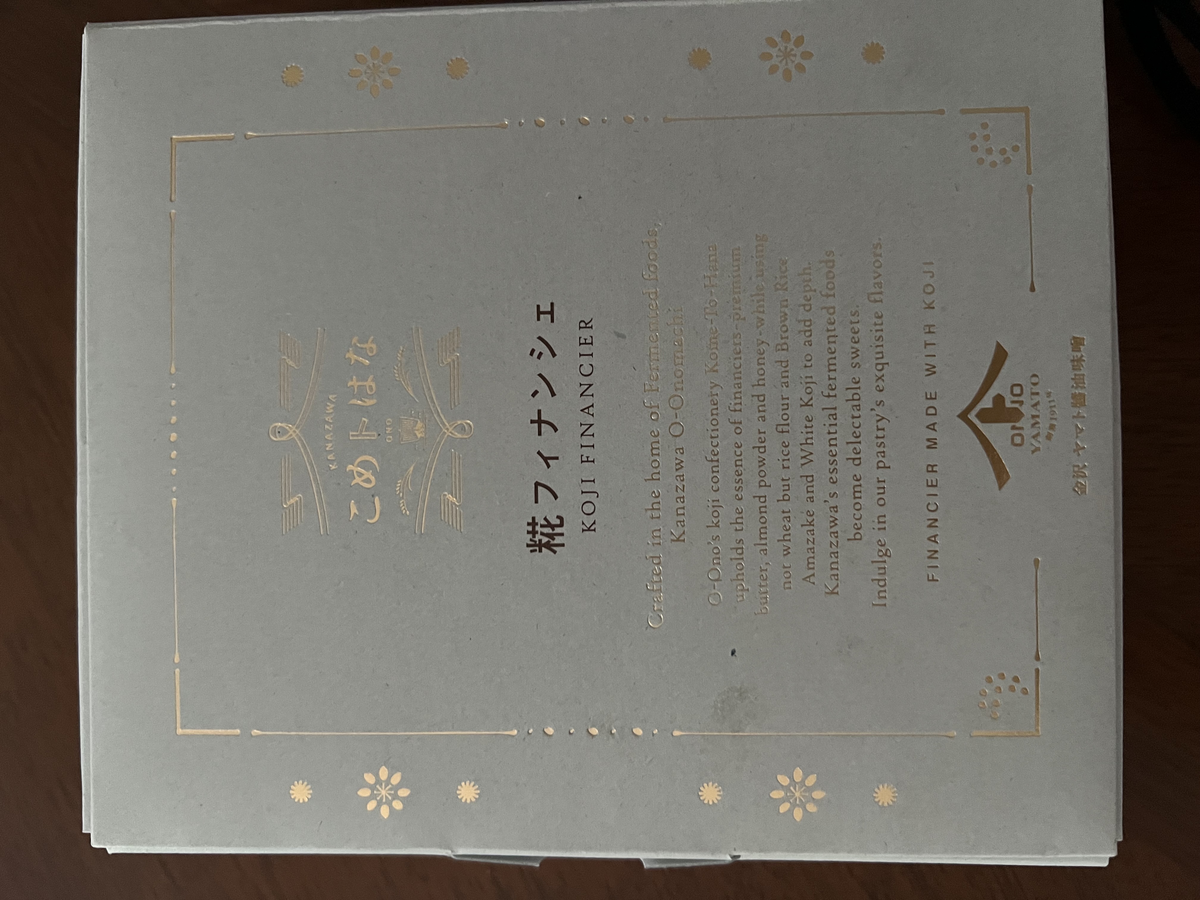 国産米粉を使い焼き上げたグルテンフリー(小麦不使用)の「糀フィナンシェ」です。バターの風味豊かで、しっかりとした食感が特長。隠し味に「玄米甘酒」と「金沢白糀」使用することで、深みを持たせています。すべて金沢大野の自社工房で丁寧に作っています。洋書風のパッケージに入って届くので、贈り物におすすめです。