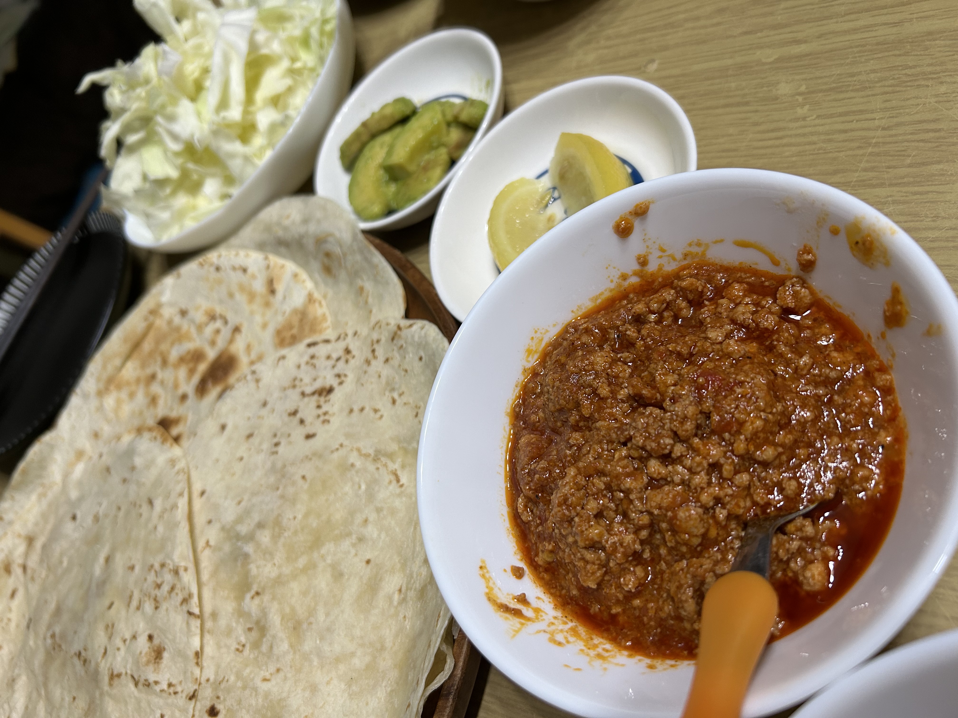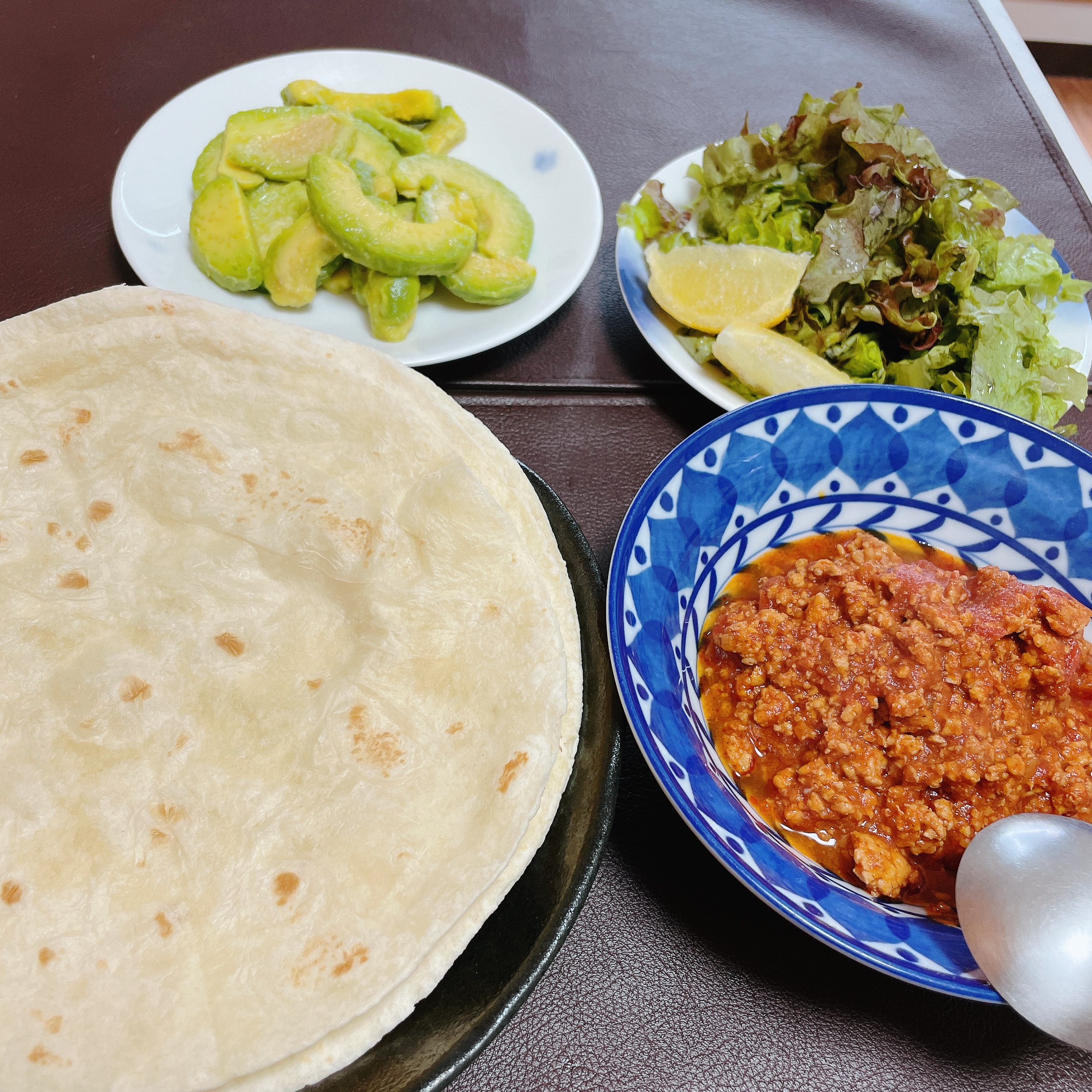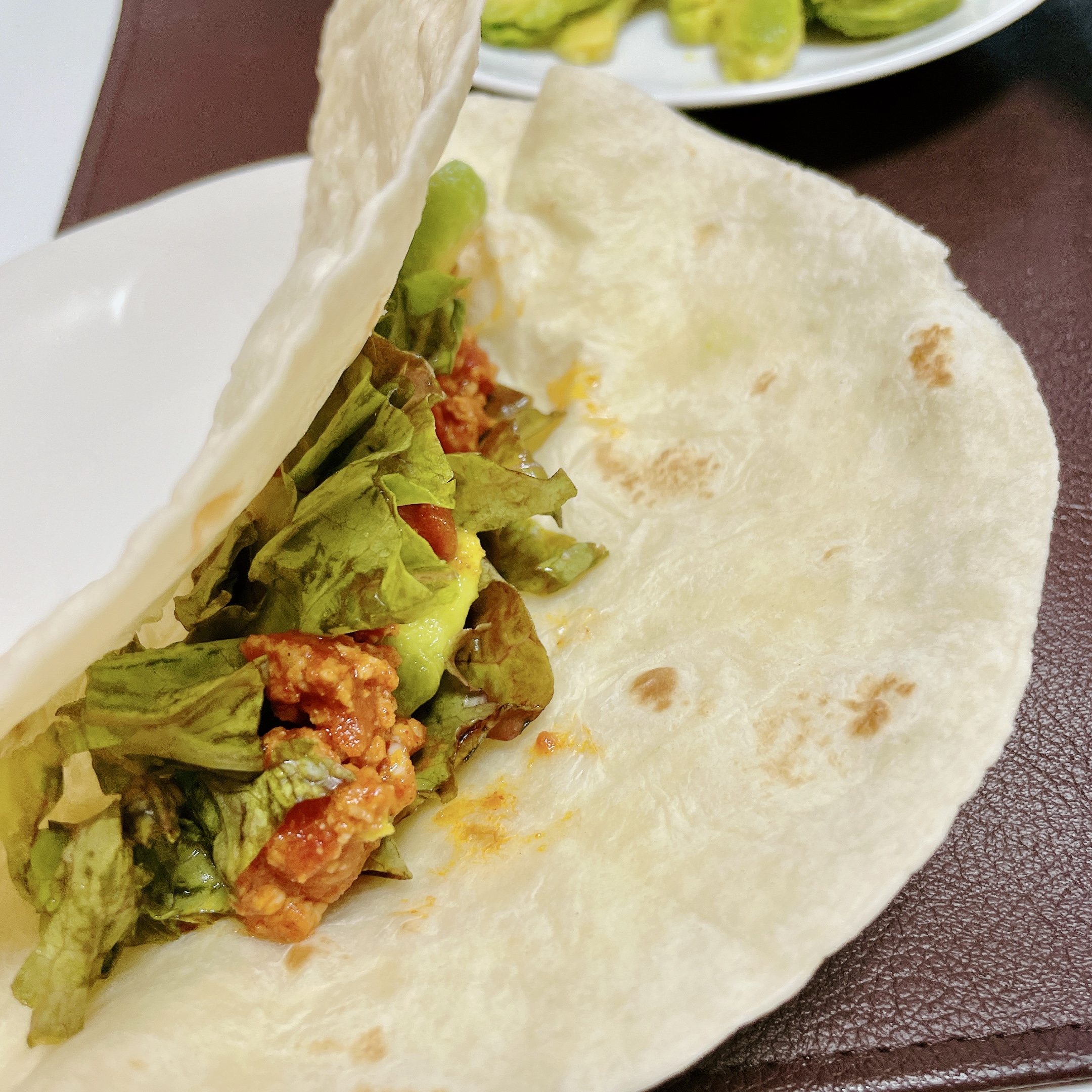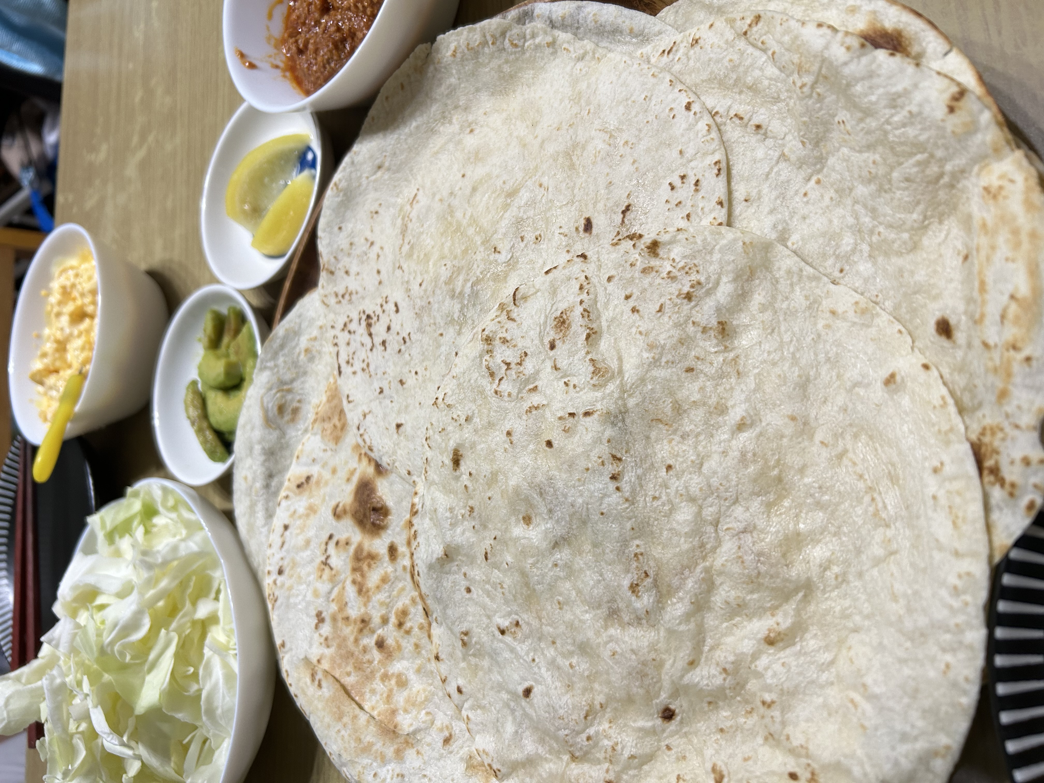 トルティーヤは、直径20センチとかなり大きめで具材が巻きやすかったです。
