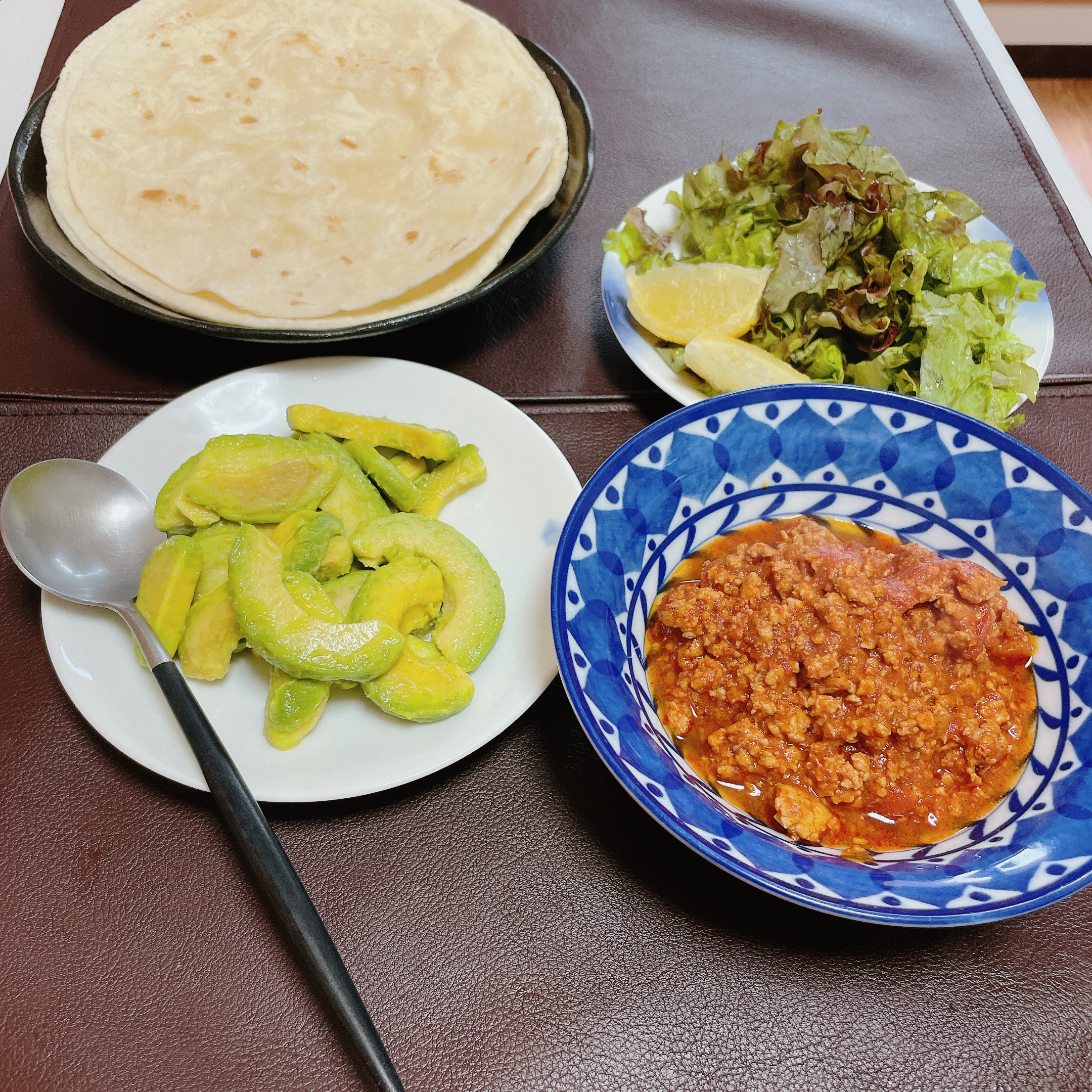 タコスには欠かせない、タコミートとトルティーヤにアボカド、レモンの4点セット。