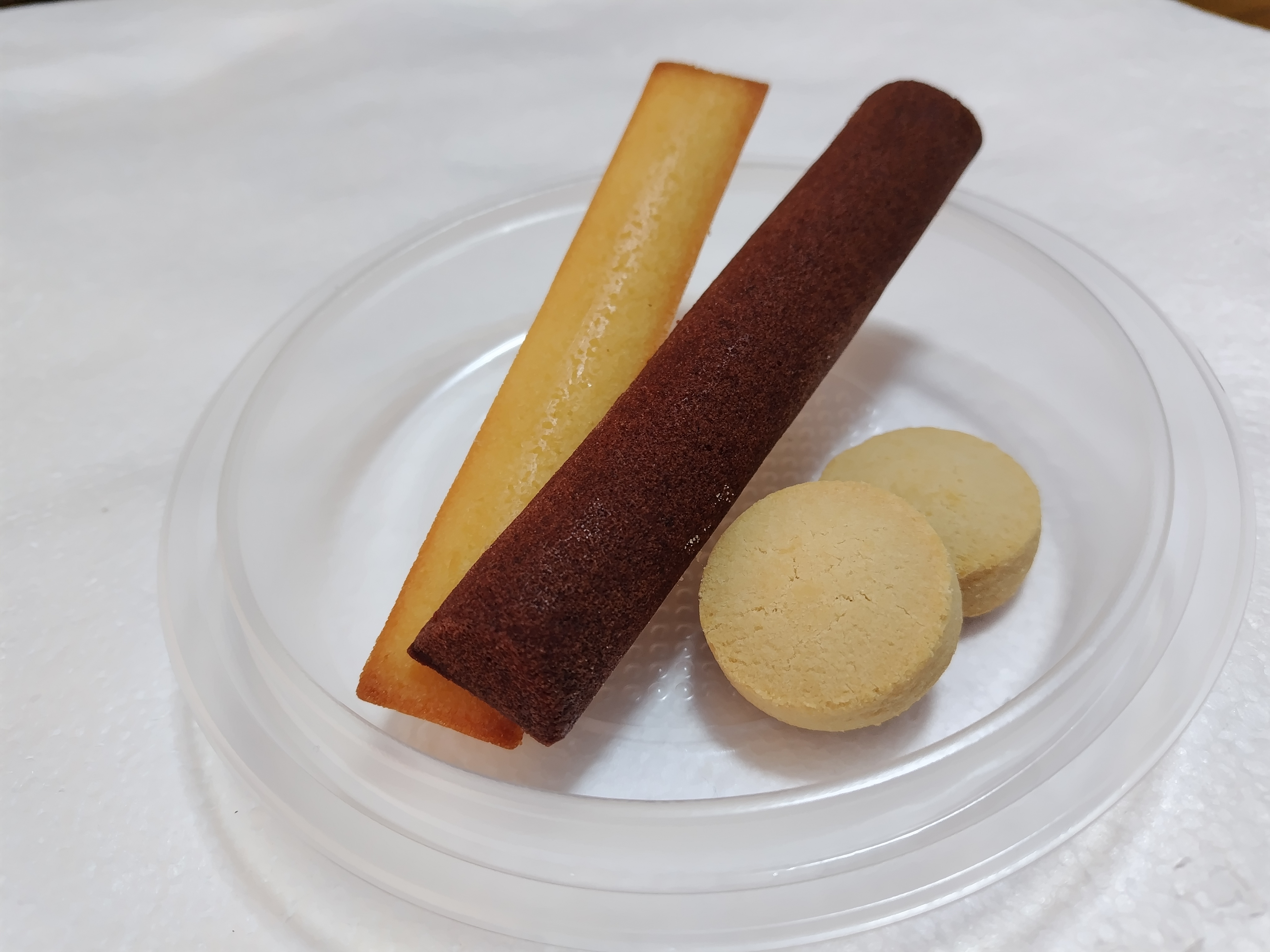 米粉フィナンシェ(しっとり):その名の通りまさにしっとりという食感で、比較的味も濃く感じました。アーモンドの風味も感じられてとても美味しかったです。スティックタイプで食べやすいのも魅力的です。