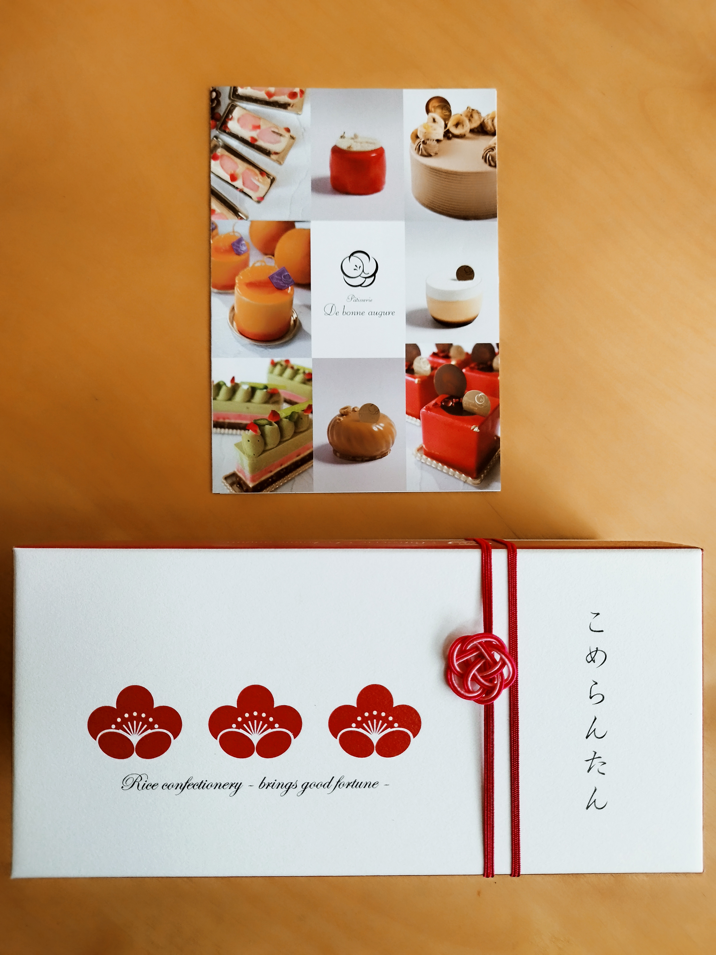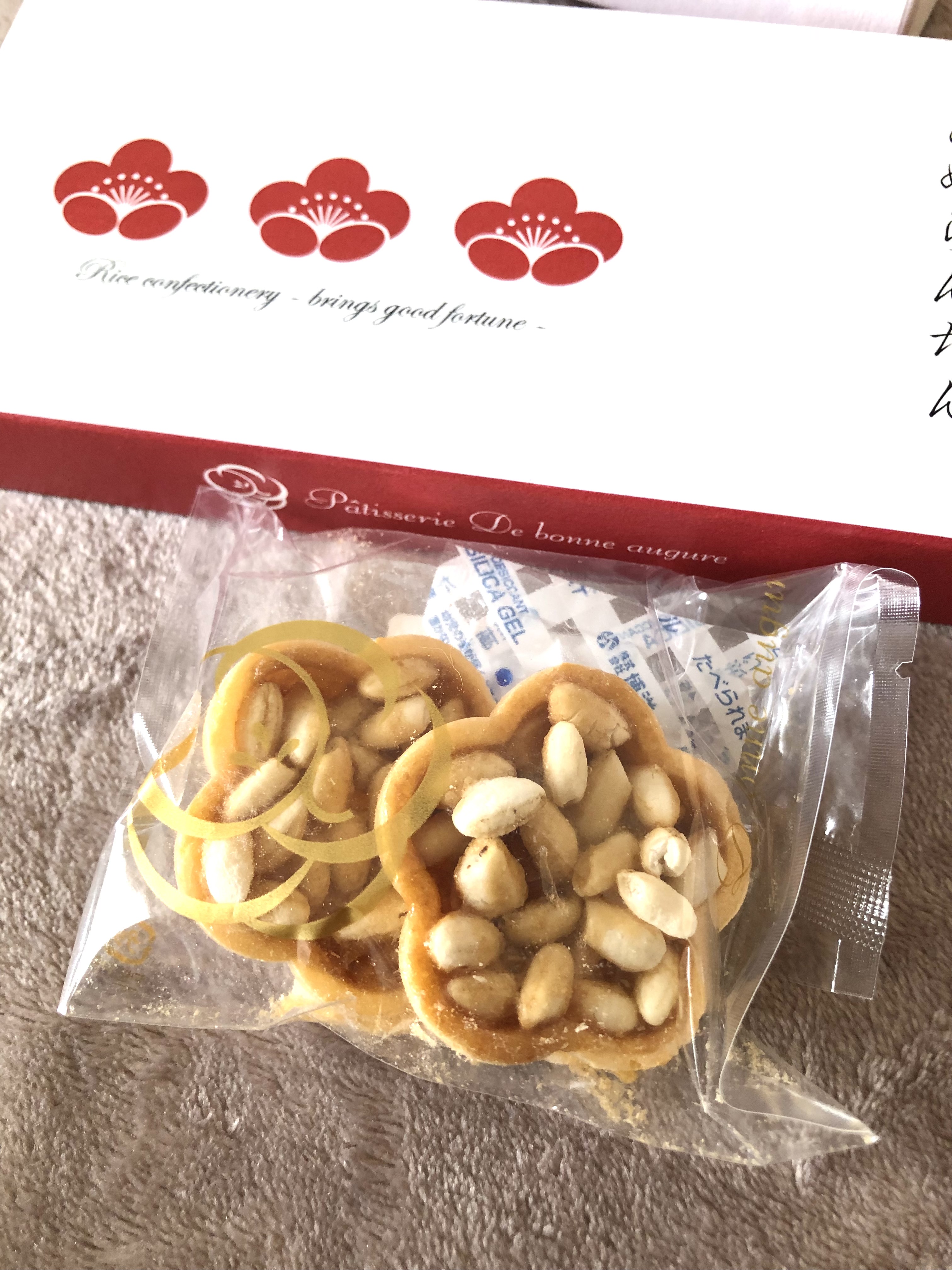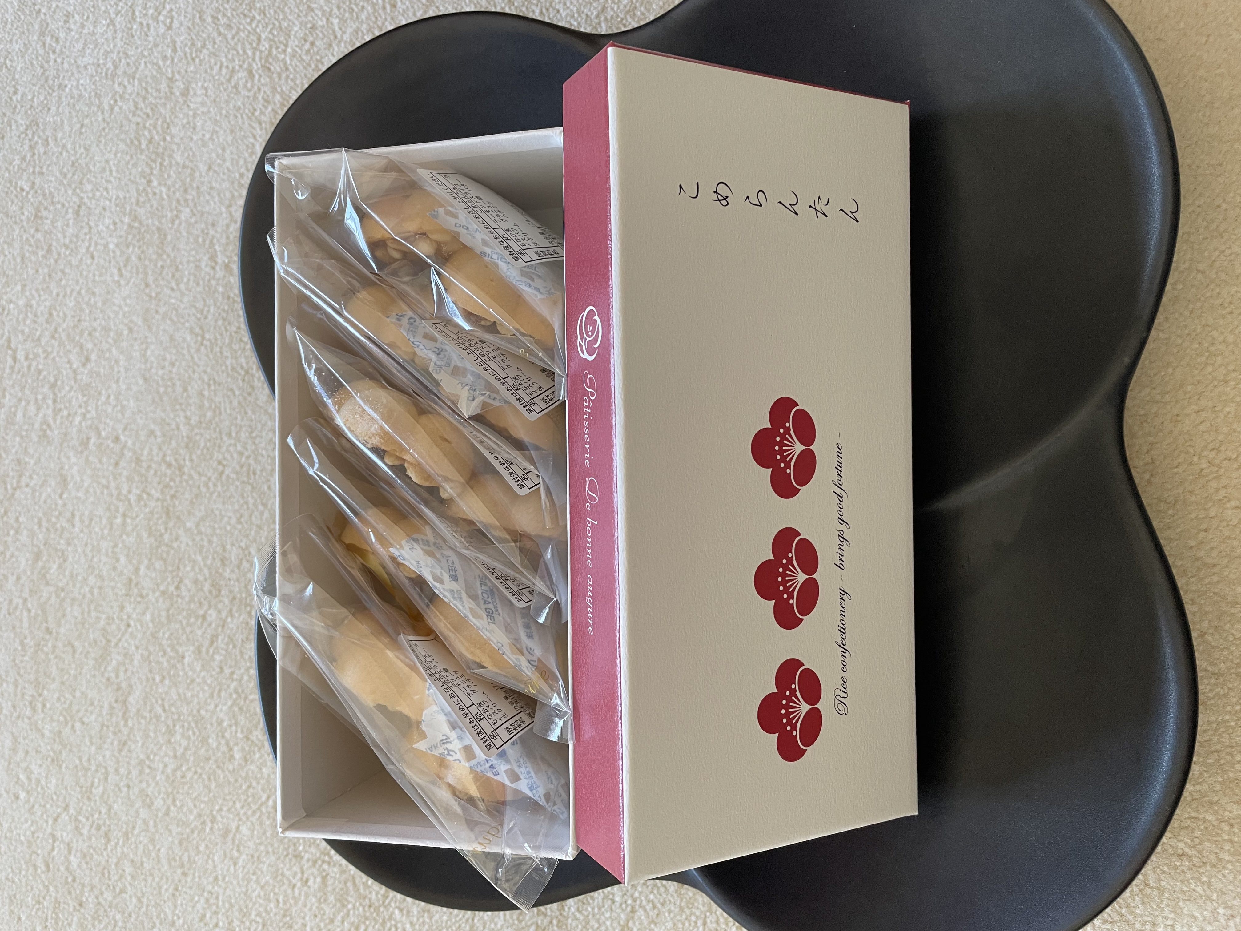 オリジナルのギフトボックスも可愛い梅のデザインで、お土産やギフトにもぴったりの菓子折りです。
