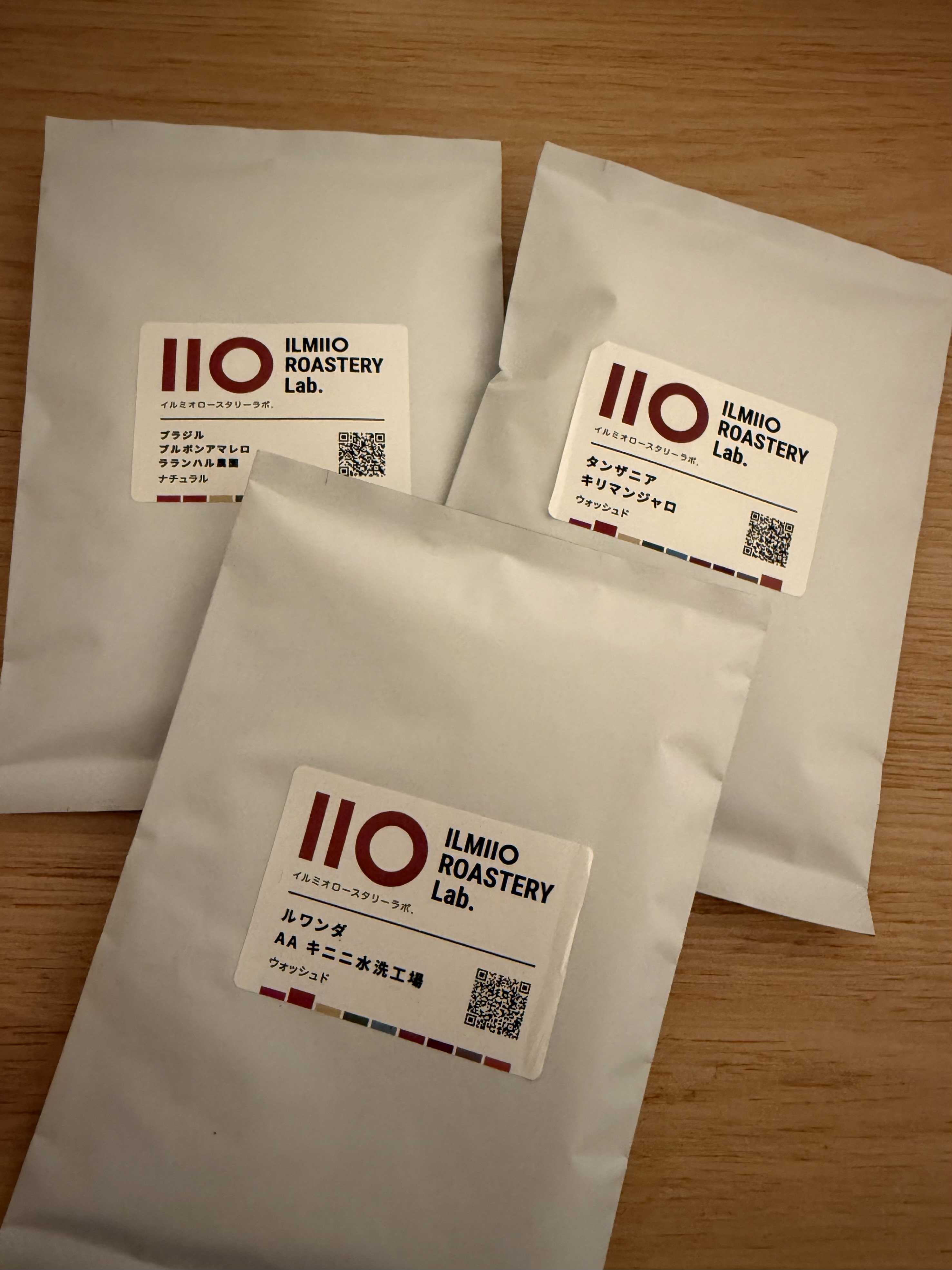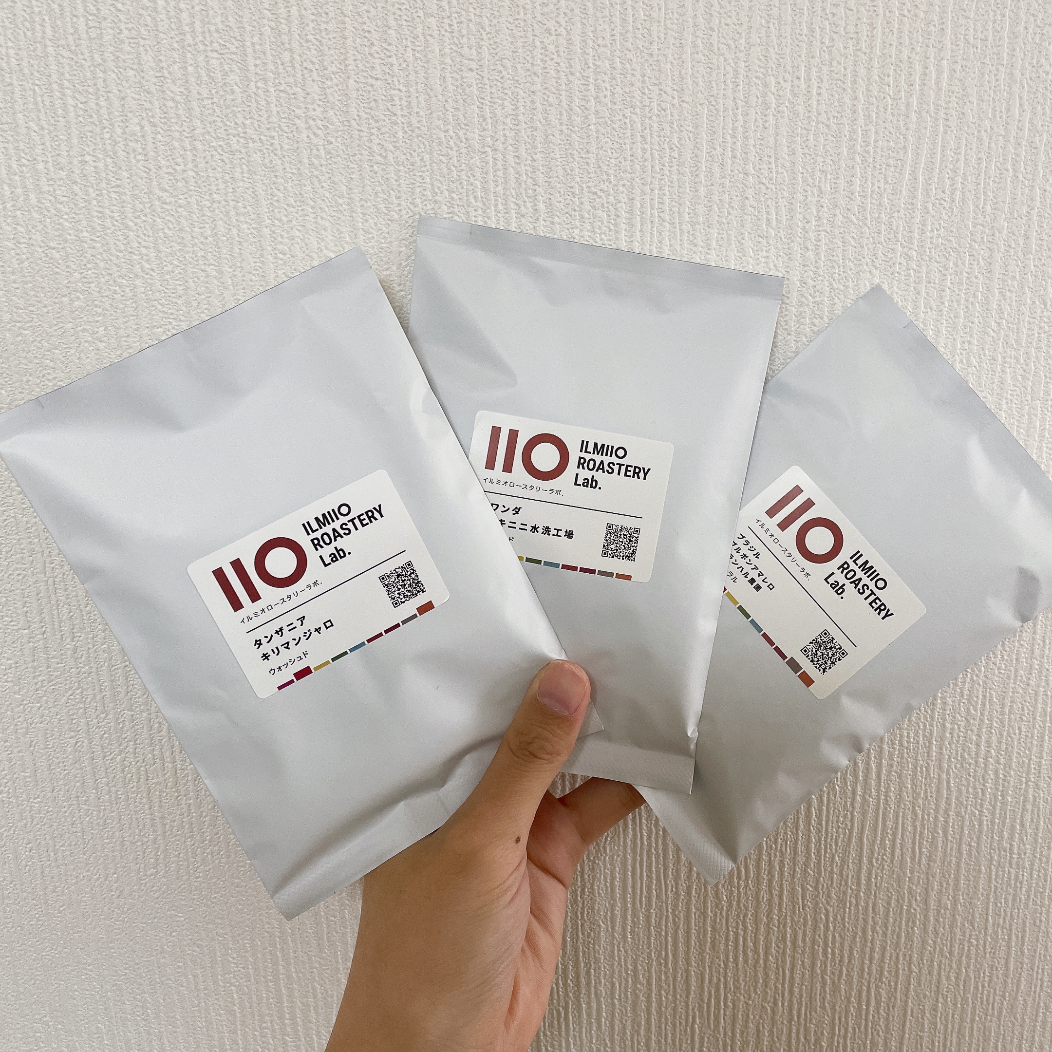 10月のおためしセットはタンザニア キリマンジャロ、ブラジル ブルボンアマレロ、ルワンダ AA 各50g(生豆時)のセット。