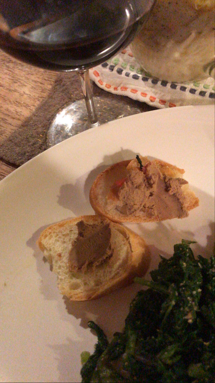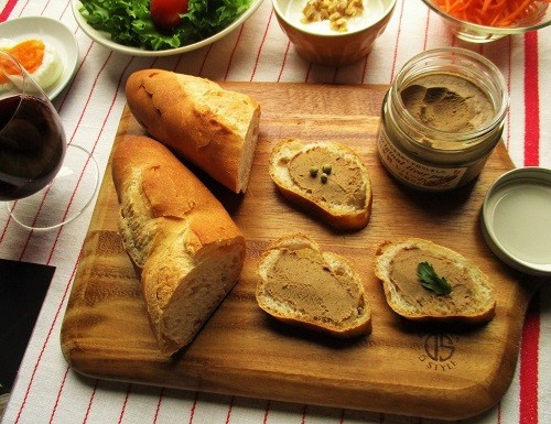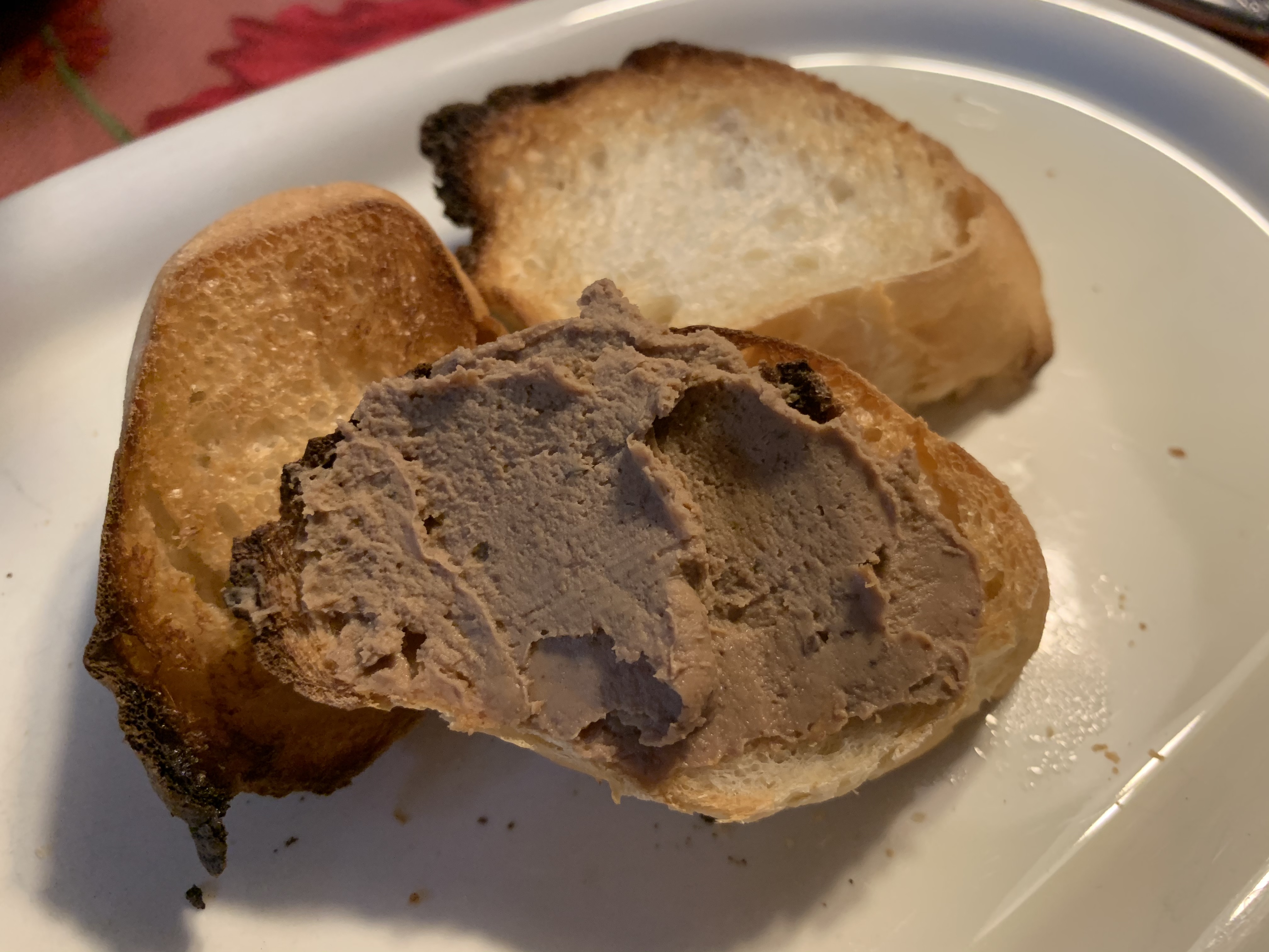 トースターでバゲットを焼き、パテをたっぷり塗っていただきます!