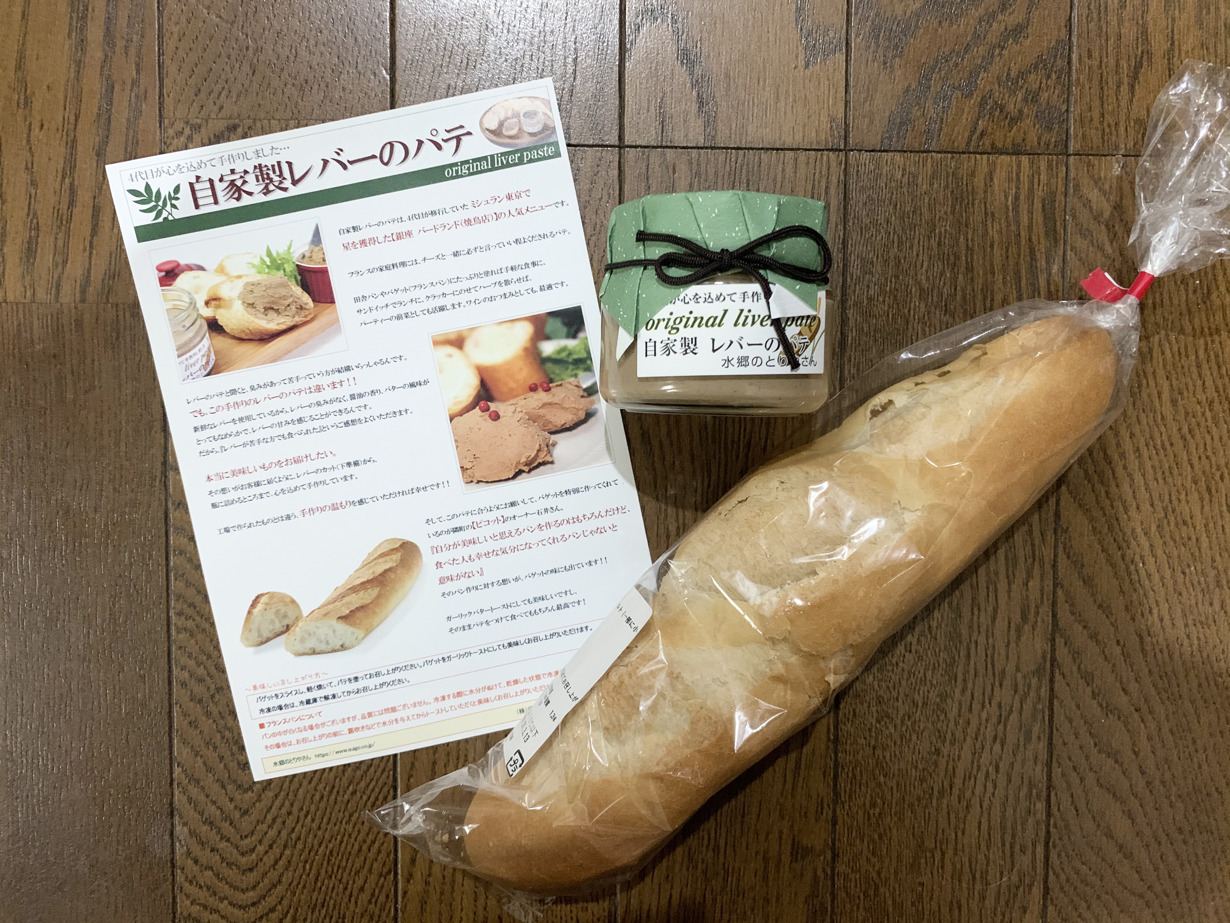 当店では届いてすぐに召し上がっていただけるように、パテ1瓶につき、バゲット(ハーフサイズ)を《1本サービス》として一緒にお届けいたしております。