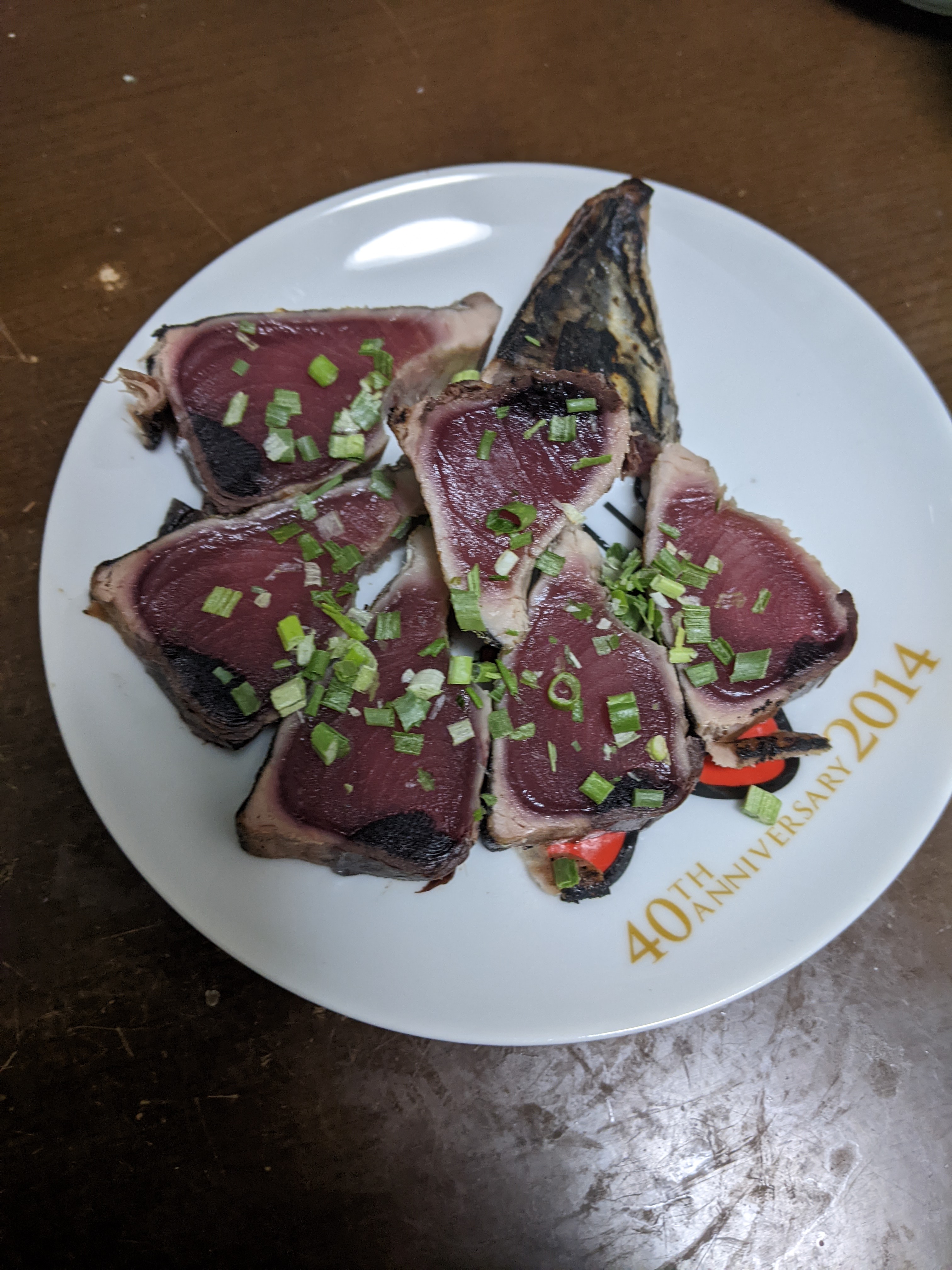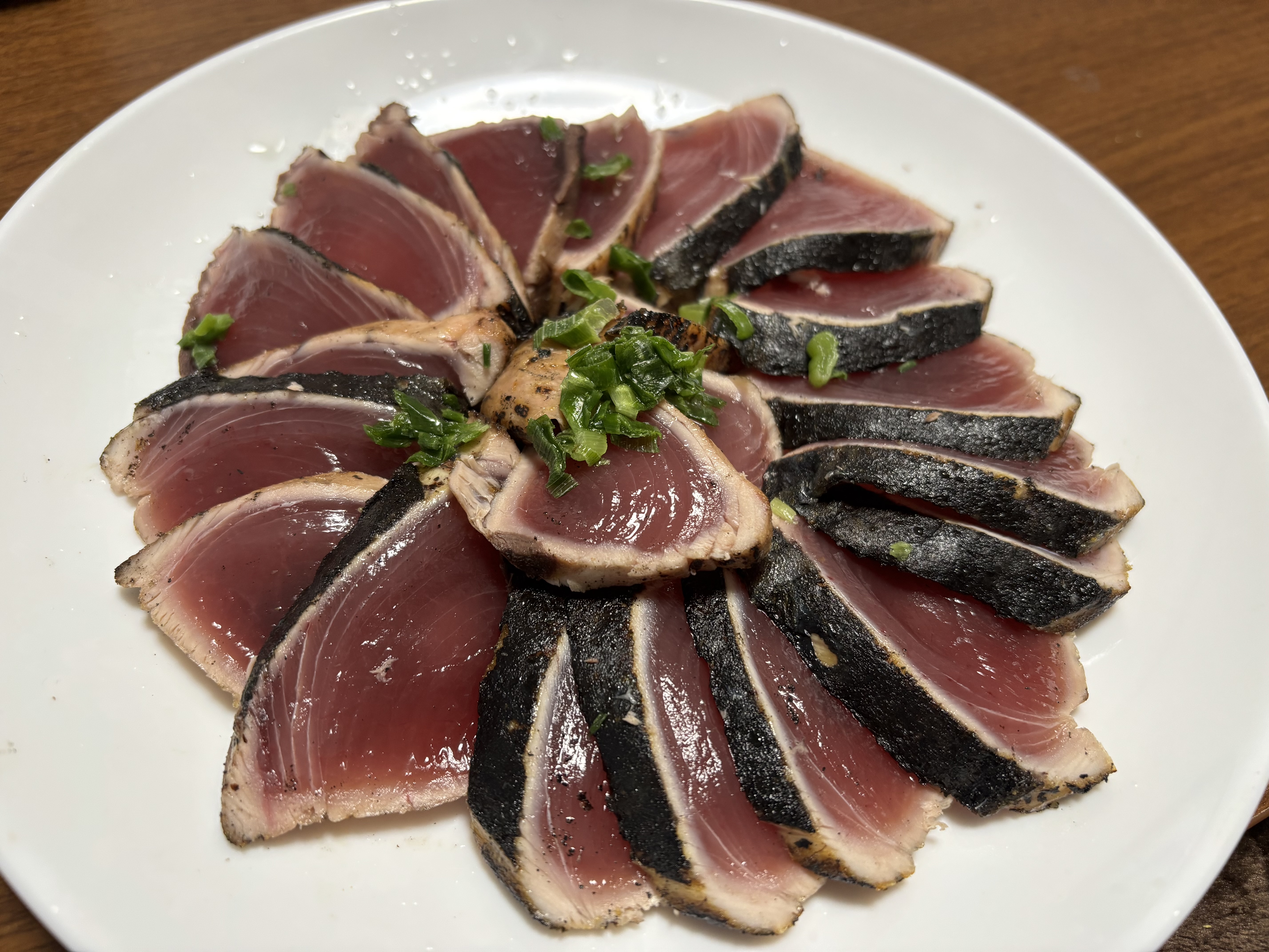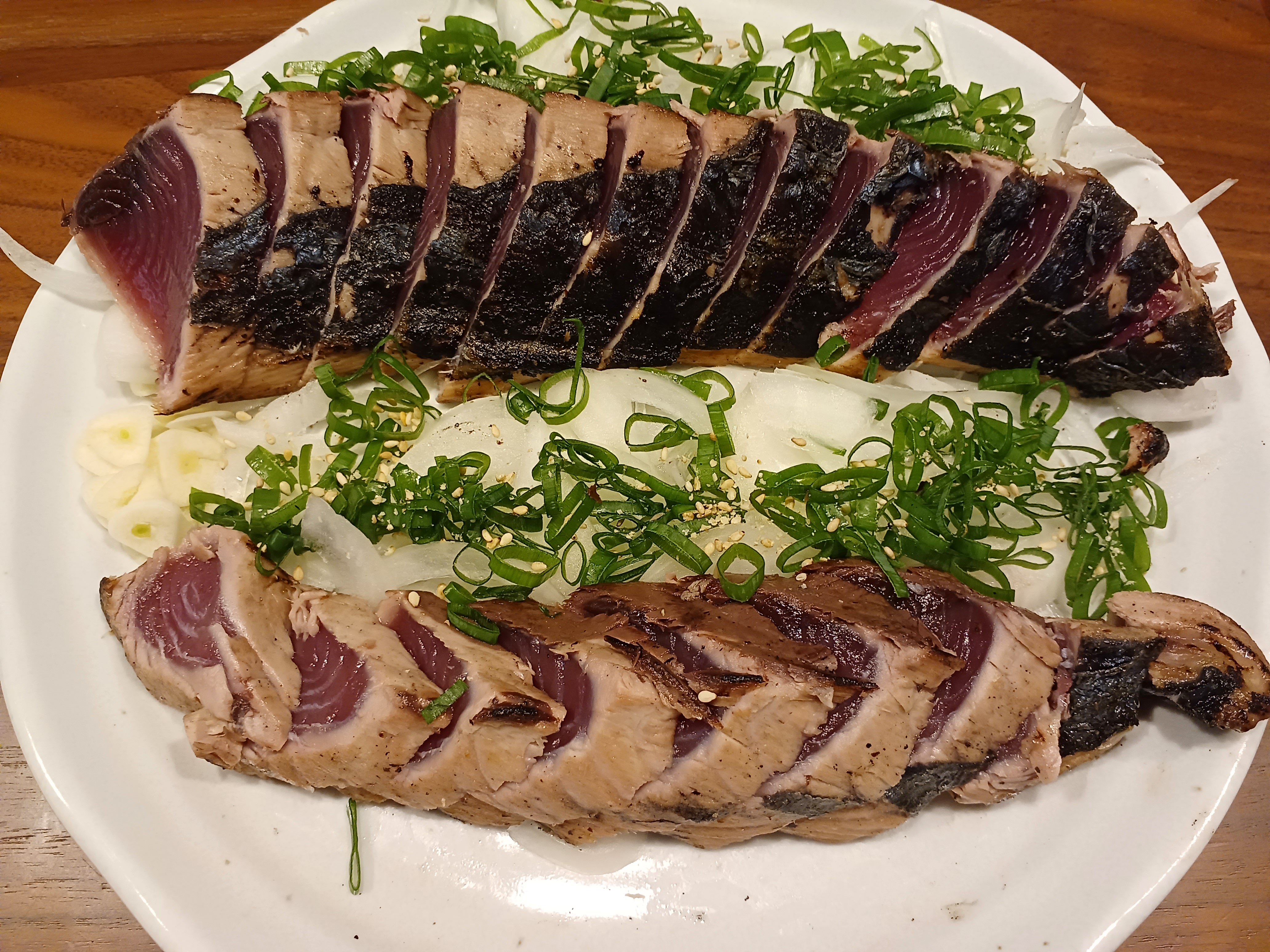 ①シンプルに粗塩を振ってかつお本来の味をお楽しみください!