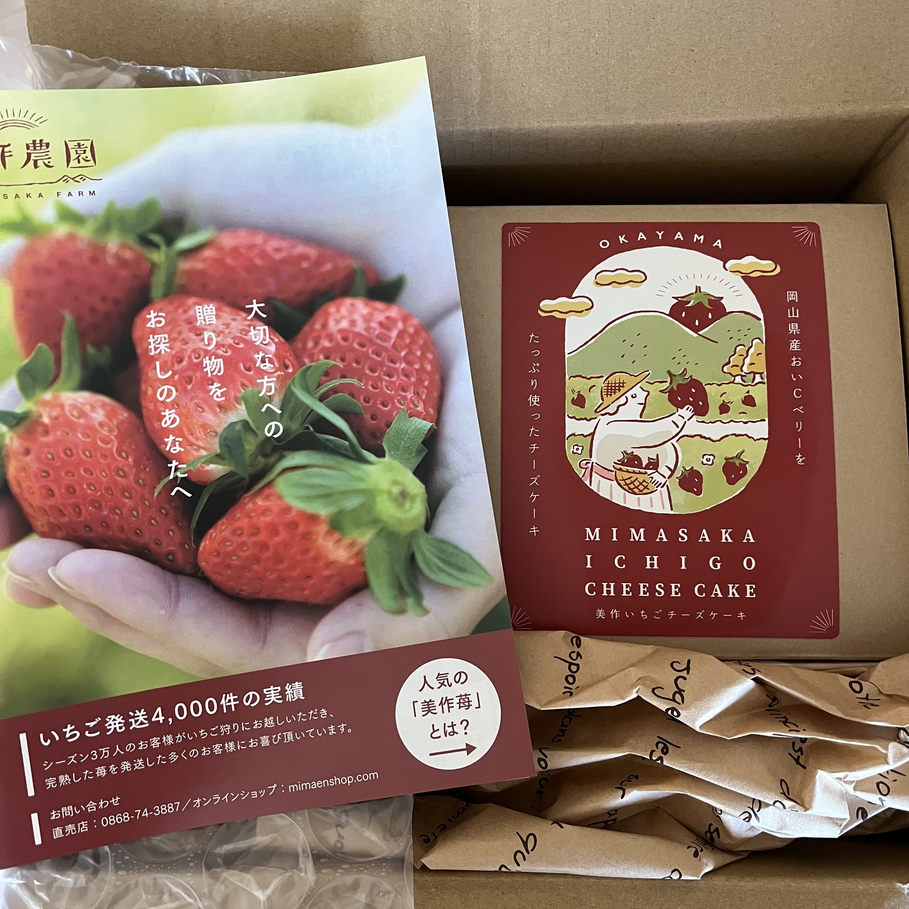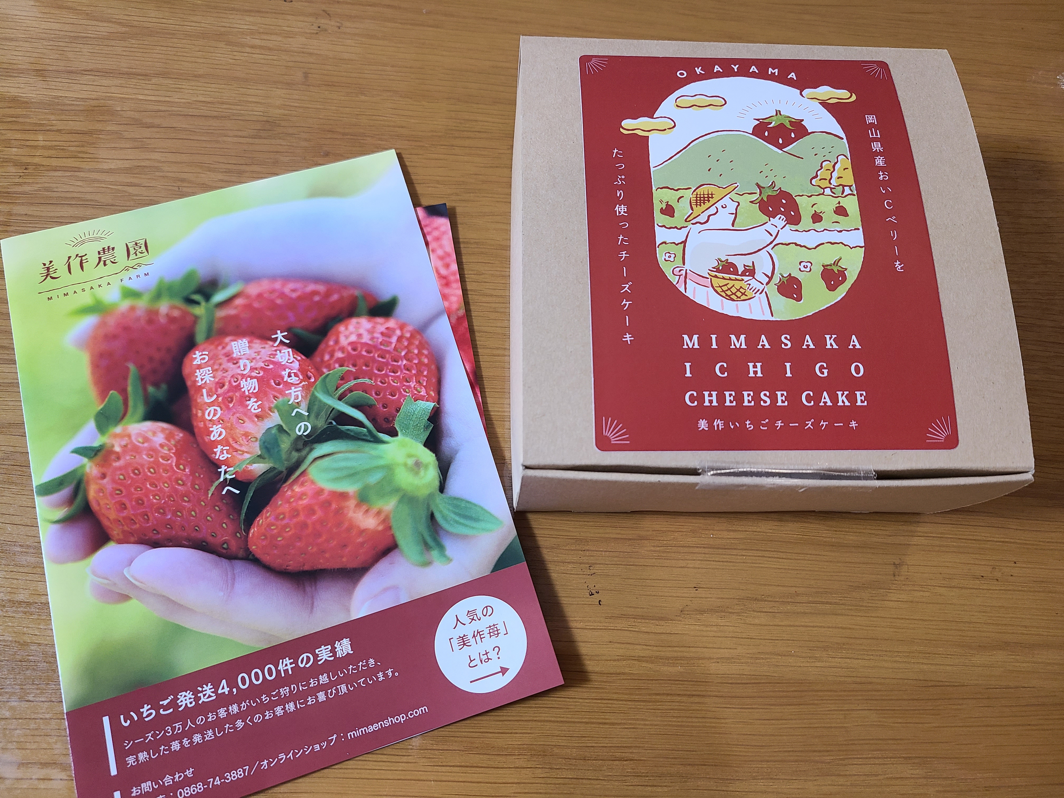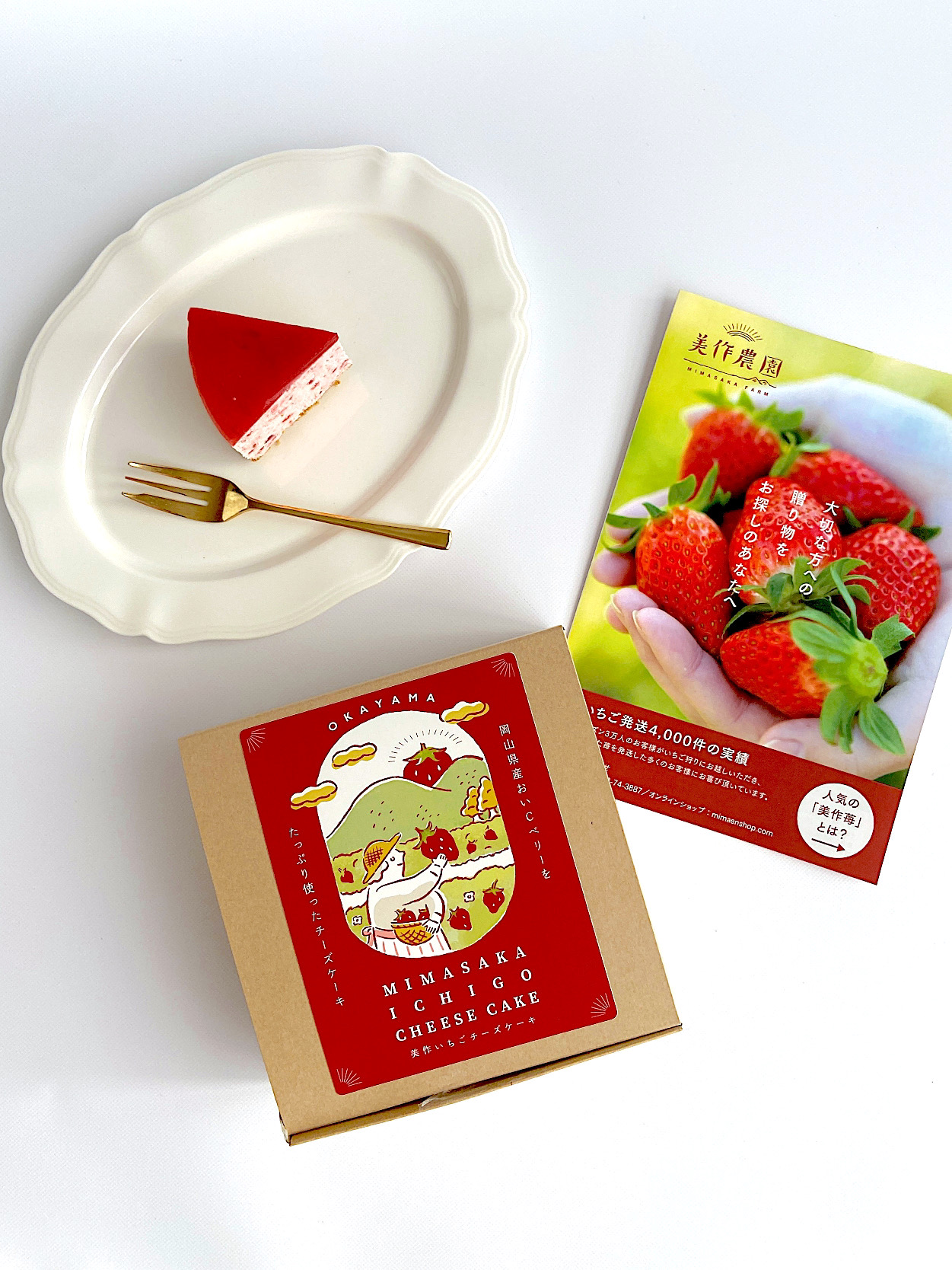 こちらのケーキ、生地に約40%も苺が使われていて、苺は岡山県産の「おいCベリー」という本格的な苺のチーズケーキです。自社農園だからこそできる贅沢さだと思います。