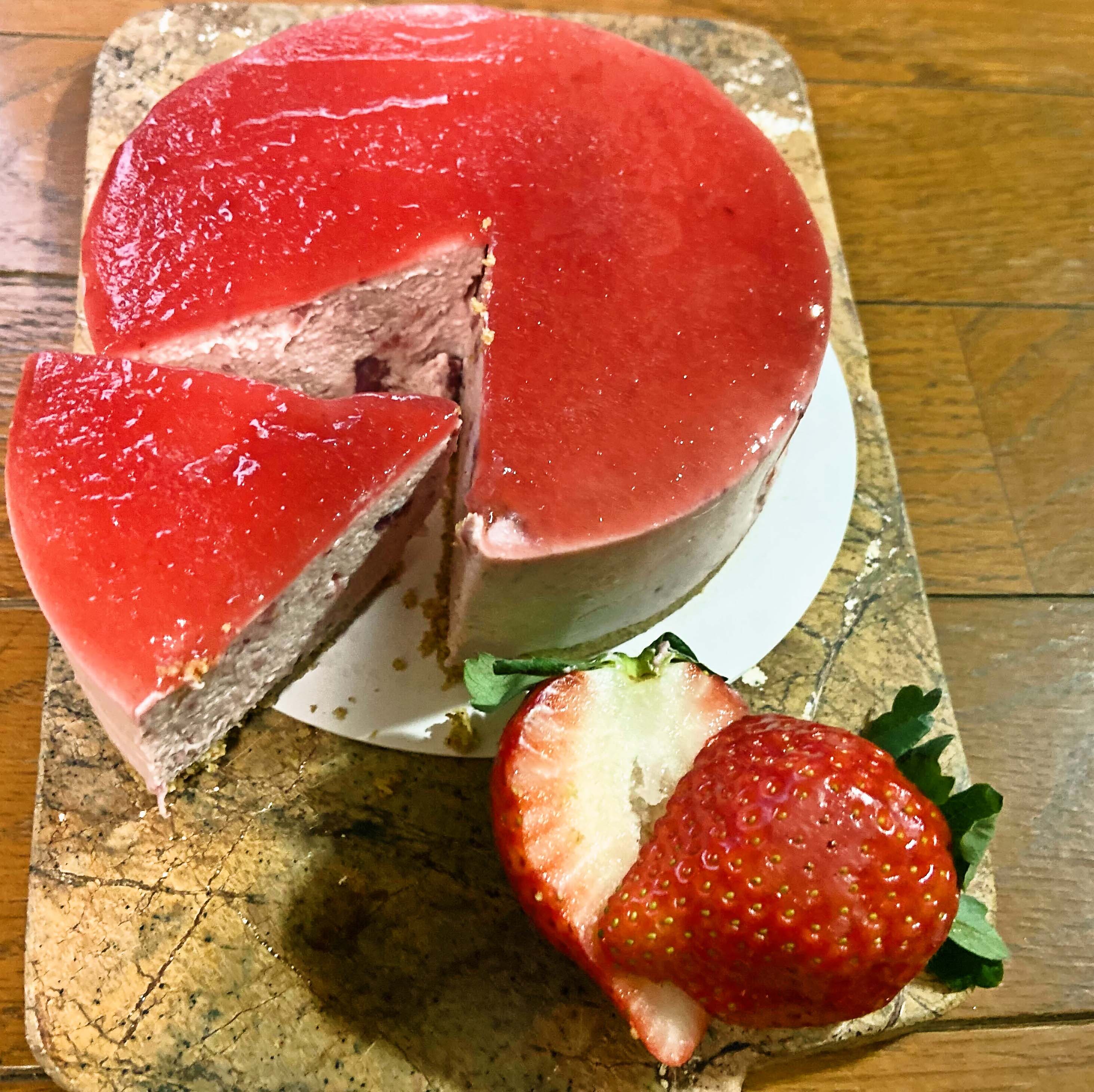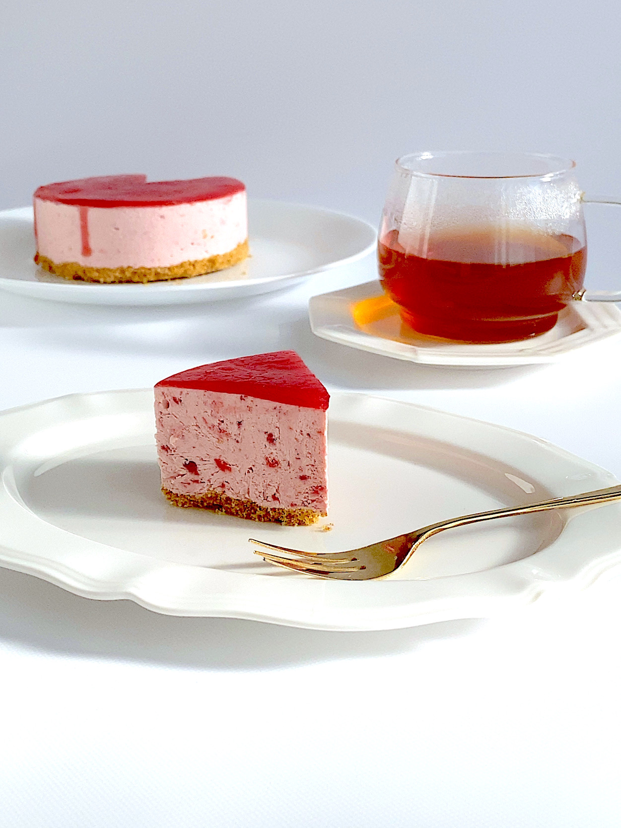 生地に約40%いちごを使った濃厚で甘酸っぱいいちご香るレアチーズケーキです。