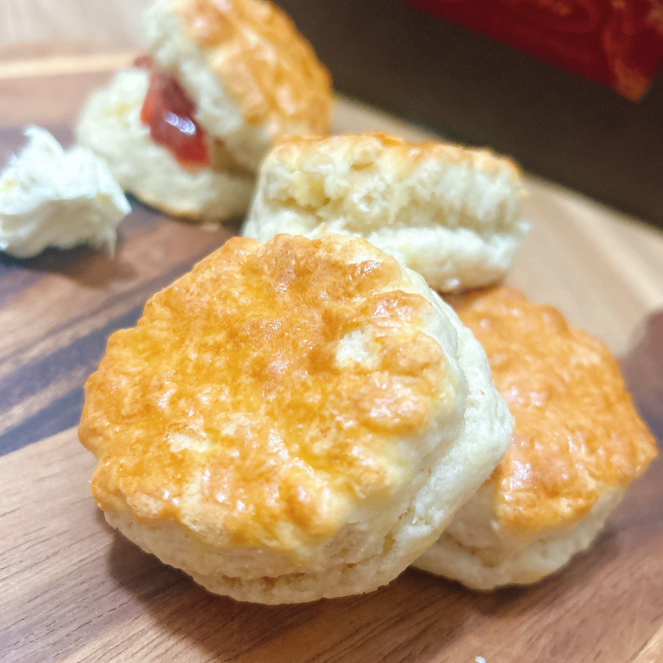 イギリスのスコーン老舗ブランドから直輸入、濃厚クロテッドクリームを配合して焼き上げる、しっとりリッチなこだわりのバタースコーン。