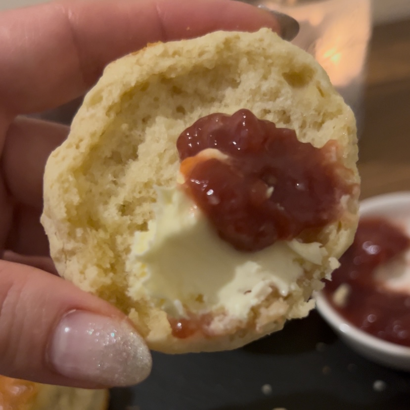 スコーンのしっとりとした食感。パサパサしたスコーンが苦手な私にとって、このしっとり感はまさに理想的。生地にクロテッドクリームが練り込まれているというこだわりが、この絶妙な食感を生み出しているのでしょう。口に入れた瞬間に広がるバターの風味も豊かで、一口食べるごとに幸せな気持ちになります。