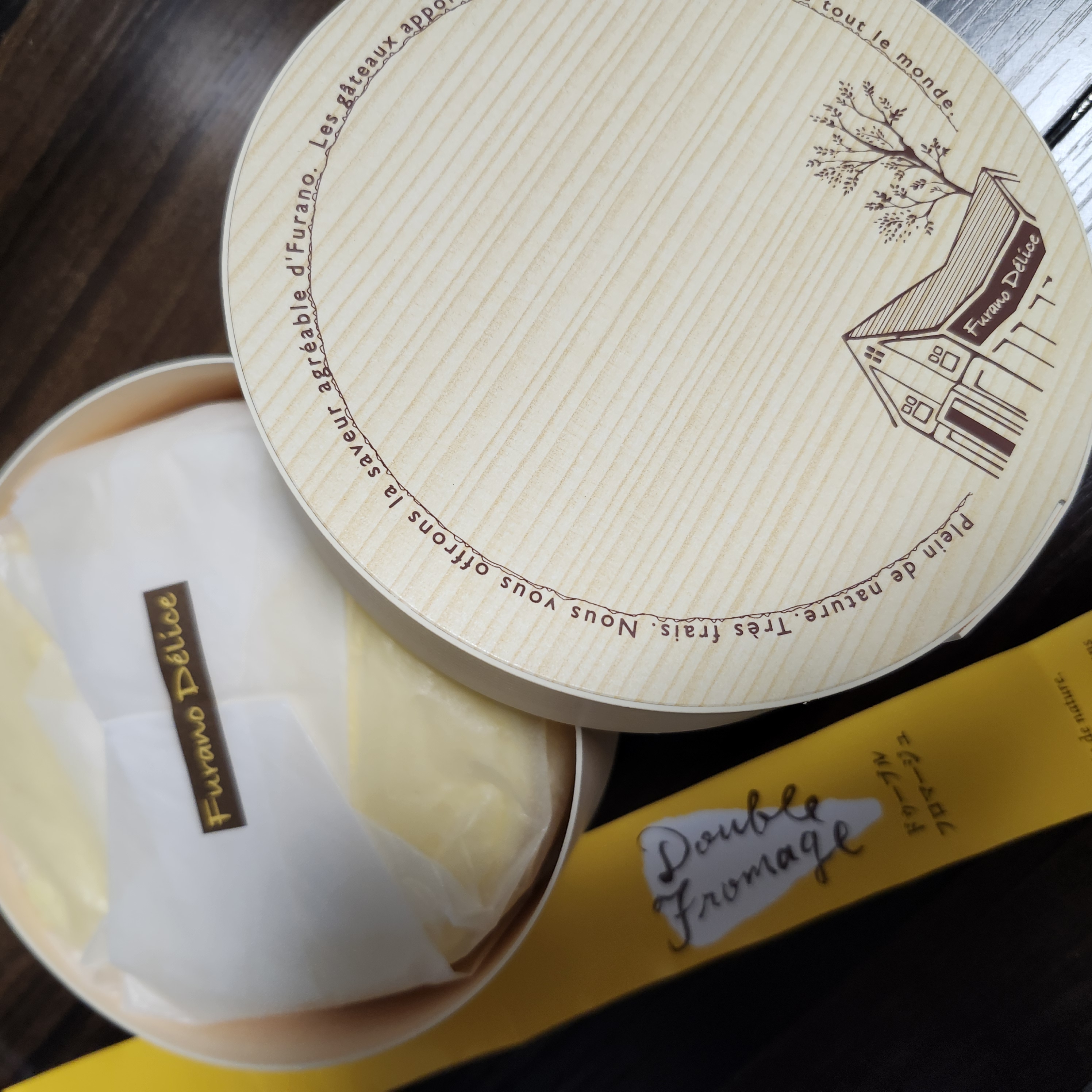 富良野の工房でパティシエが一つひとつ手作りした「ドゥーブルフロマージュ」です。北海道産の新鮮な素材と、パティシエの愛情がたっぷり詰まった温かみのあるチーズケーキです。上の層はマスカルポーネチーズのムース、下の層はニューヨークスタイルのベークドチーズケーキになっているため、2つの味や酸味、食感など異なる味わいが楽しめます。常温に置いてムースが少しやわらかくなった頃に食べるのがおすすめです。ギフトに入って届くので、贈り物にもぴったりです。