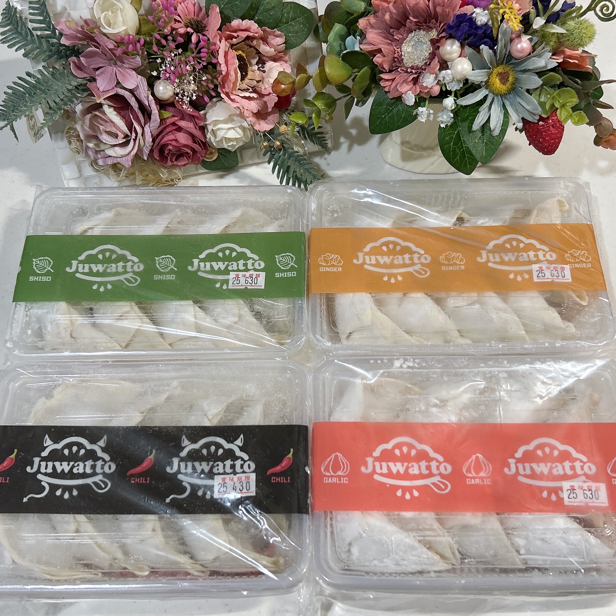 東京都練馬区大泉学園にあるイタリアンレストランオーナーシェフが1年以上かけて完成した「餃子」です。焼面はパリッと皮はモチっとした食感で、一口食べるとしたたるほどの肉汁が魅力です。味にメリハリのある「にんにく」や、幅広い年代から好まれる「しょうが」、さっぱりとした後味の「しそ」、悪魔的辛さがクセになる「とうがらし」など、5種から好みの4種を選べるセットです。冷凍で届き、焼いたり煮たりするだけで熱々の餃子が自宅で楽しめます。