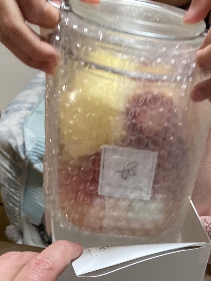 瓶から既にキラキラなフルーツが沢山入っているのが分かり、贈られたらかなりテンションあがります!