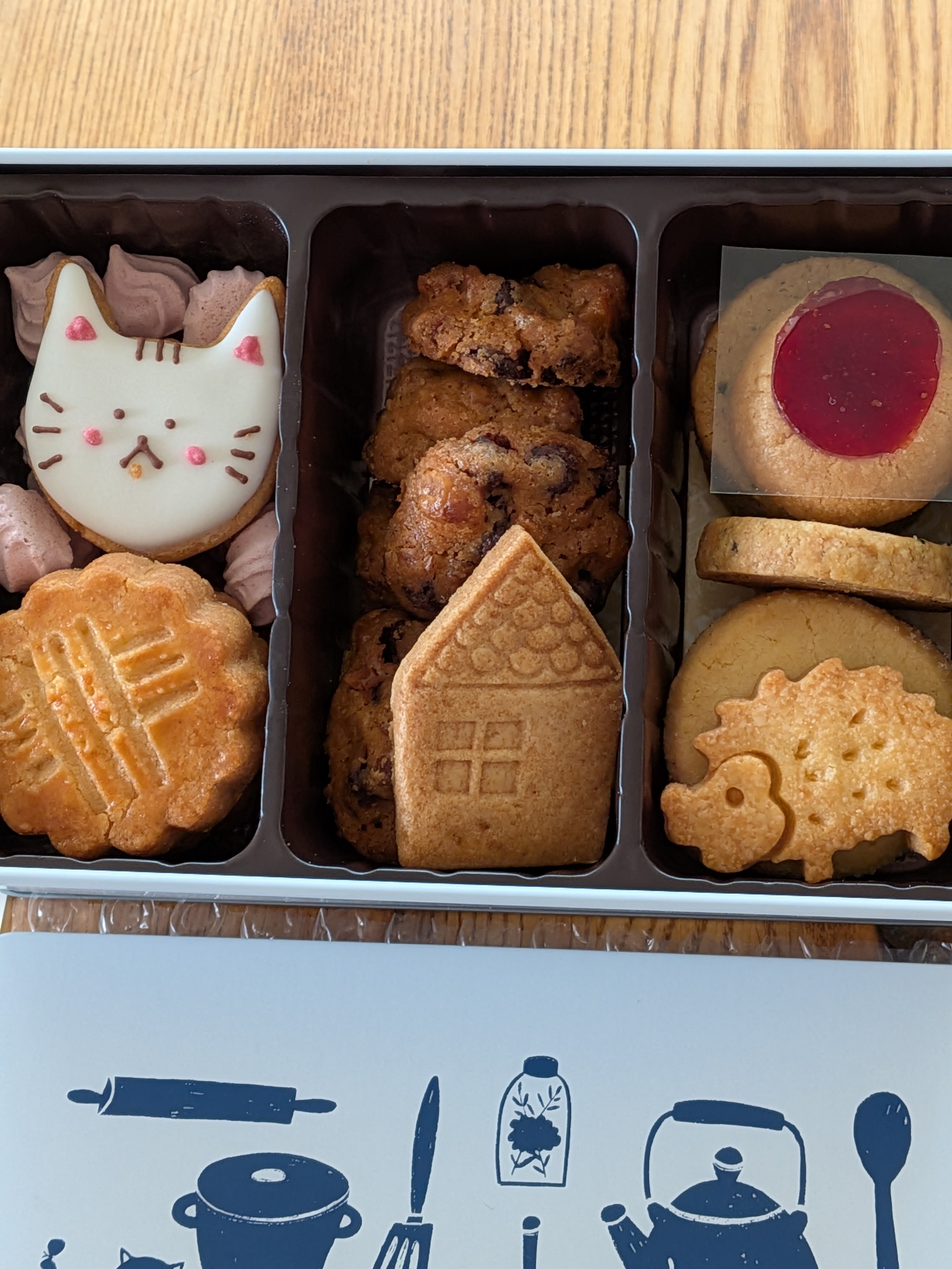 開けてみるとひとつの世界観みたいに統一感のあるクッキーたちが敷き詰められてて手作り感のあるほっこりした雰囲気!