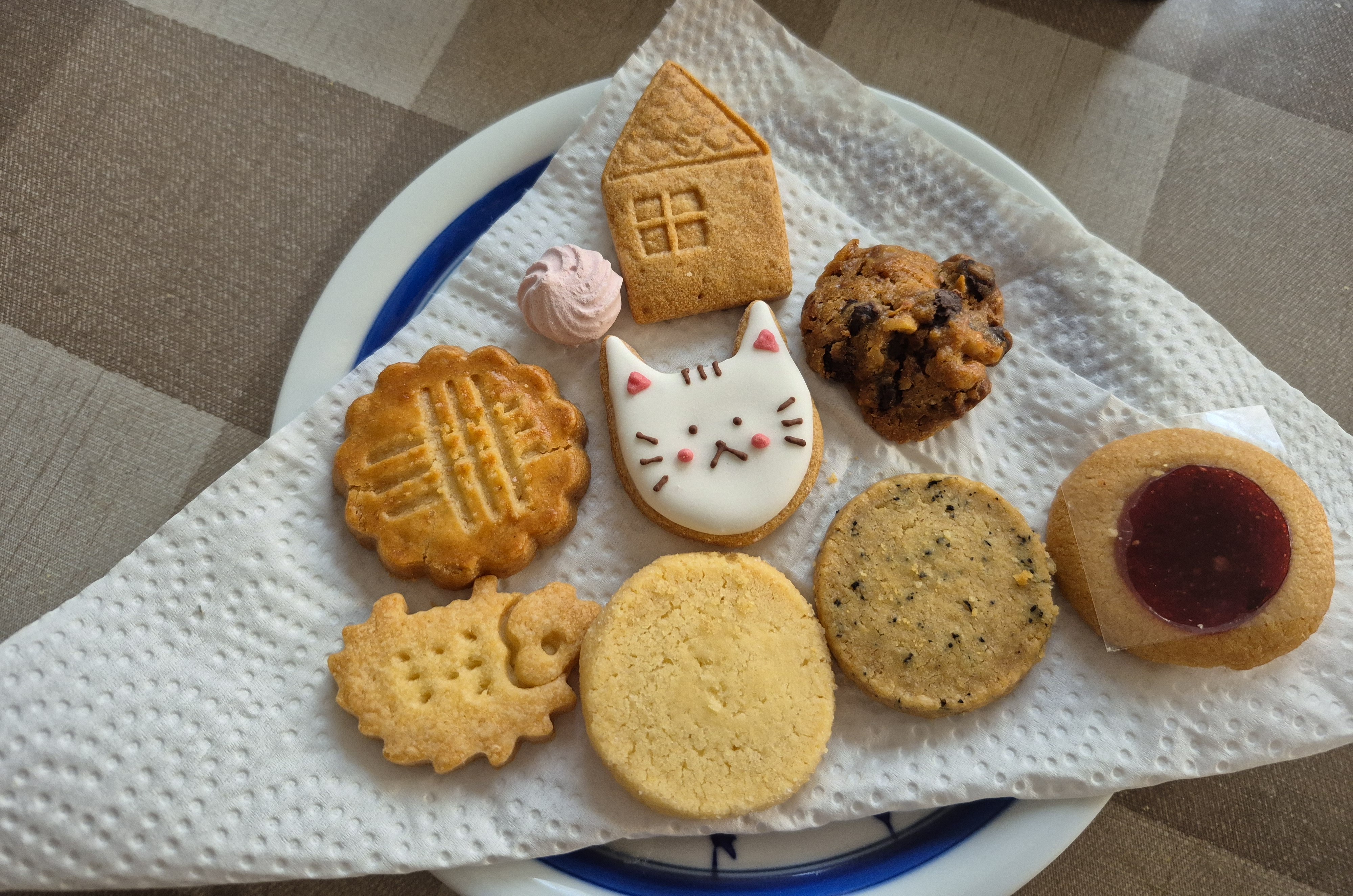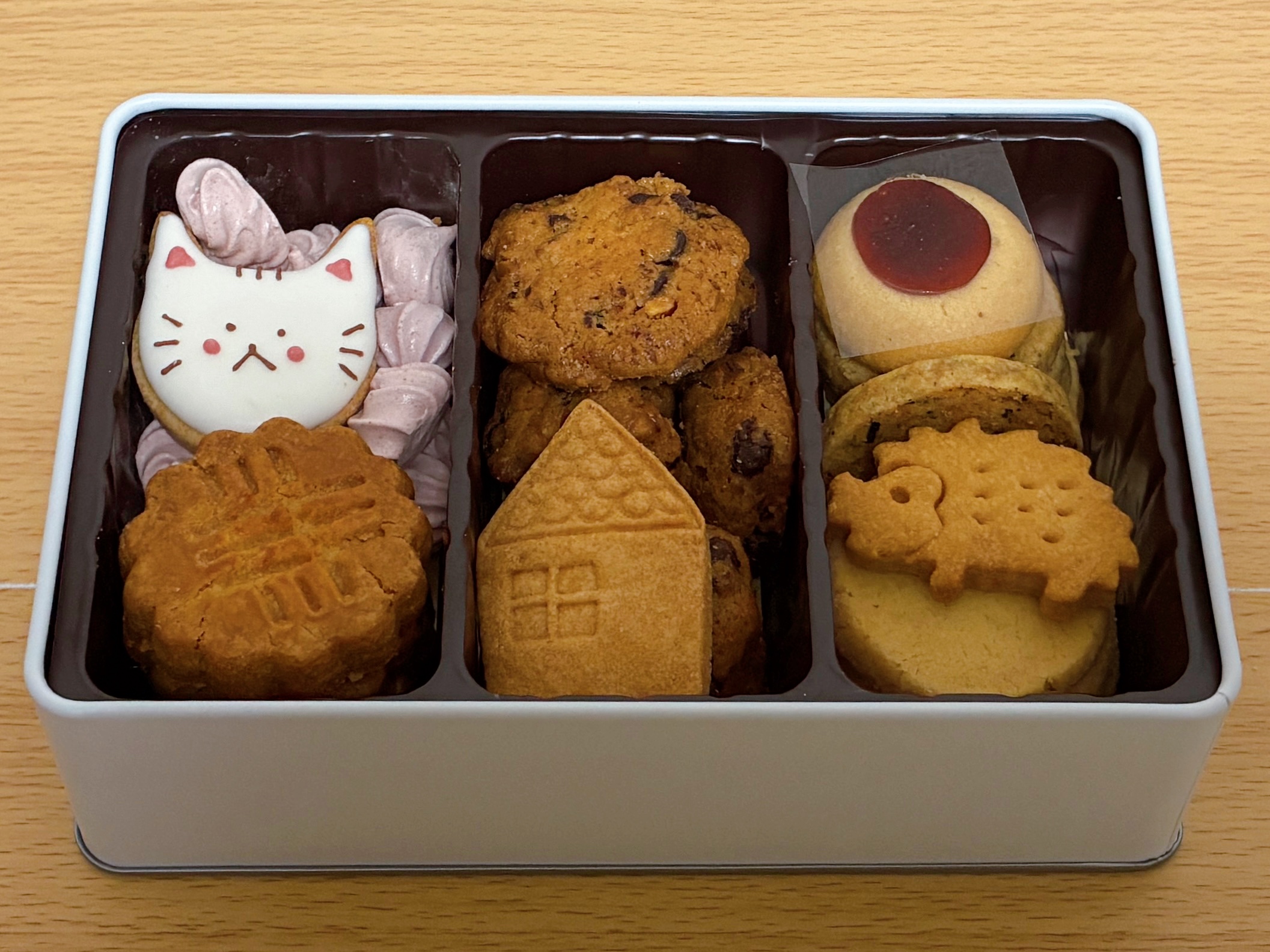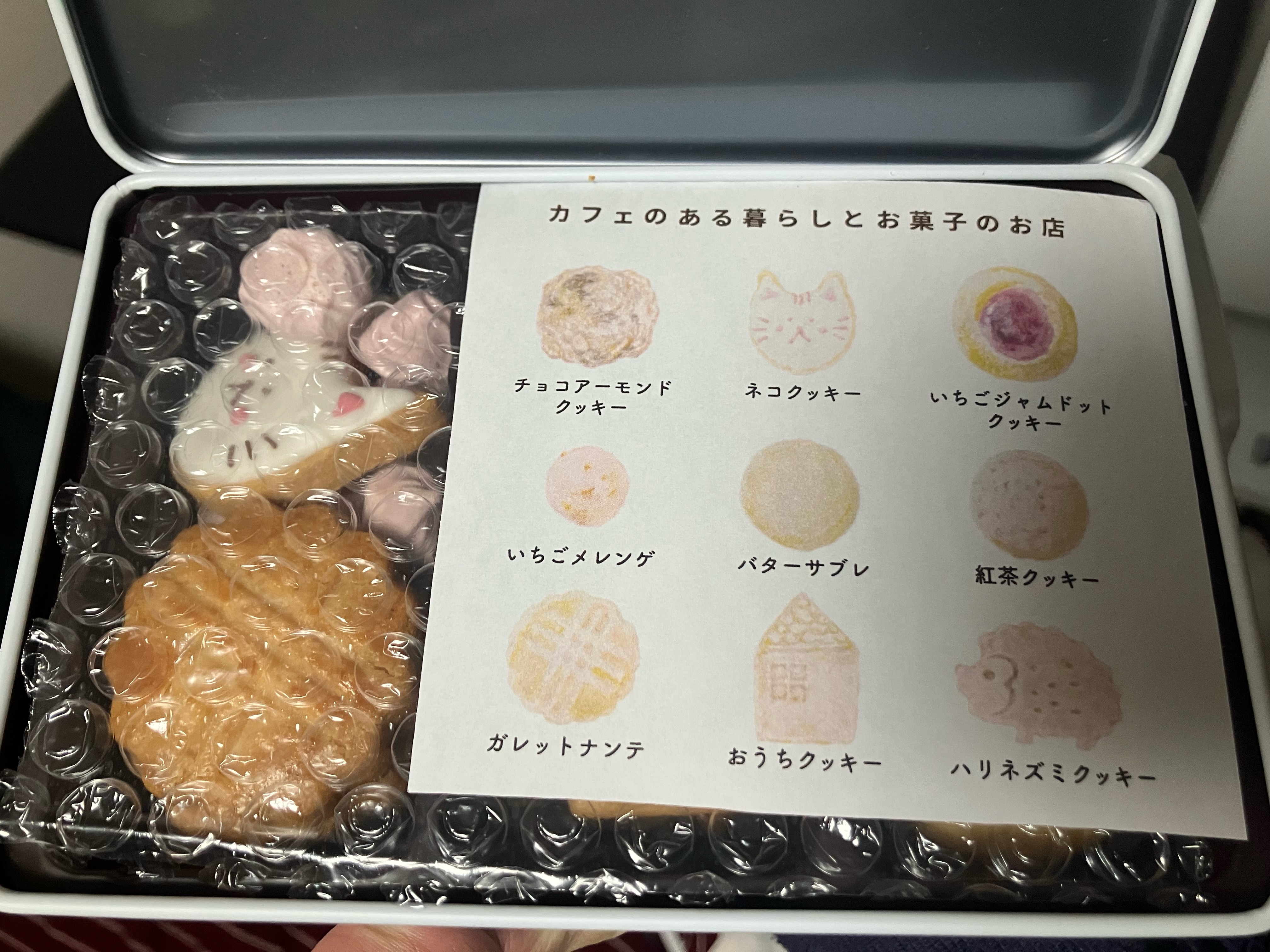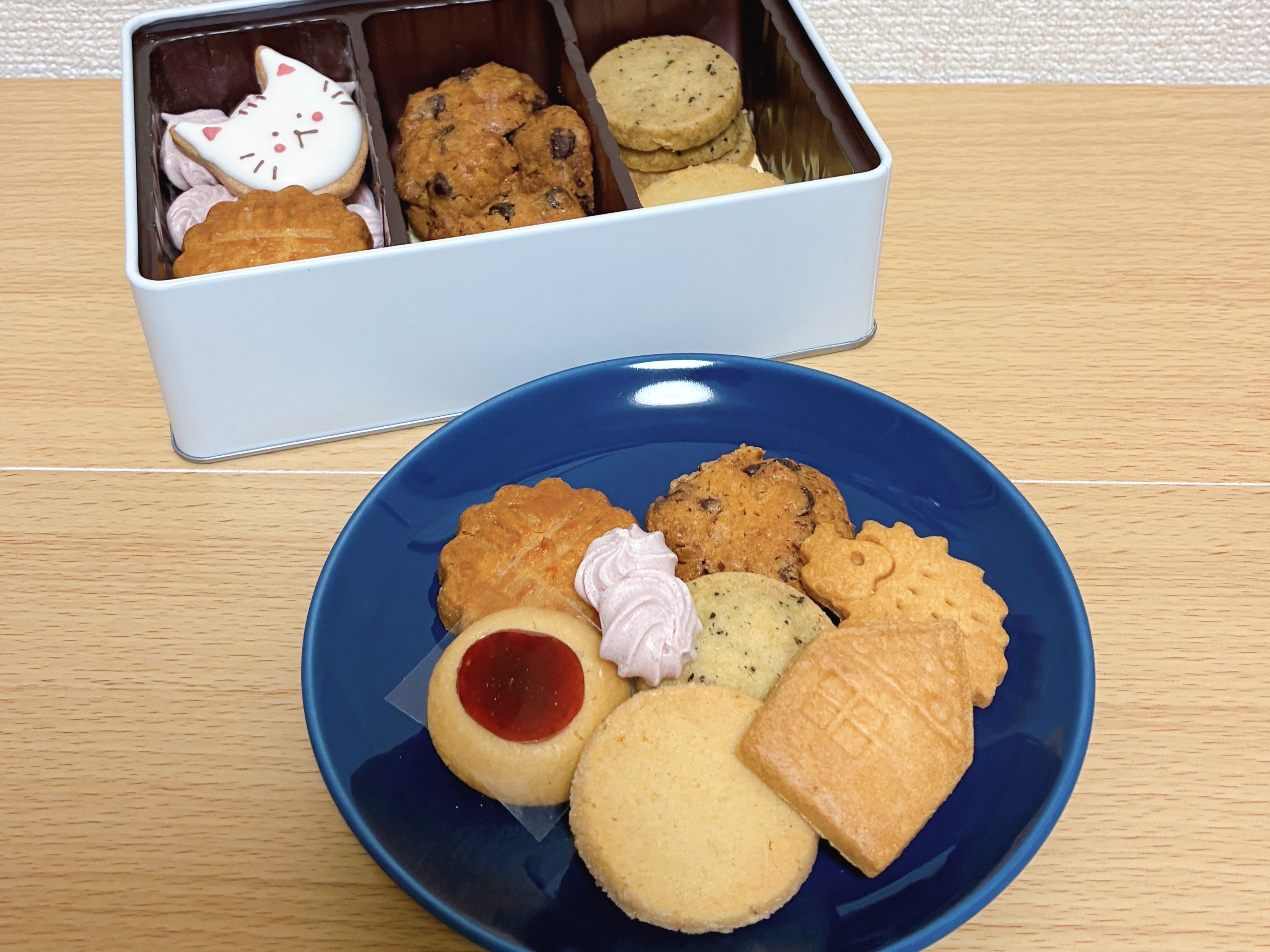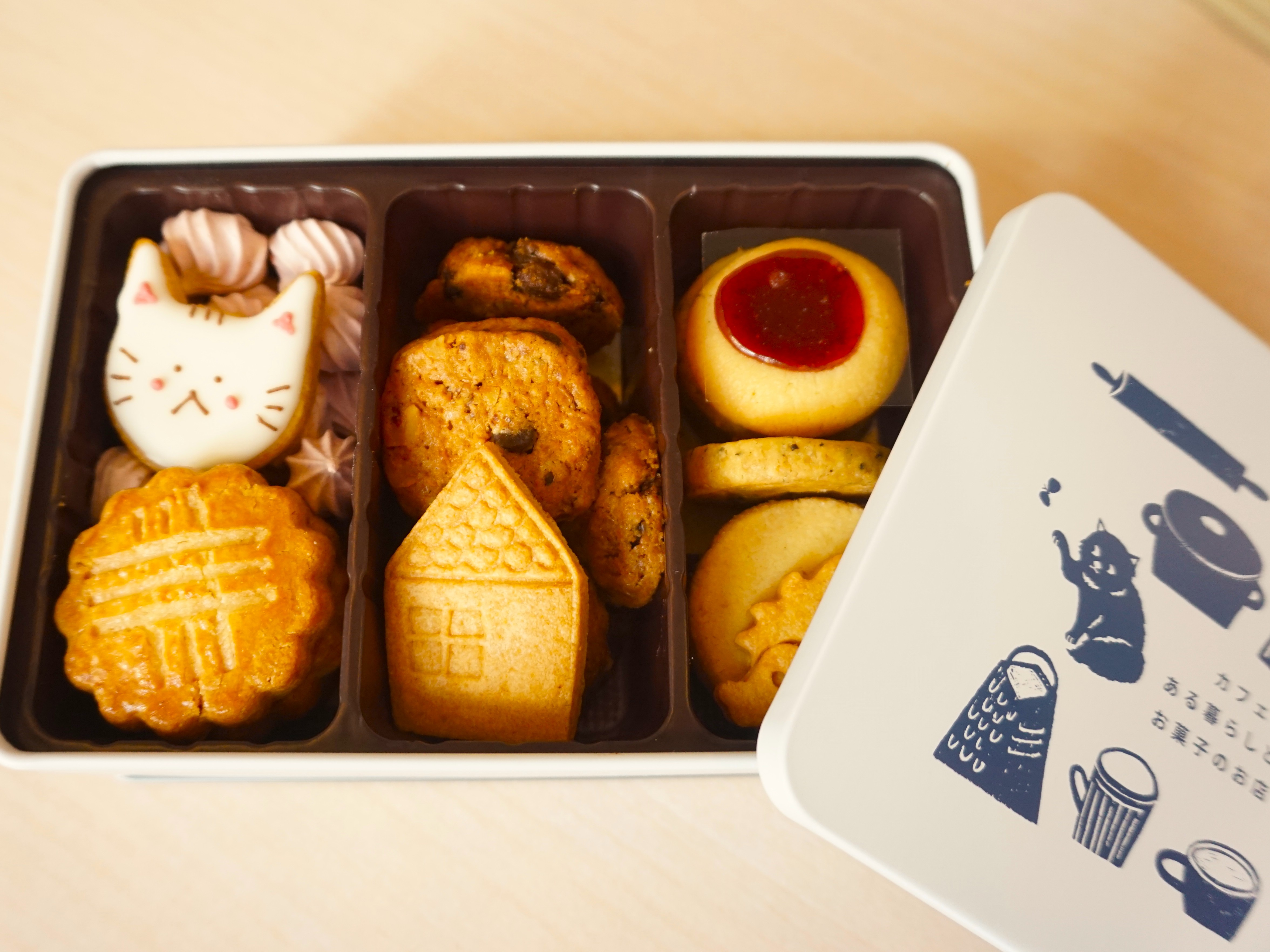 ネコクッキーとおうちクッキーは見た目に華を添えるように1枚ずつ大ぶりサイズで入っているのが、クッキー缶の主役みたいで可愛かったです。