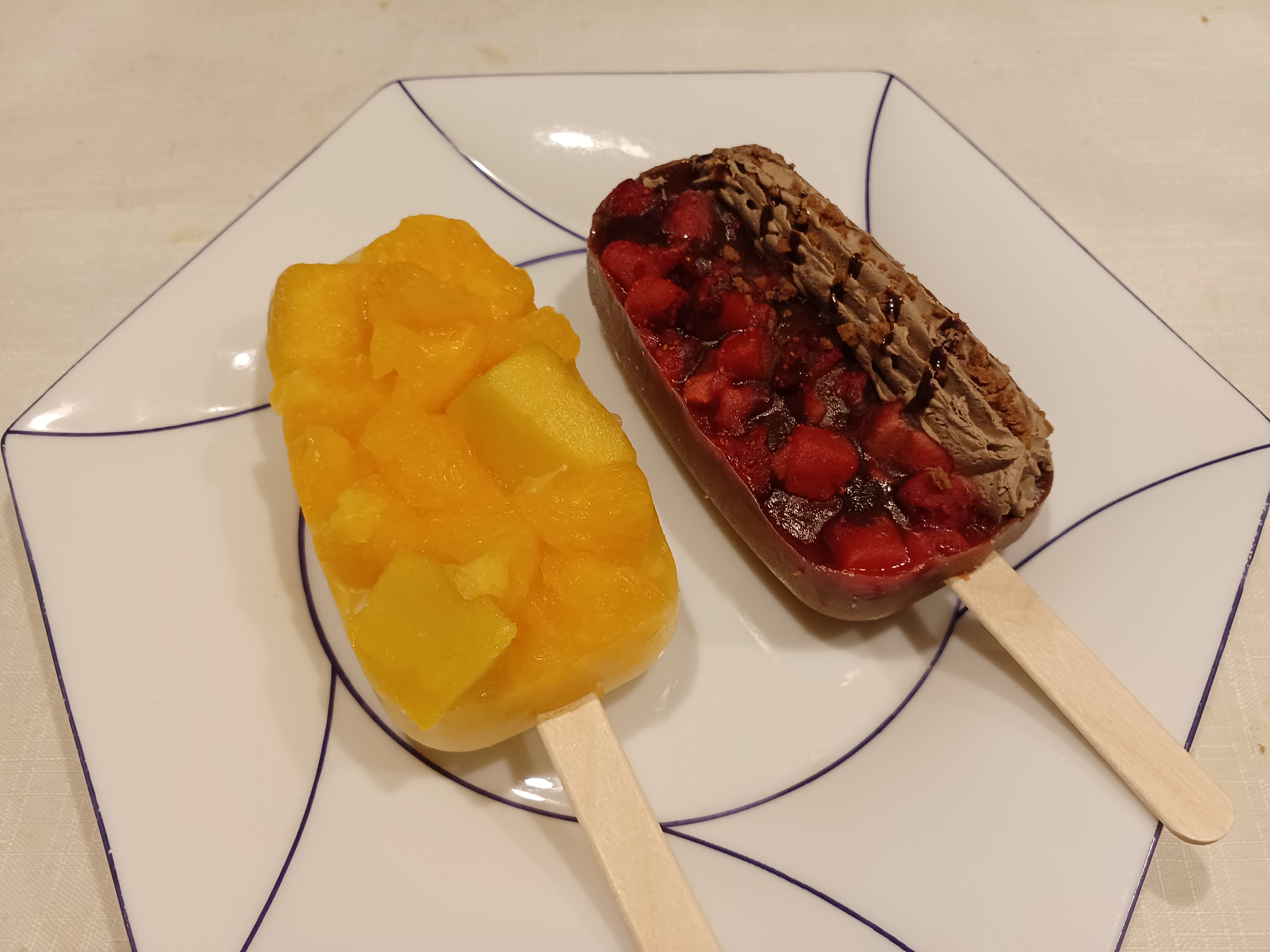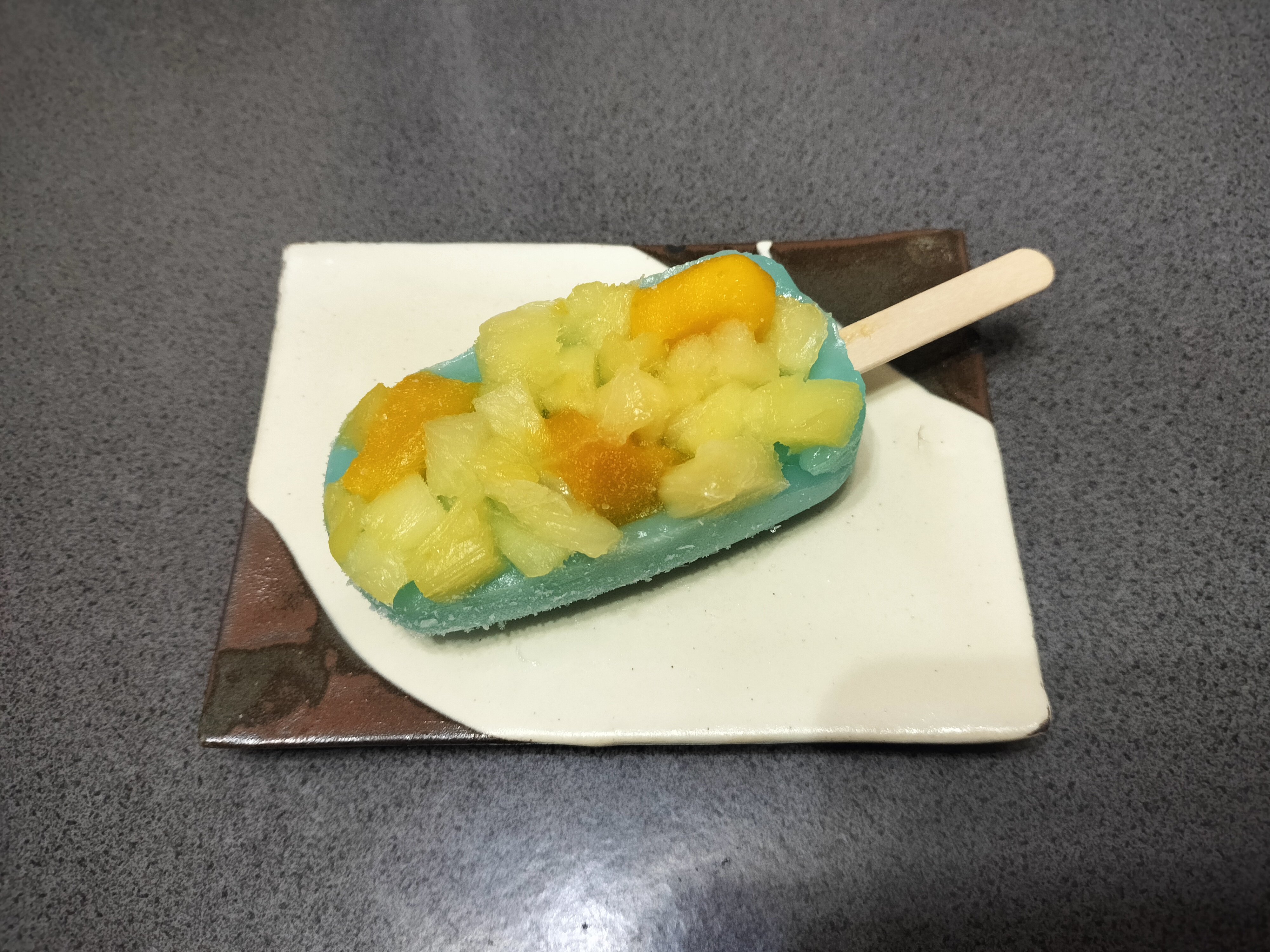 食べた感想としては、マンゴーみかんは上にのせられたトロッとしたマンゴーともっちりと柔らかいわらびもちアイスがモチモチとろとろで凄く美味です!みかんはスッキリとした風味をプラスしてくれています。