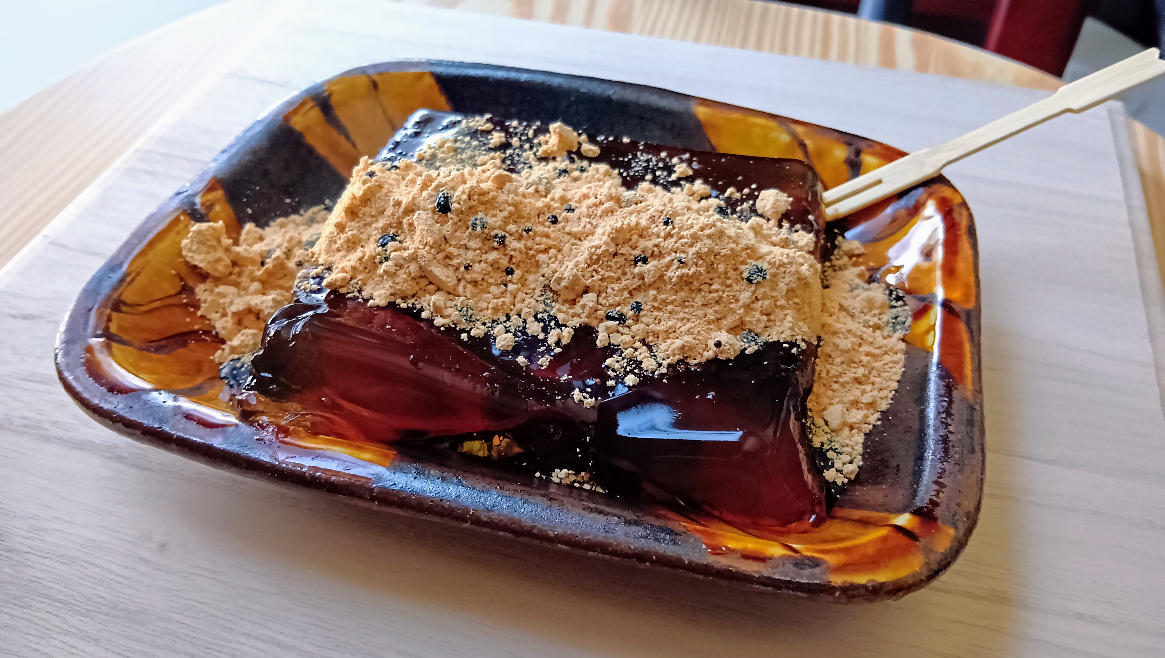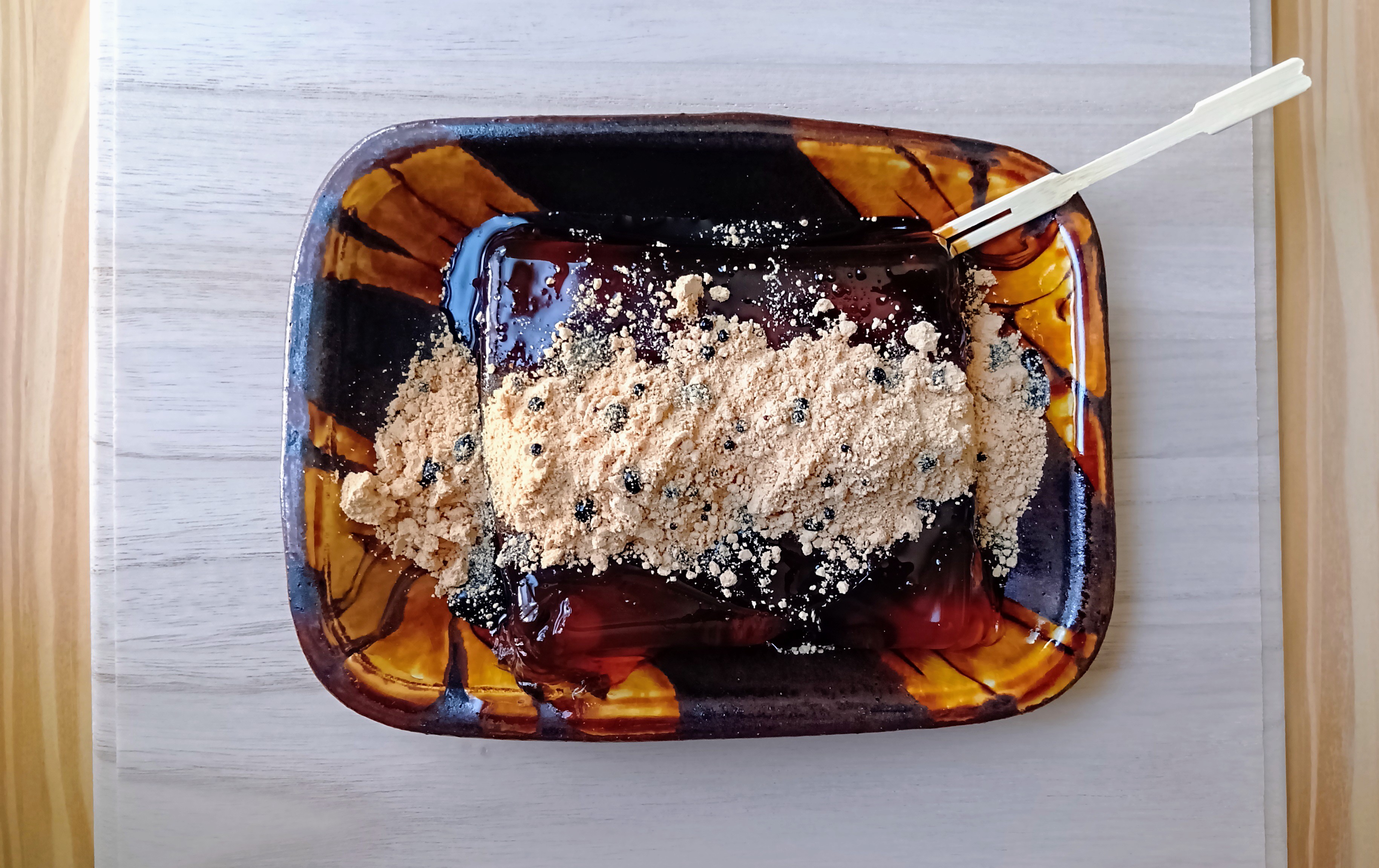 黒糖きな粉:わらび餅に黒糖と糖蜜が入っているからか、わらび餅そのものがコクがあり甘さもしっかり感じられます。