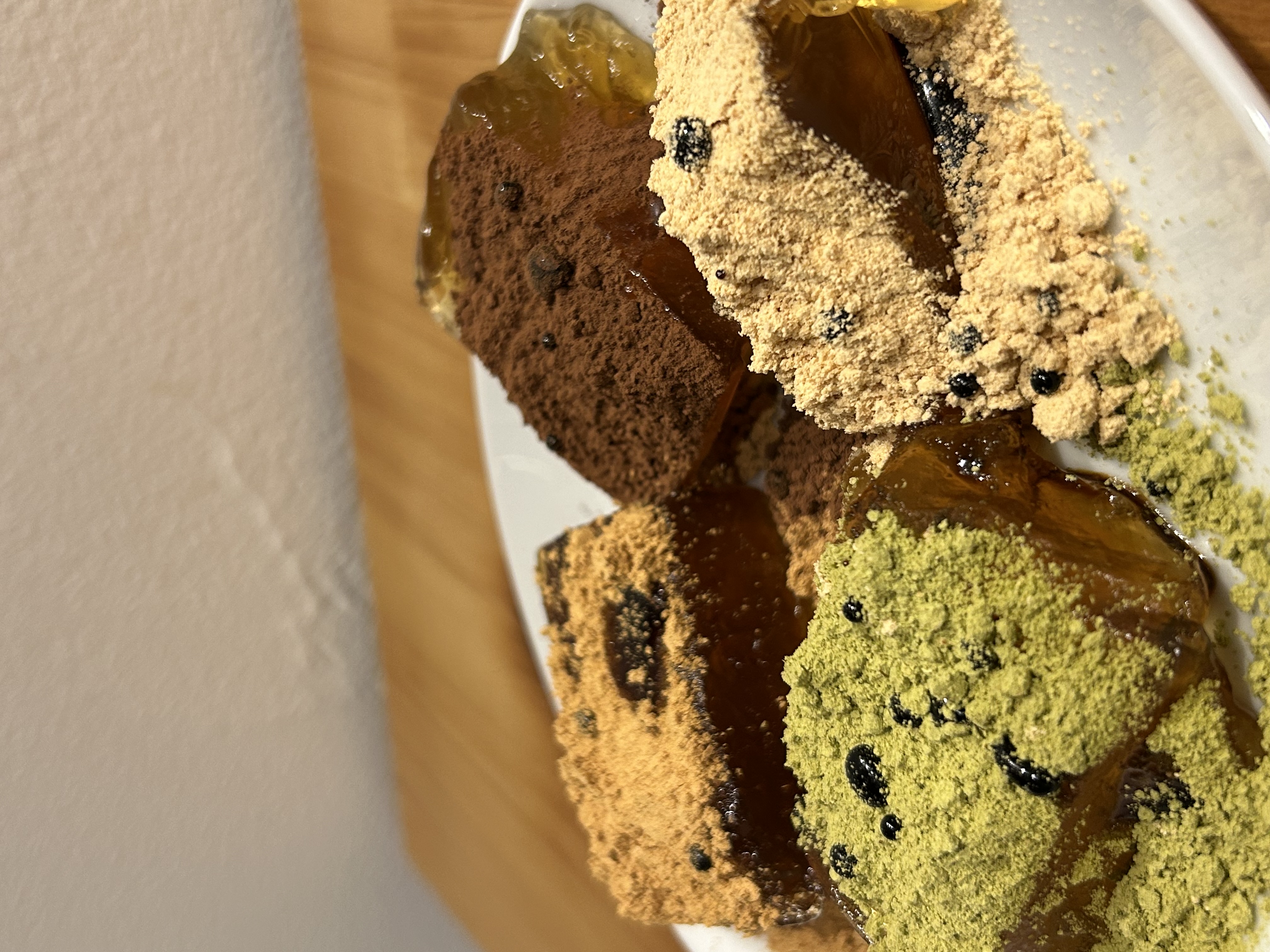 黒糖きな粉とチョコのわらび餅は食べたことがなかったので、より楽しみでした。