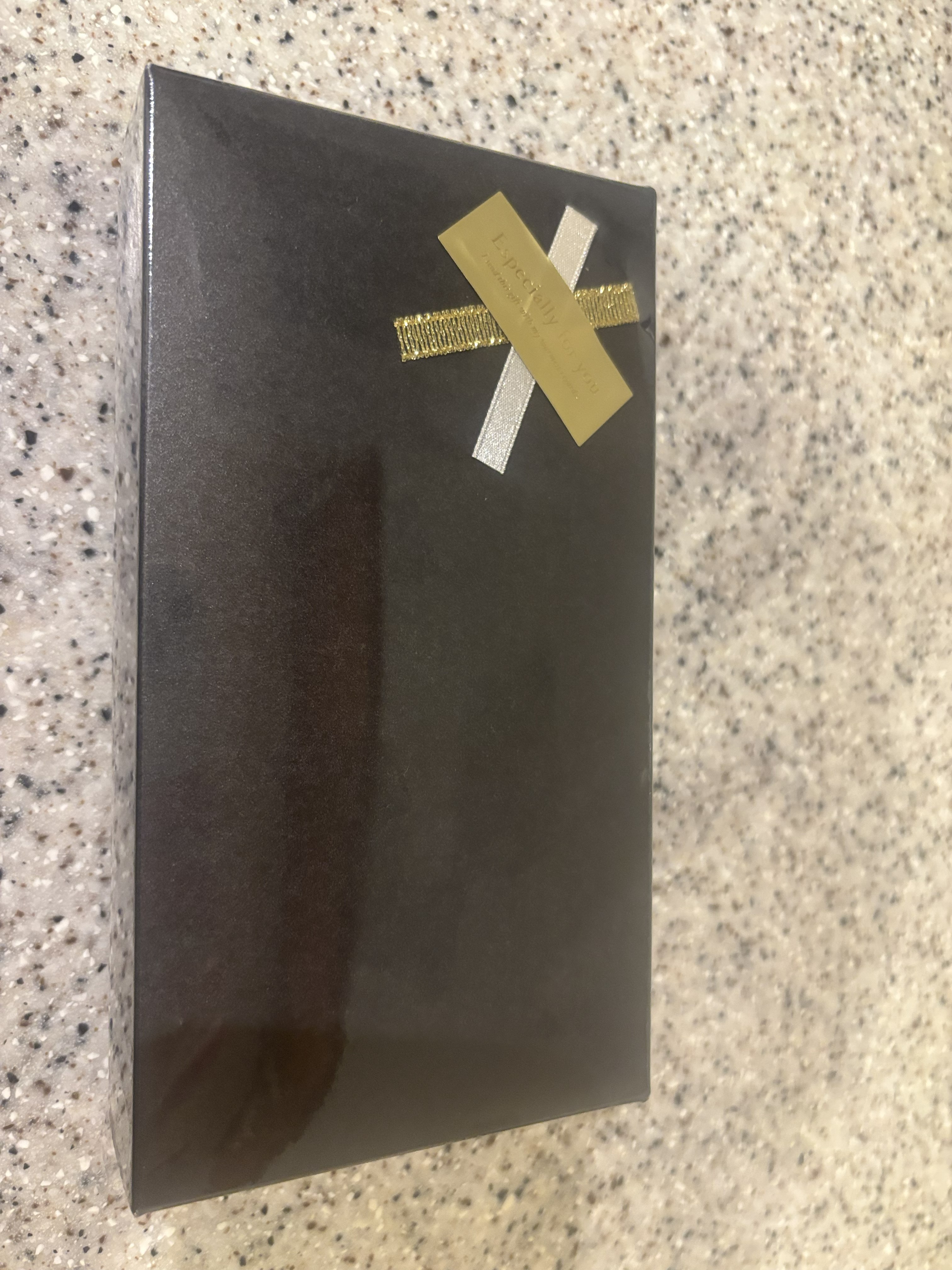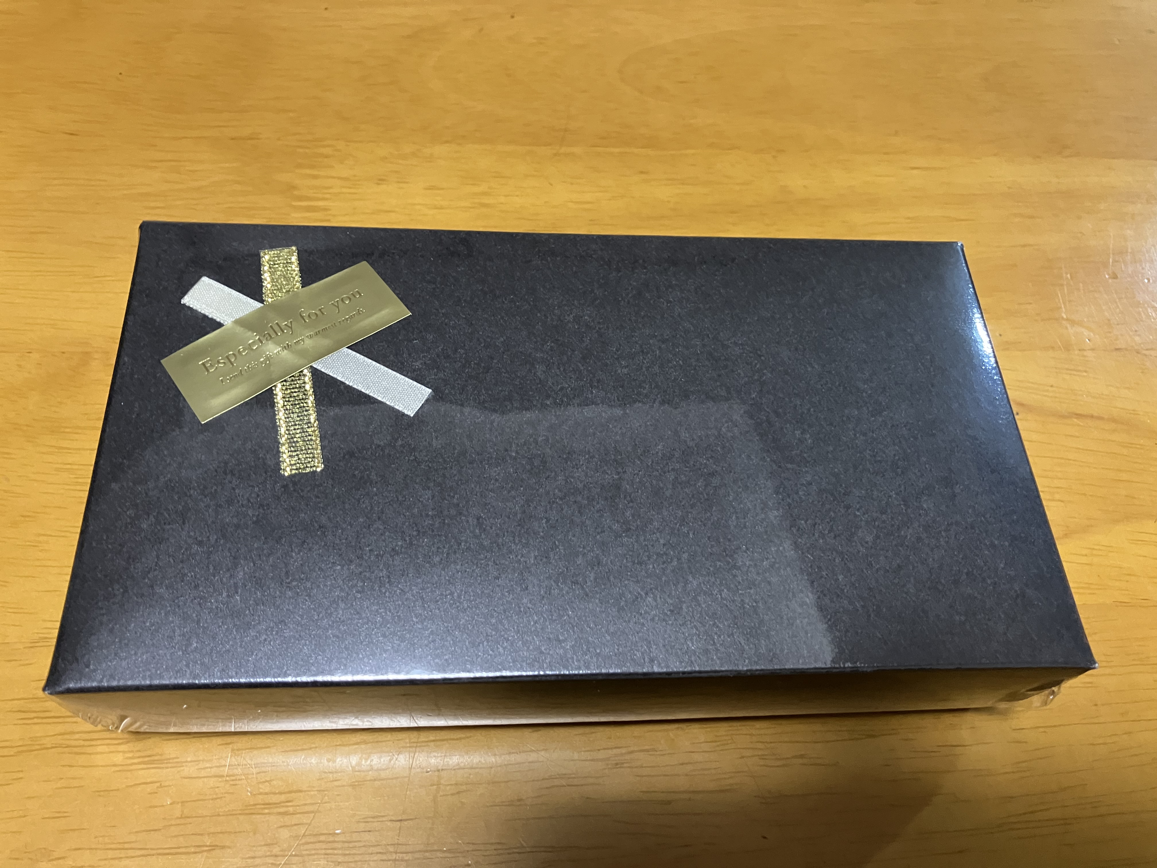 封筒を開けると透明なフィルムで包まれたシックな黒い箱が入っていました。パッと見たら、誰もが高級チョコレートなどのお菓子が入っていると思うパッケージでした。