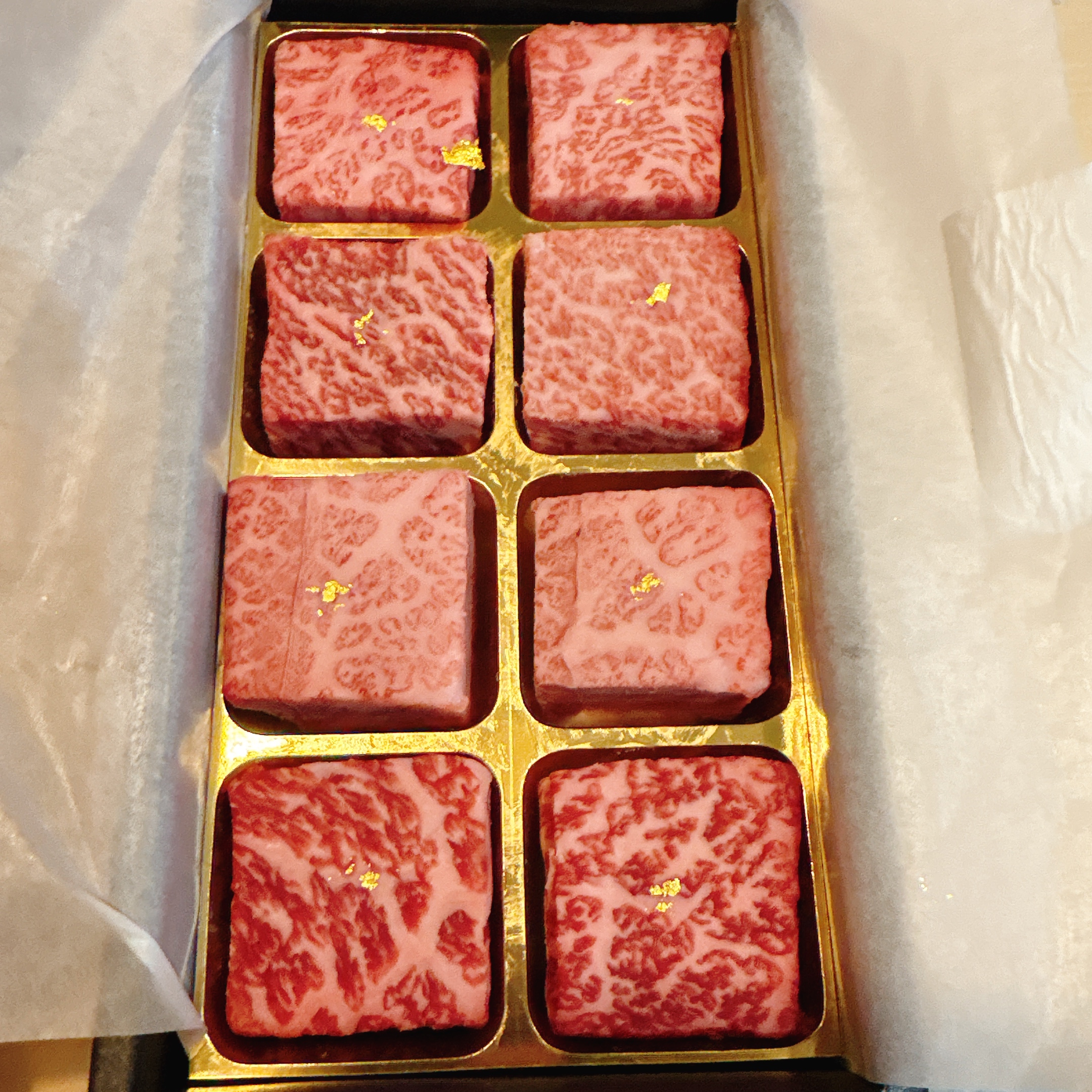 極上の伊萬里牛(伊万里牛)サイコロステーキの上に金粉をちりばめました。きらりと光る金粉でさらに豪華さがアップ。大切な方、お世話になった方への特別なプレゼントにピッタリです。