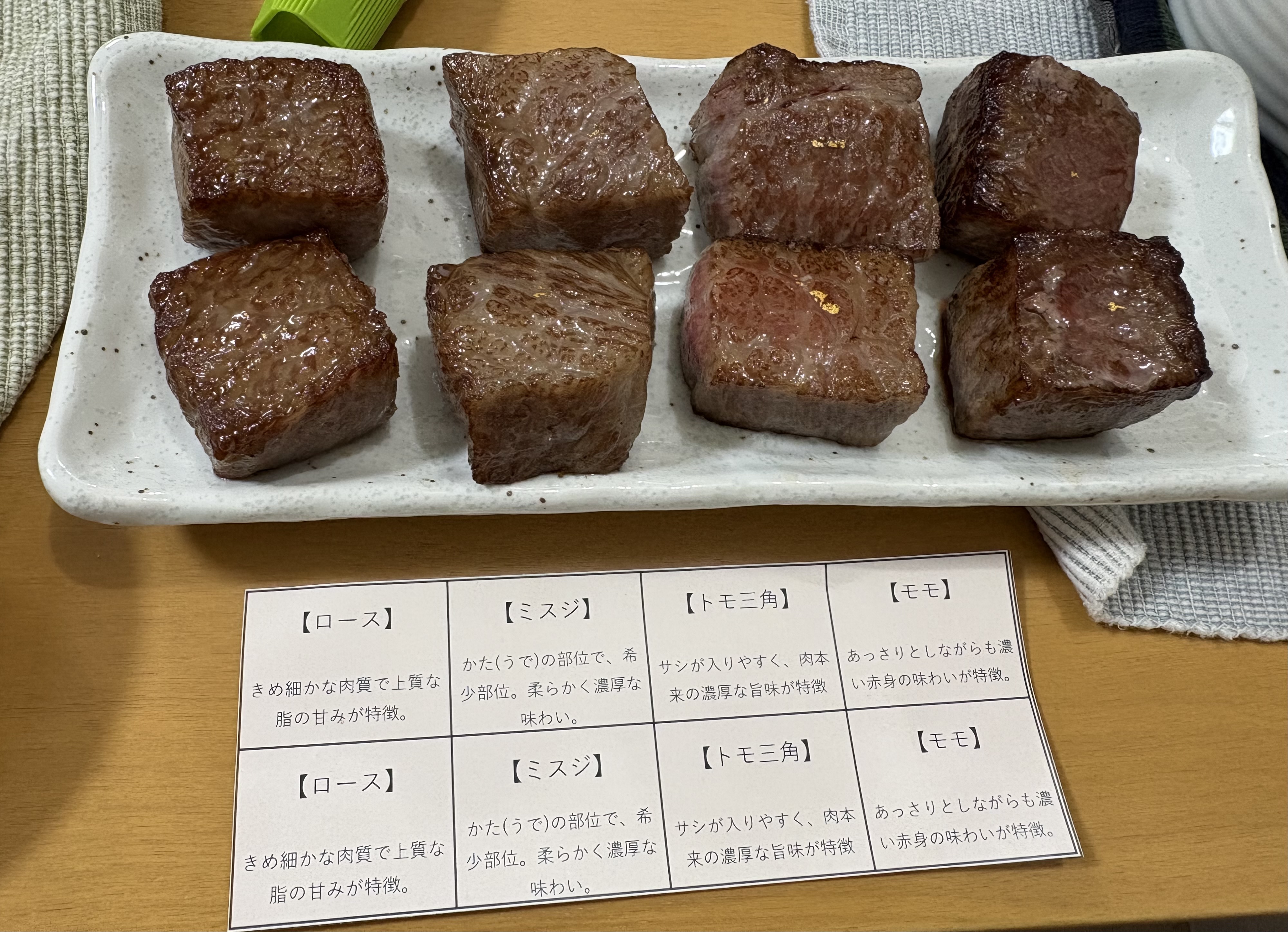 また、4種類のステーキを1度に食べ比べすることは、滅多にできることではないと思うので…部位ごとに赤身と脂身のバランス・旨味・甘味・脂の感じ方が違うことに驚きましたし、食べていて楽しかったです。