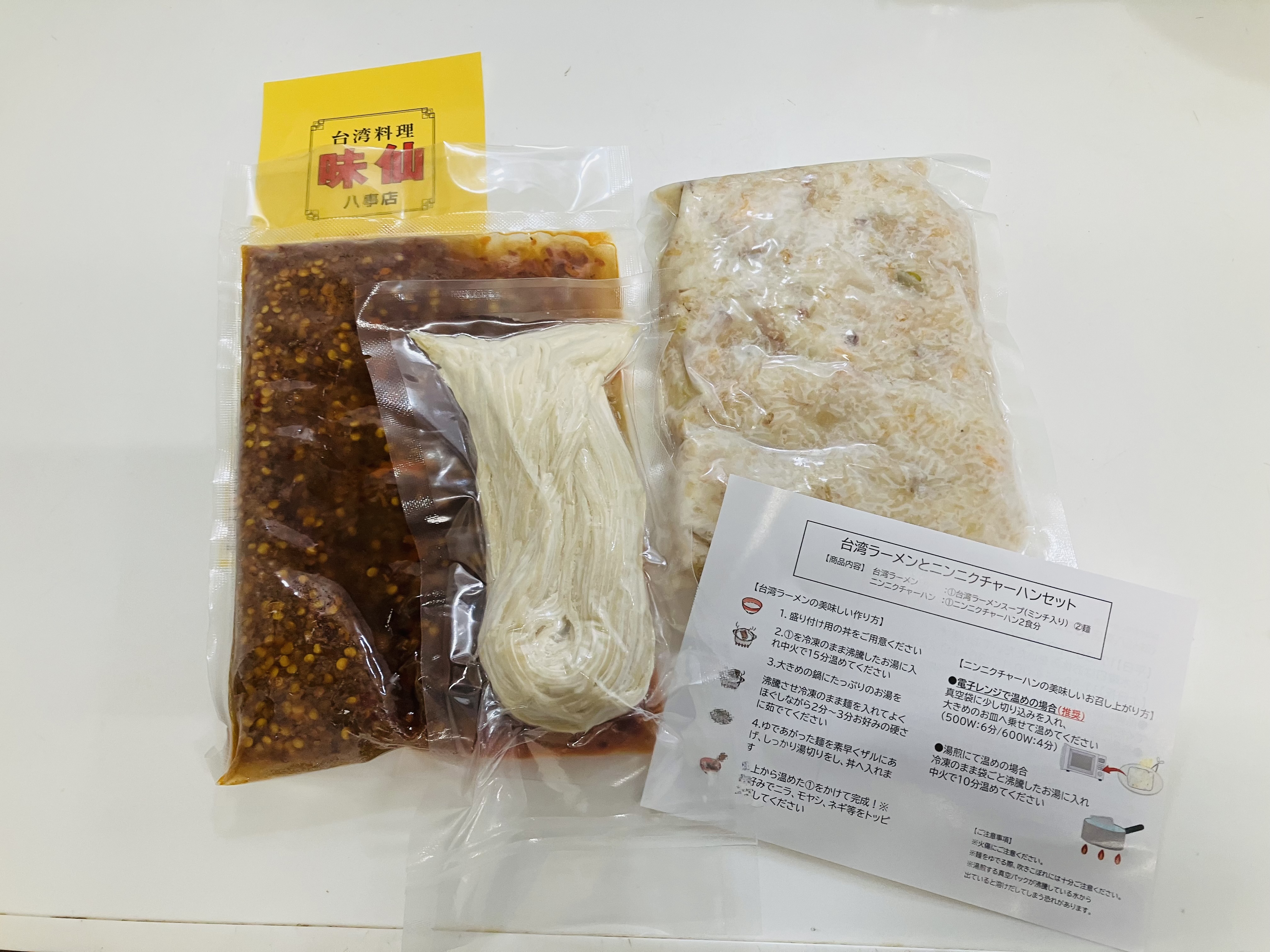 創業60年以上の老舗町中華「味仙」の「台湾ラーメンとにんにくチャーハン」セットです。名古屋名物の「台湾ラーメン」は、唐辛子とにんにくをたっぷり効かせ、じっくり煮込んだ鶏ガラベースのスープに、秘伝の旨辛「台湾ミンチ」を合わせています。特製中太麺とのバランスが絶妙で、やみつきになる味わいです。相性抜群のパンチのある「にんにくチャーハン」もセットになっているので、自宅で名古屋のご当地グルメが楽しめます。
