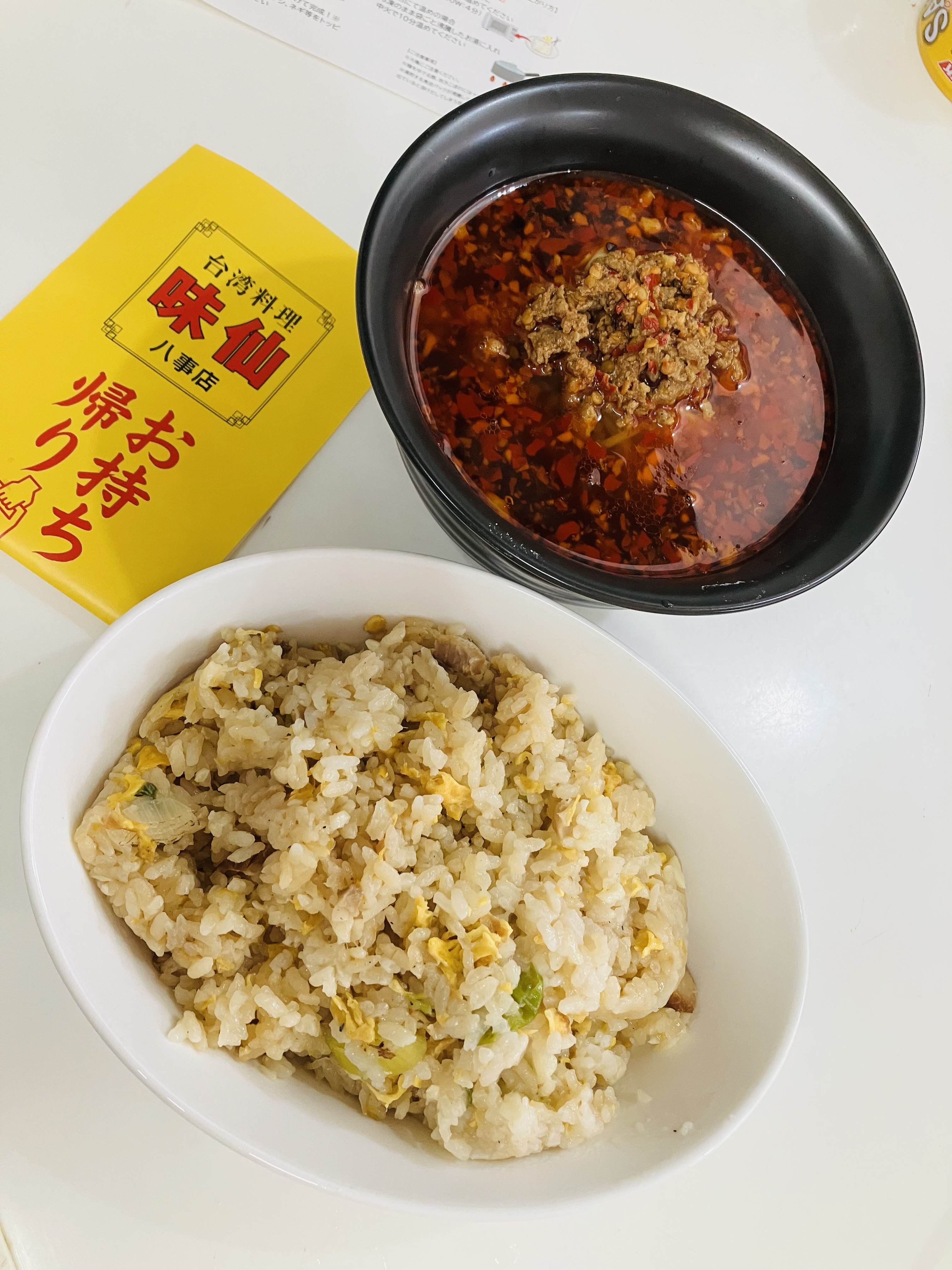 味仙八事店の看板メニューの「元祖台湾ラーメン」と「にんにくチャーハン」が一度に味わえます。