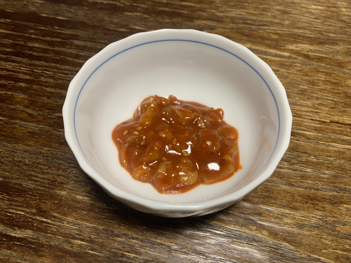 コチュジャンベースの甘辛さが、一番なじみのあるイメージするチャンジャ味でした。口に含んだ瞬間は甘みを強く感じますが、噛んでいるうちに辛みが出てきてタラの旨味を存分に味わうことができました。