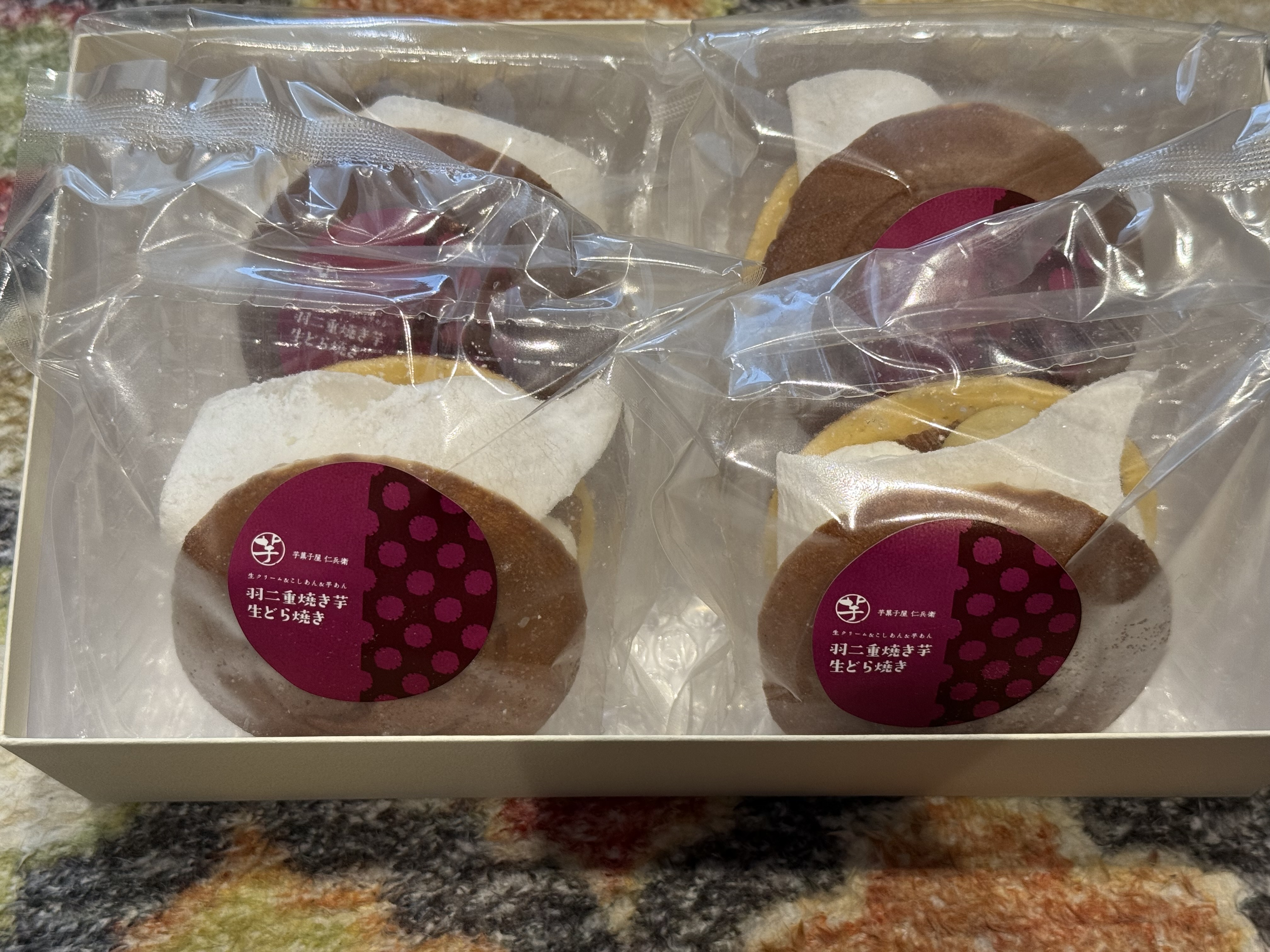 優しい甘さの芋クリームと羽二重餅を、しっとりふわふわの皮で優しくサンドした「生どら焼き」です。たっぷり挟まれた上品な甘さの芋クリームと、丁寧に炊き上げた絶品の芋餡スイートポテトが絶妙な味わいです。羽二重餅を重ねることで、もちもちふわふわの食感を実現しました。老若男女問わず楽しめる美味しさです。専用ボックスに入って届くので、手土産スイーツとしてもおすすめです。