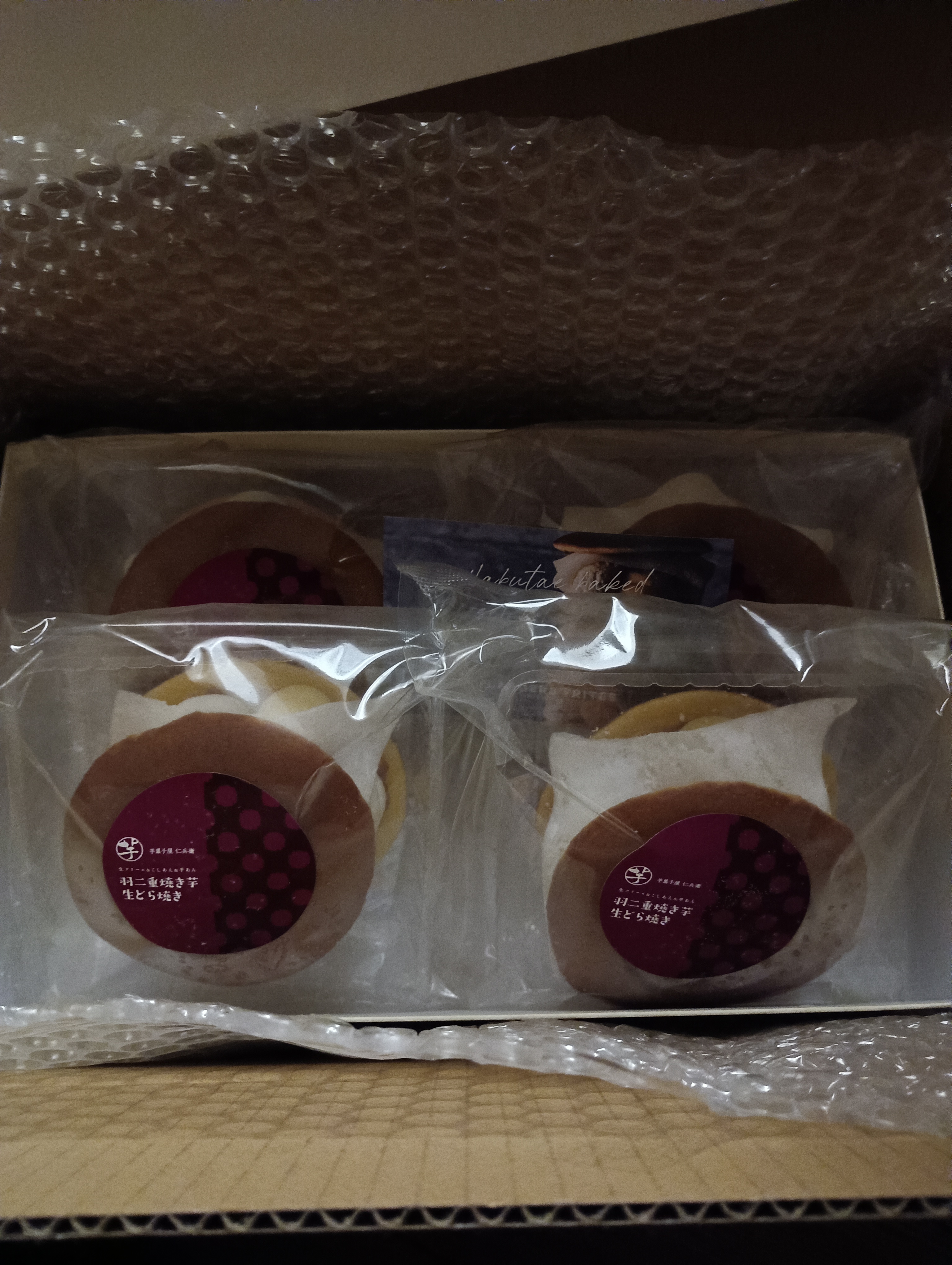 指定した日時に、崩れようのない梱包で4つのどら焼きが冷凍便にて届きました。