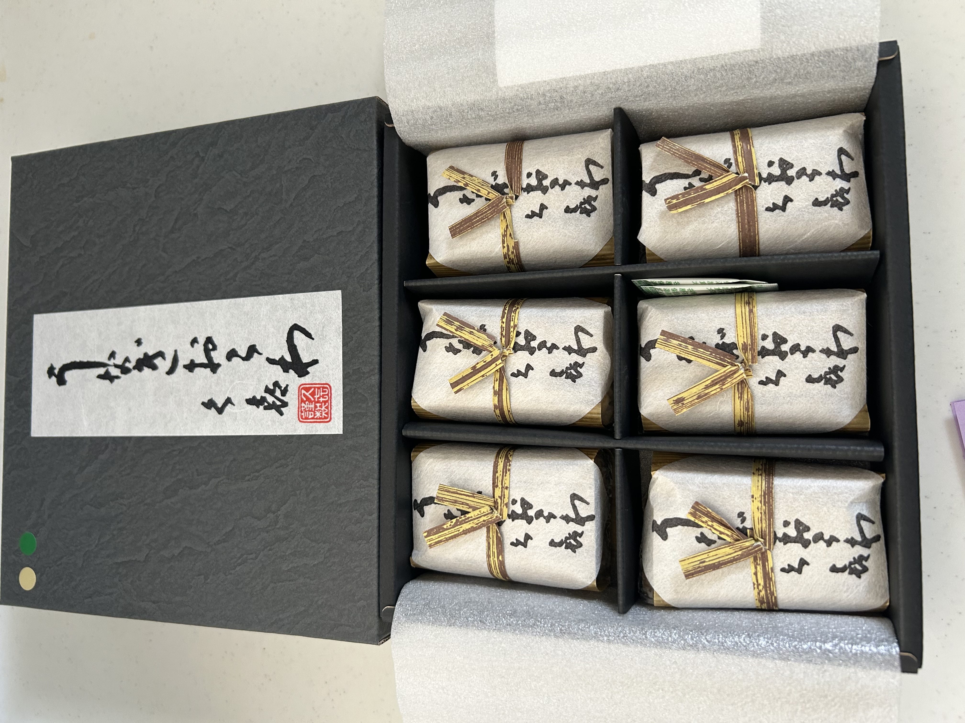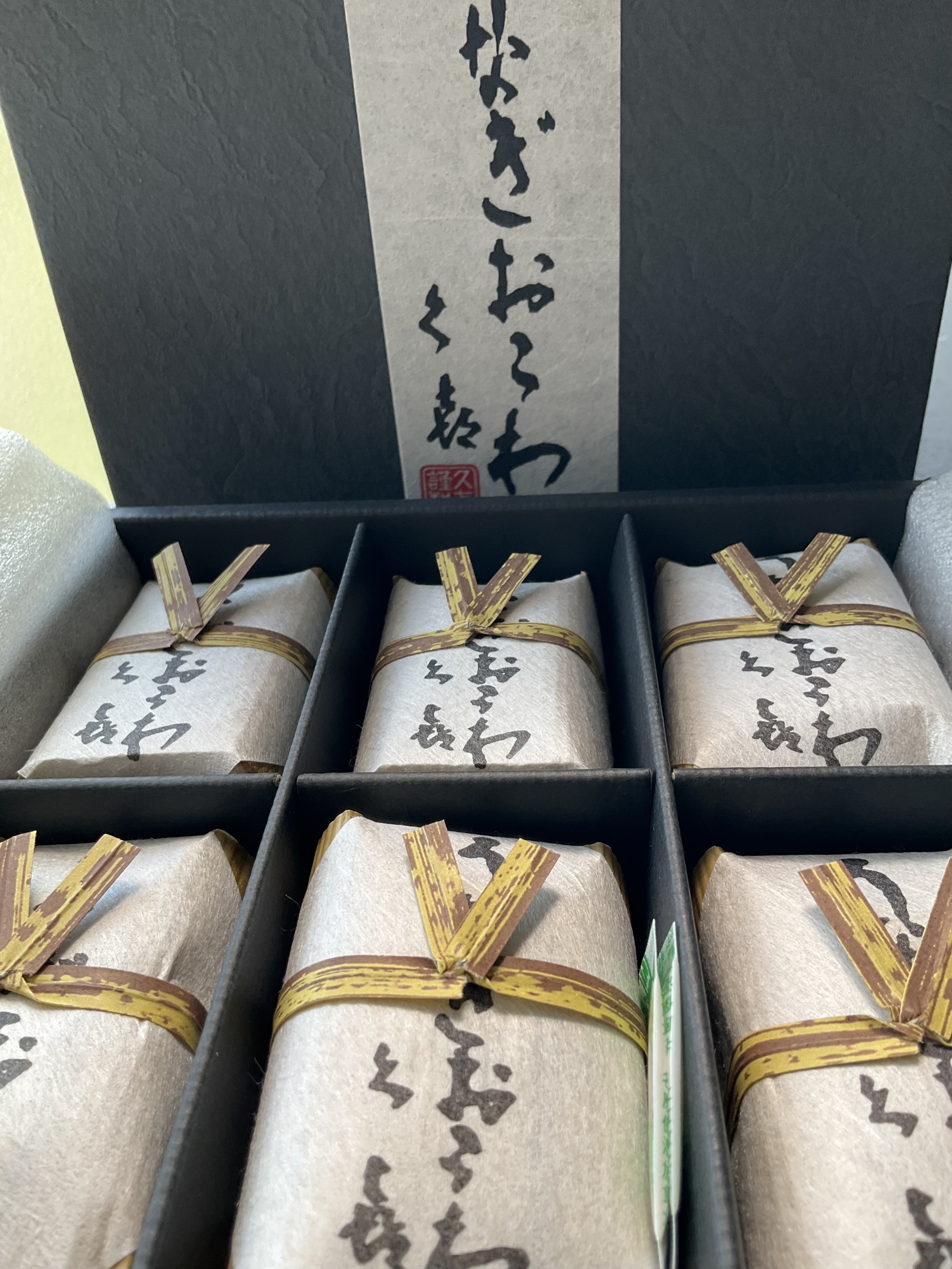 そしてその箱を開けると、これまた上品に包まれたおこわが6つ入っていました。