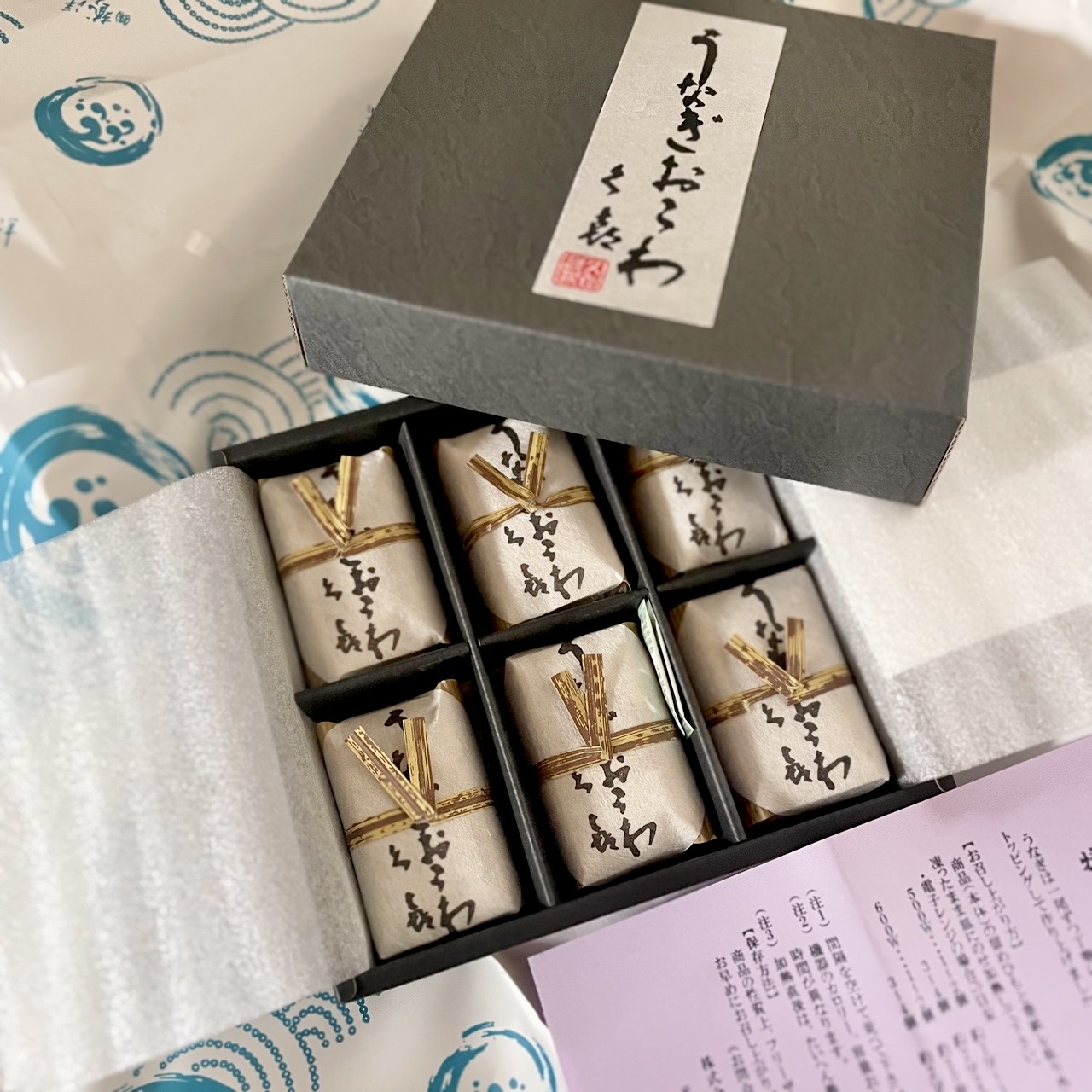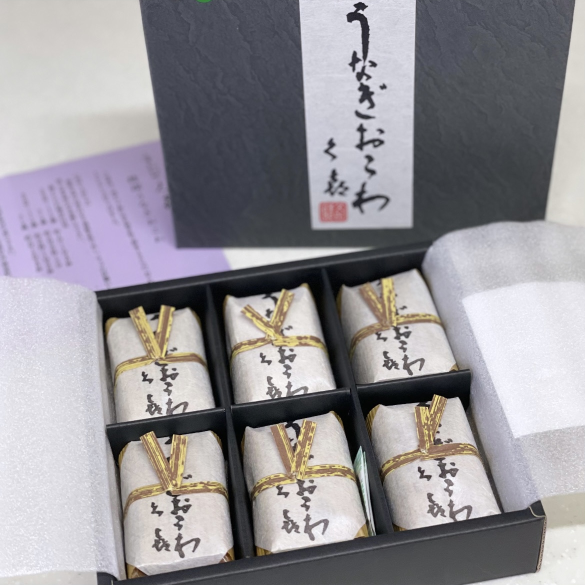 国産にこだわった「うなぎおこわ」です。うなぎは宮崎・鹿児島産を使用し、厳選管理された飼料で、まろやかな味わいに育ち、質の良い霜降りの脂肪を豊富に蓄えています。米には、粘りが強くしっかりとした食感の国産ヒヨクモチを使用。炊いても硬くなりにくく、きめ細かい粘りと甘みを感じられます。おこわの食感とのバランスを考え、うなぎの皮は手作業で取り除き、歯当たりの優しい仕上がりに。うなぎのたれもオリジナルブレンドで、保存料などは使用していません。個包装にこだわり、化粧箱に入って届くので、贈り物にもぴったりな商品です。