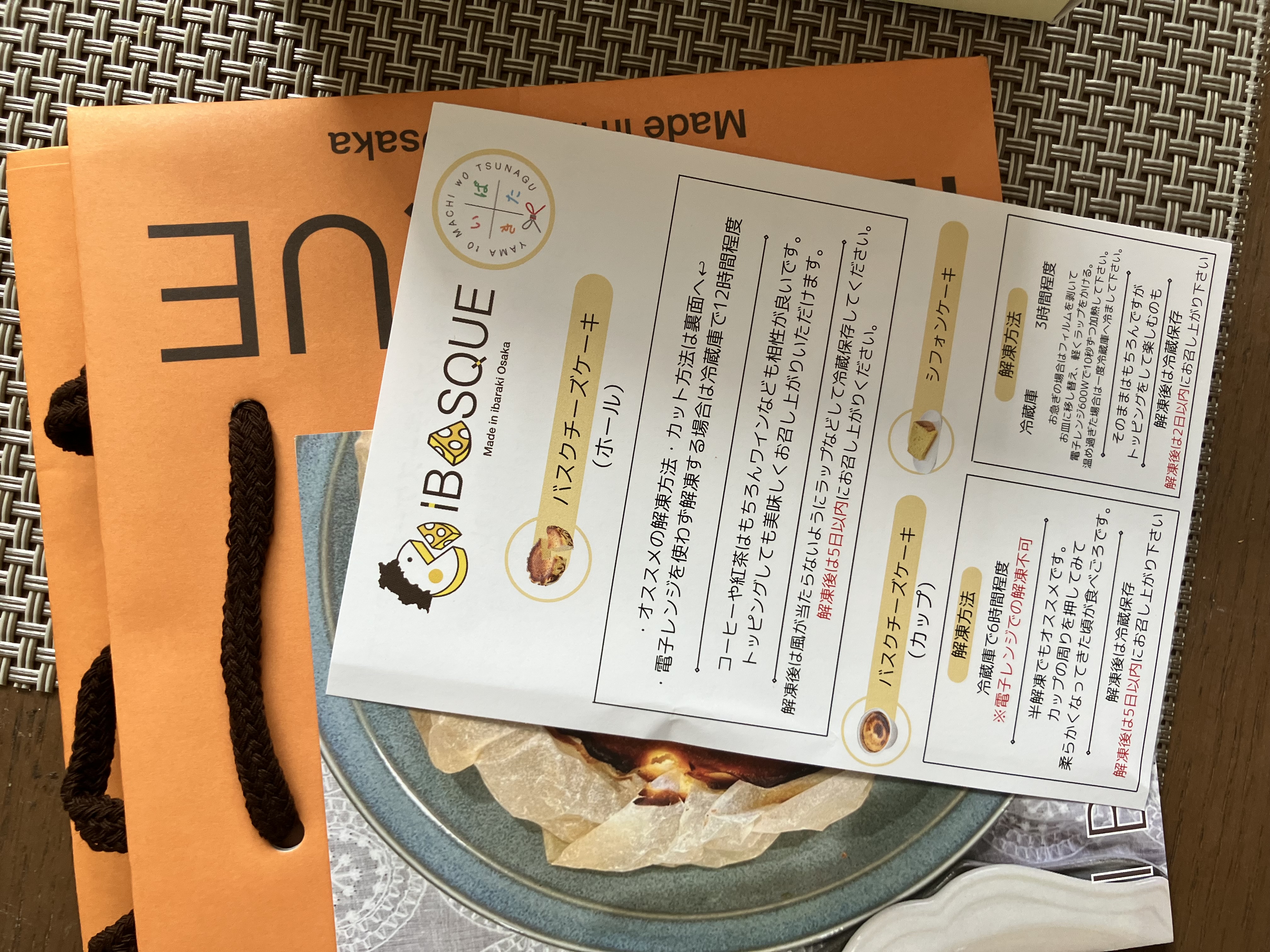 一度は食べてほしい。そんな茨木バスクチーズケーキ。付属されていた緩衝材や、紙袋、丁寧な梱包にも感動しました。