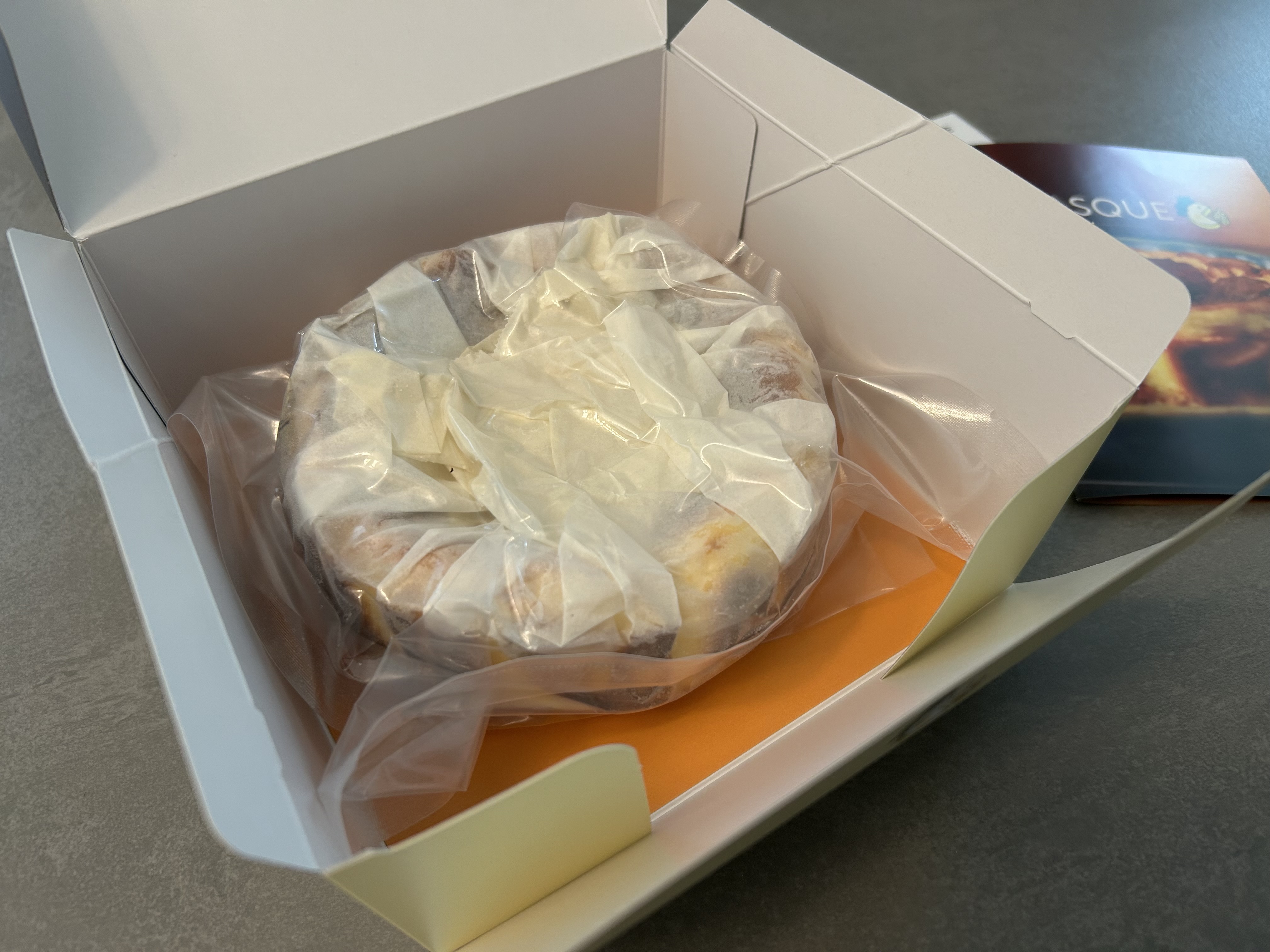 開けると小ぶりですがズッシリとしたチーズケーキが!