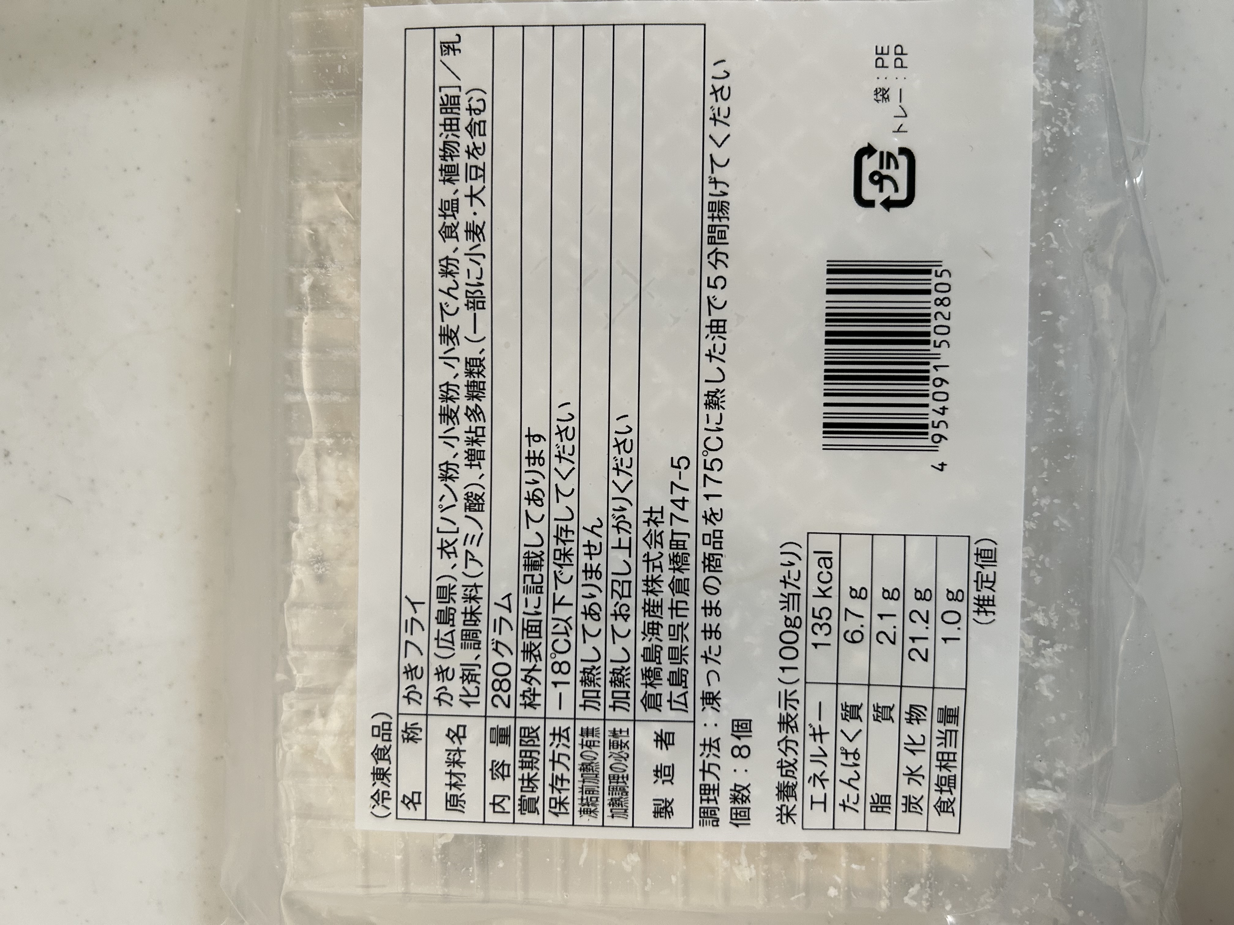 冷凍のカキフライが8粒ずつパッケージに入っており、バラ凍結のためひと粒ずつ取り出しやすいと感じました。