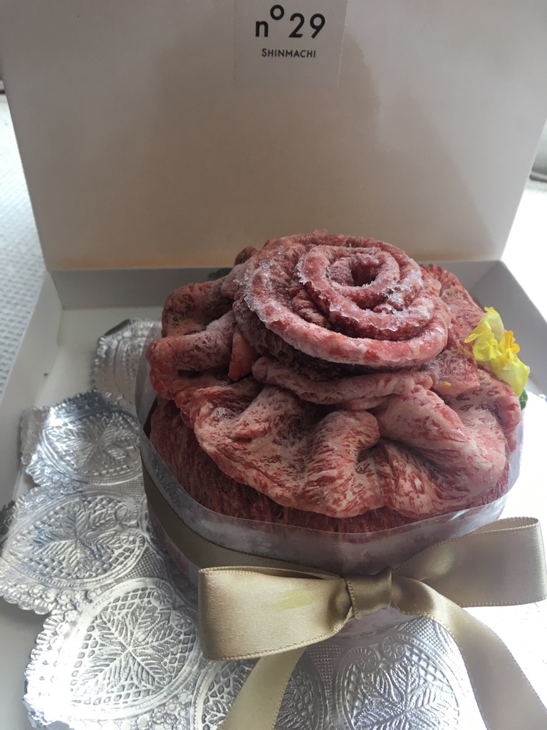 厳選された、九州の黒毛和牛を使用した肉ケーキです。