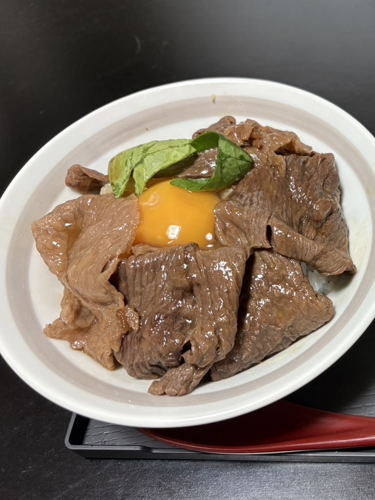 一方で、肉ケーキ自体は綺麗に盛り付けされておりました!本当にホールケーキの様でお祝いには喜ばれそうな肉ケーキです!!すき焼き丼風にして頂きました!!