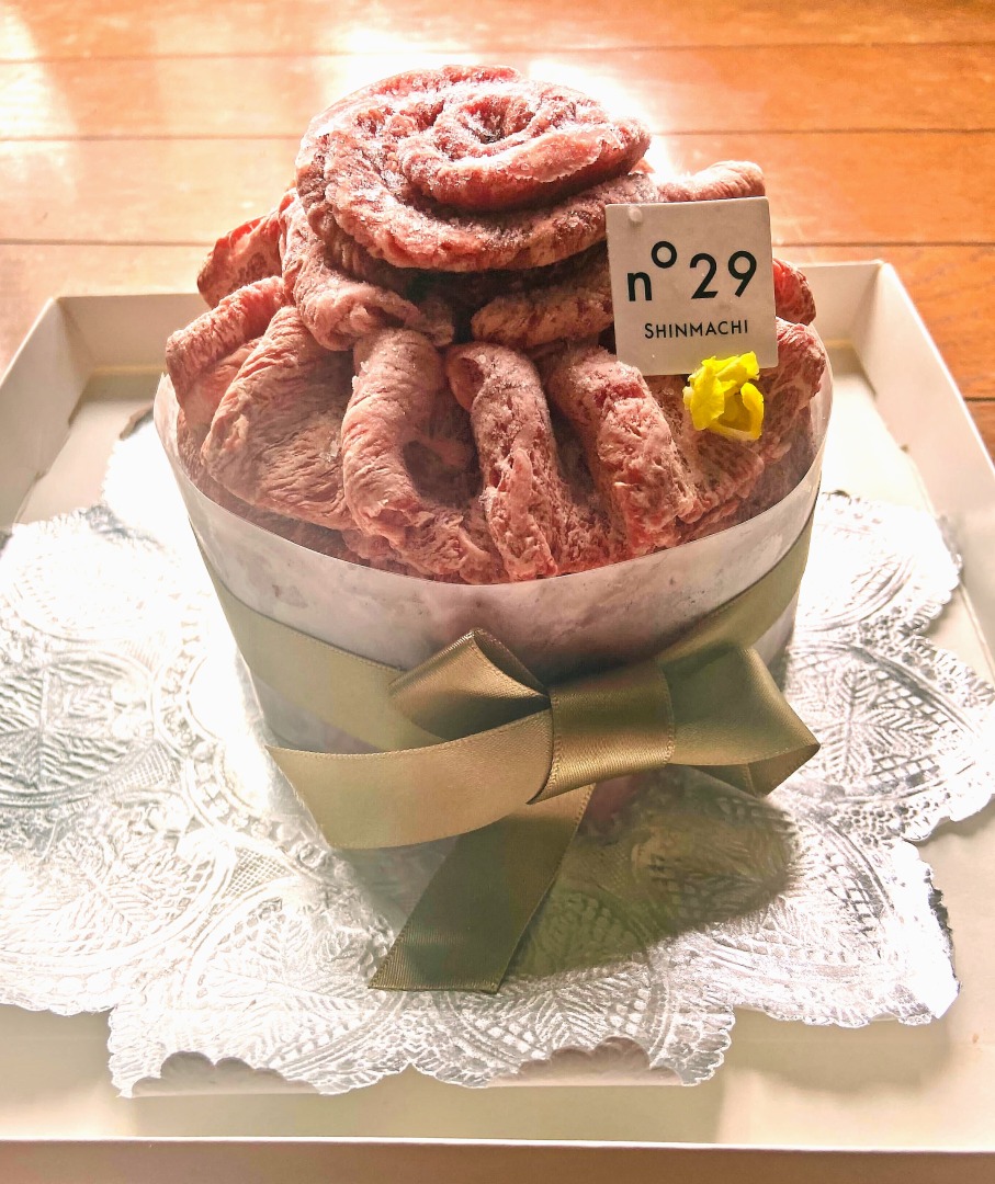 特別な日のお祝いにふさわしい【肉ケーキ】は多くのお客様からご好評をいただいている逸品です。