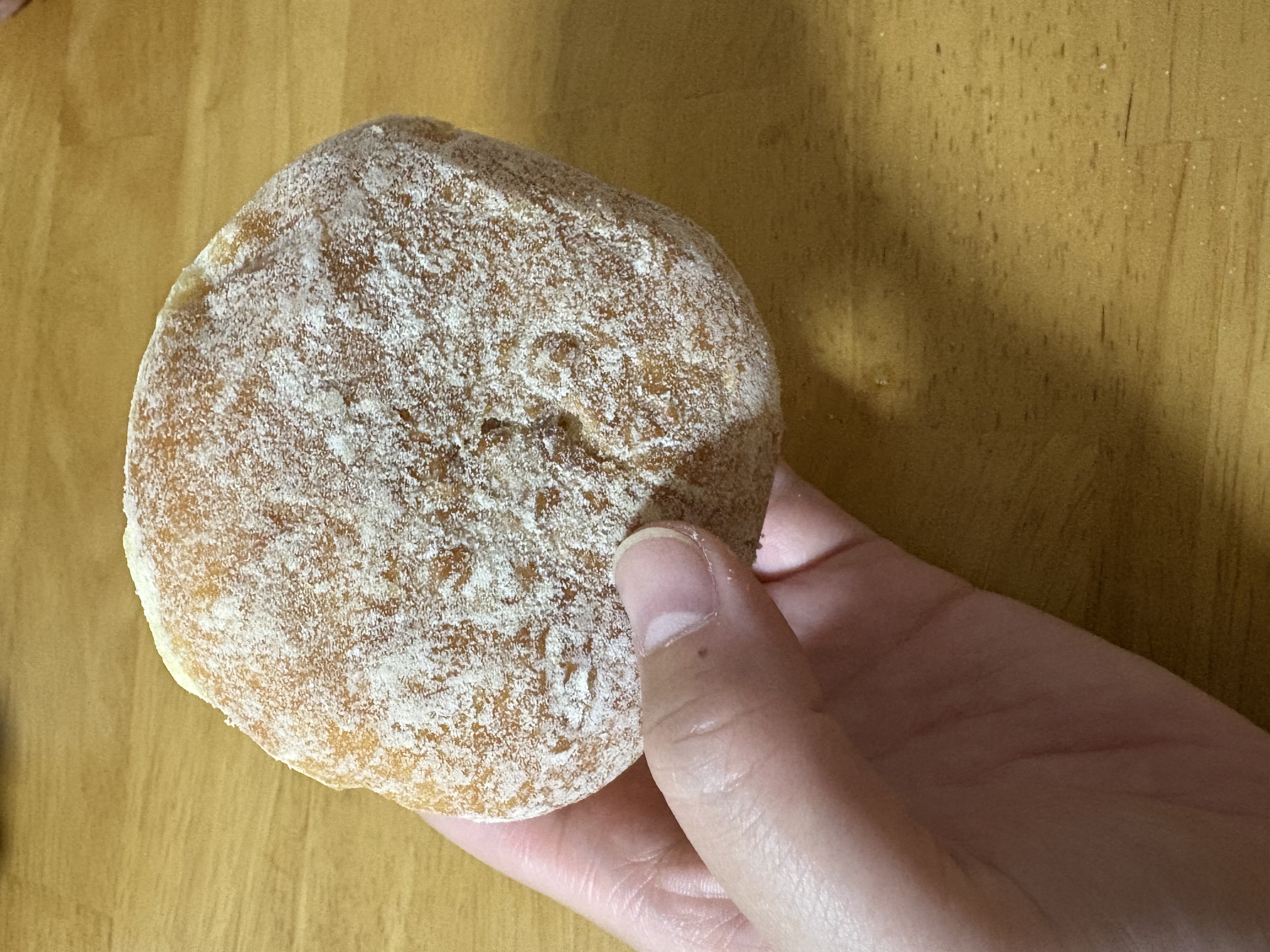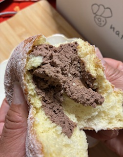 ふんわりしっとりしていて周りにかかった粉糖の甘さがちょうどよく、幸せな気分になります。冷凍なのにこのふわふわ感はすごいと思いました。ボリューム感もあって1つで満足感を感じられます。