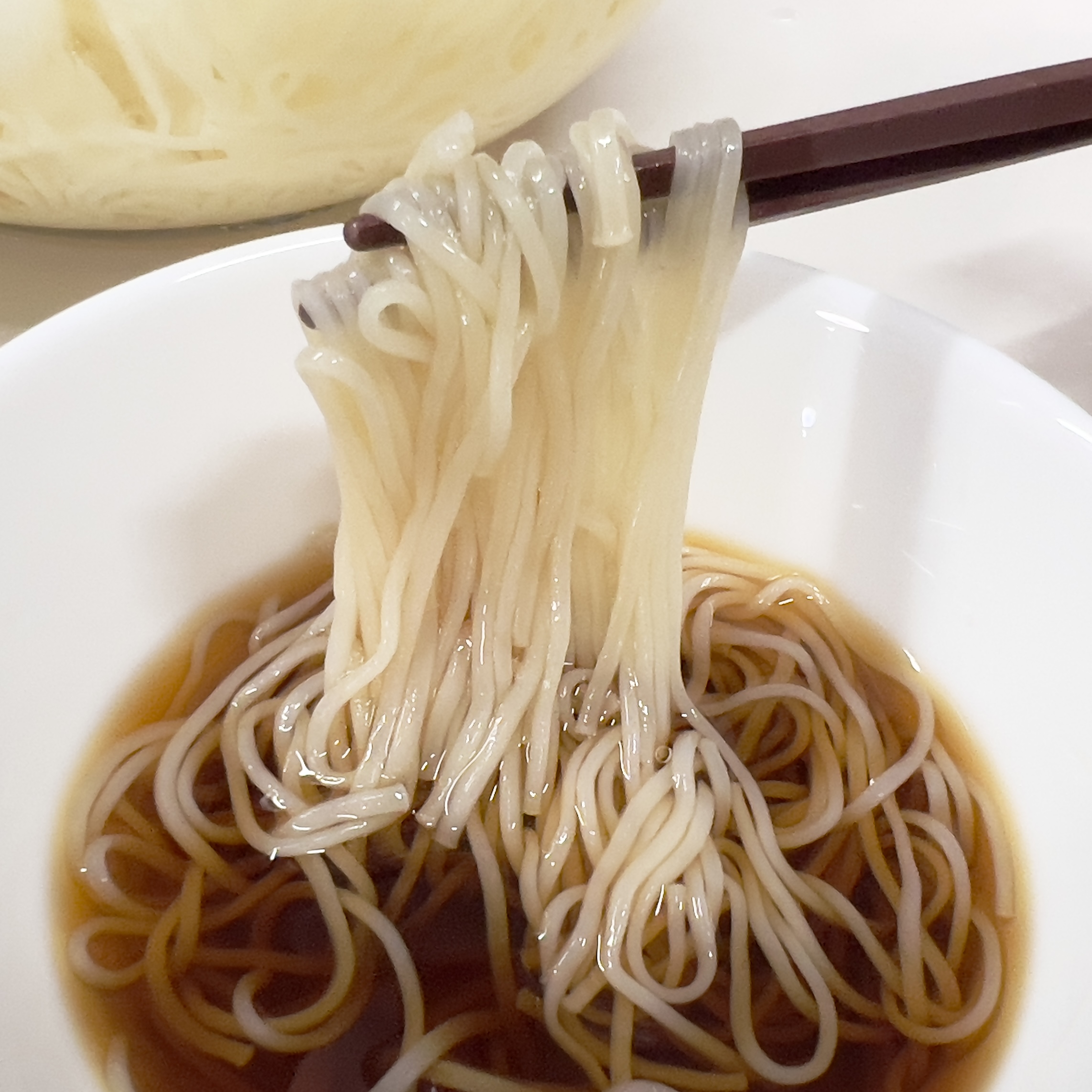油の代わりに吉野葛を使用することで、茹で上がりの麺の光沢や喉ごしの良さを味わっていただけます。