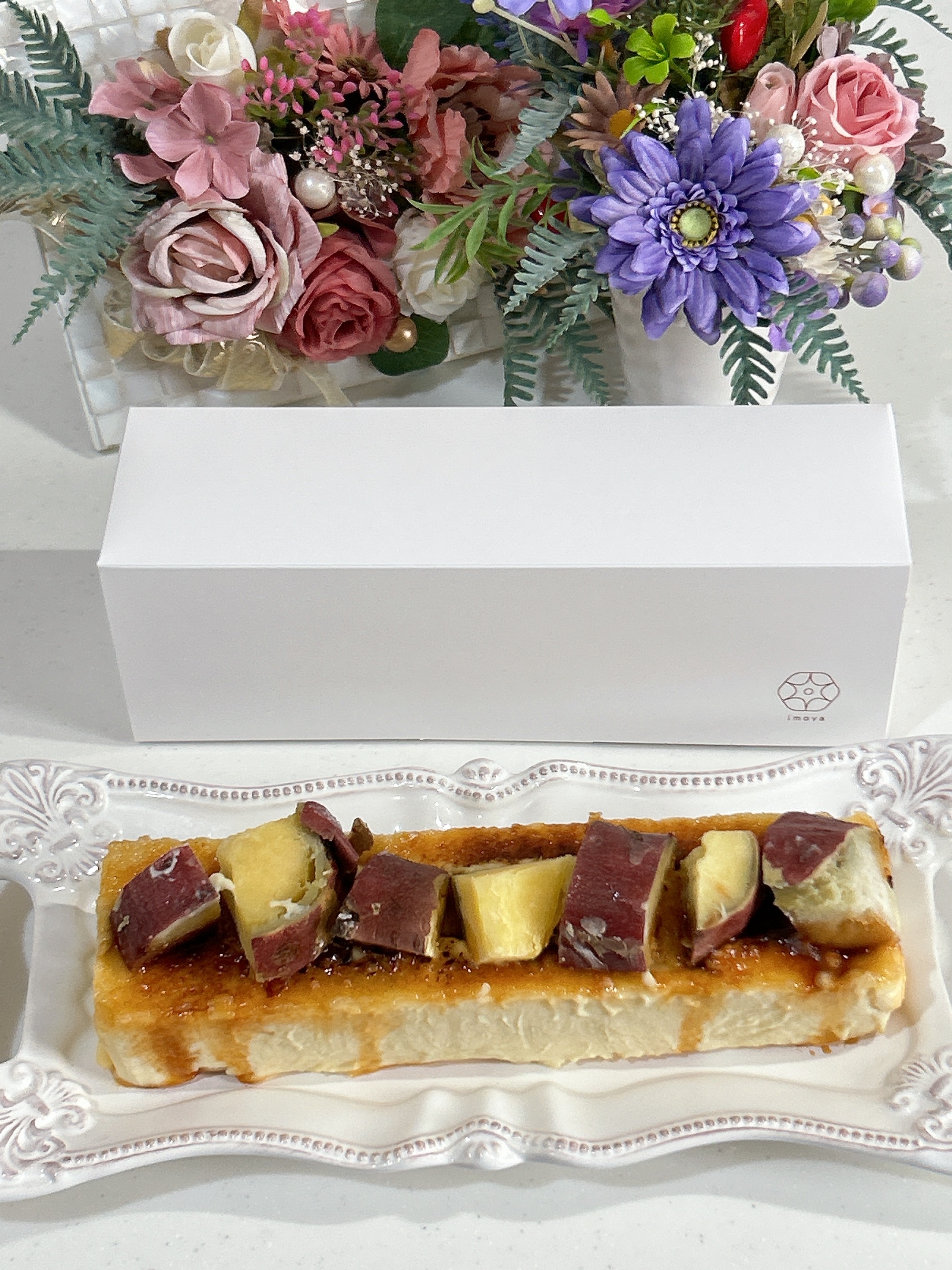 高級焼き芋をたっぷり使った、とろける「蜜芋テリーヌブリュレ」です。1000時間以上熟成させた紅はるか「和芋 紅茶房」を贅沢に使用し、一度焼き芋にしてから丁寧になめらかに裏ごしし、北海道産生クリームとフレッシュクリームをブレンドしています。最後に香ばしくキャラメリゼして、ほろ苦感をプラスしています。半解凍で食べるのがおすすめで、「外はとろ〜り、中はひんやり」とろける新食感が楽しめる、大人のご褒美スイーツです。専用ボックスに入って届くので、贈り物にもおすすめです。