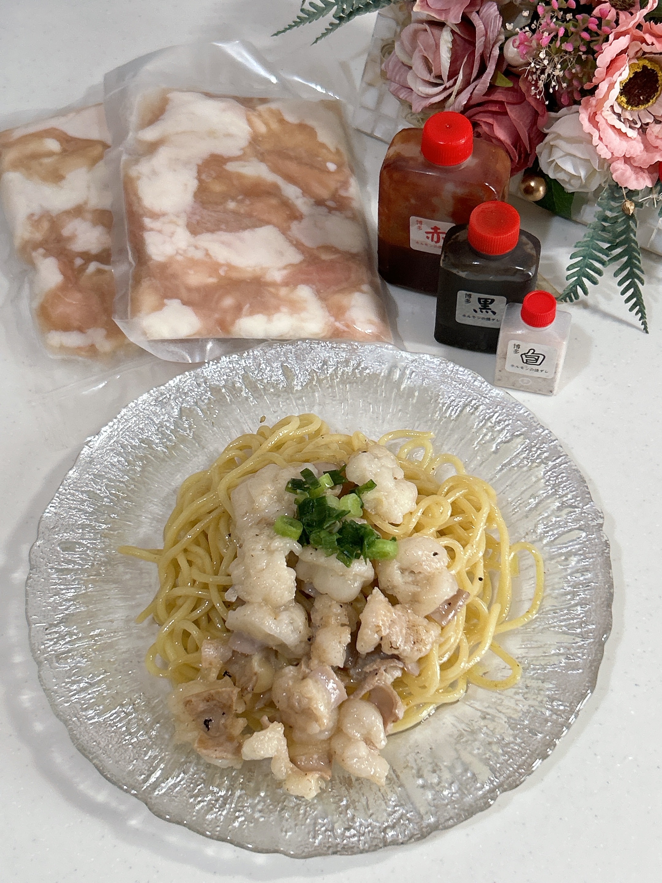 素材に自信があるからこそ、ぜひ“塩”でお楽しみ頂きたい。お口の中いっぱいに広がるもつの甘みとニンニク、黒胡椒のほのかな香り。シンプルな味付けだからこそ、新鮮牛もつが持つ本来の旨みを味わえます。