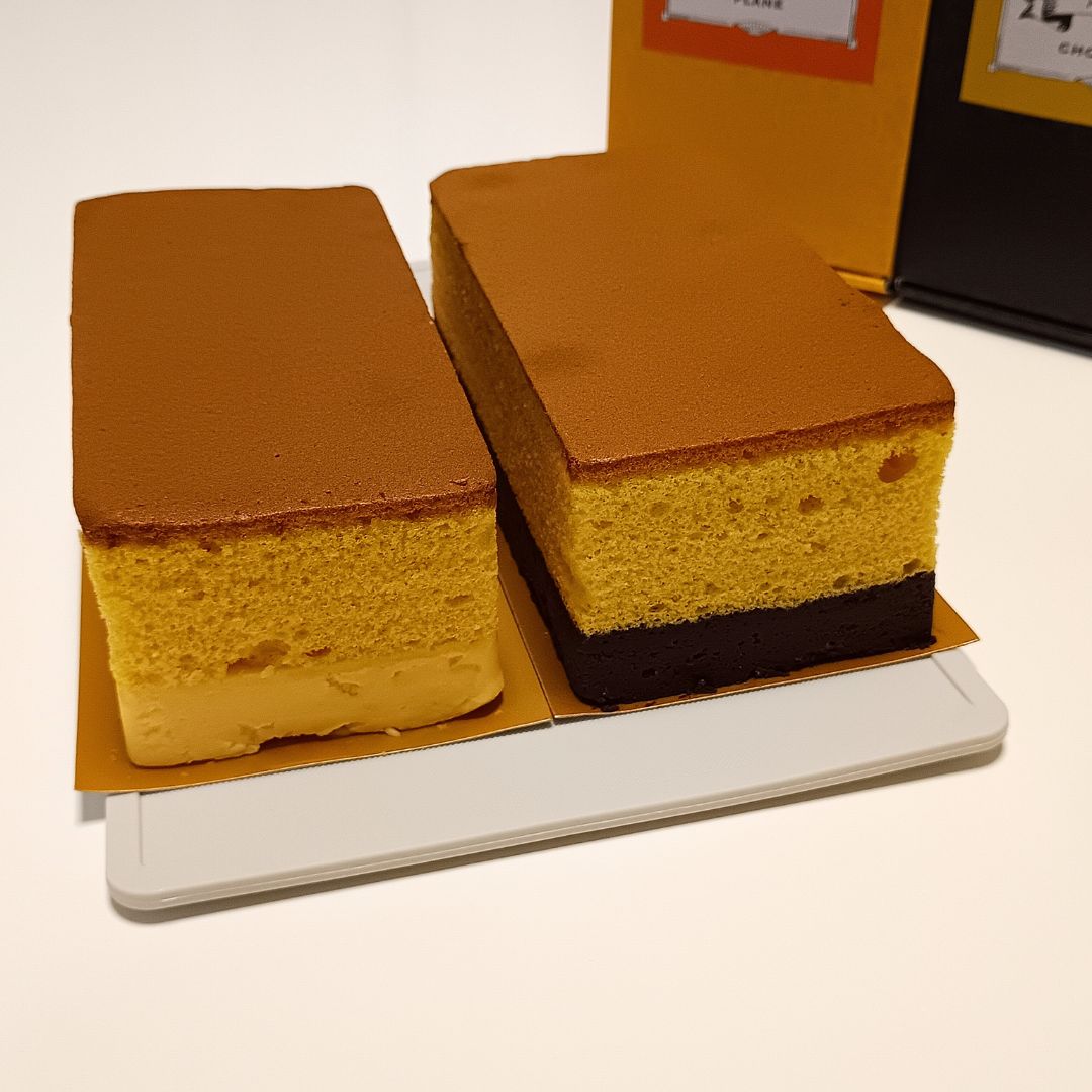 カステラの「ふんわり食感」と、テリーヌの「とろ〜り食感」という異なるふたつの食感を一度に楽しめる、新感覚のスイーツです。「プレーン」は、濃厚で栄養価の高い長崎県産の「太陽卵」、生乳100%使用の高級クリームチーズ、高品質なカステラ専用粉を使用しています。濃厚なたまごテリーヌとカステラが口の中でとけ合い、唯一無二の味わいと食感を生み出しています。「ショコラ」は、テリーヌ部分にフランス産の高級チョコレート「ヴァローナ」を贅沢に使用し、上品な甘さのショコラテリーヌがふわふわのカステラを包みこみ、コク深い大人の甘さが広がる逸品です。異なる味わいのセットなので食べ比べが楽しめるのもおすすめです。専用ボックスに入って届くので、贈り物にもおすすめです。